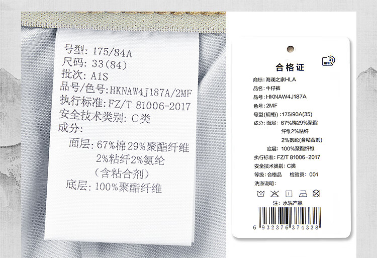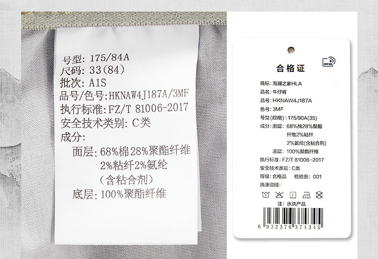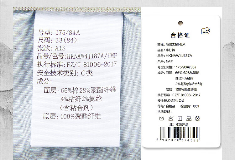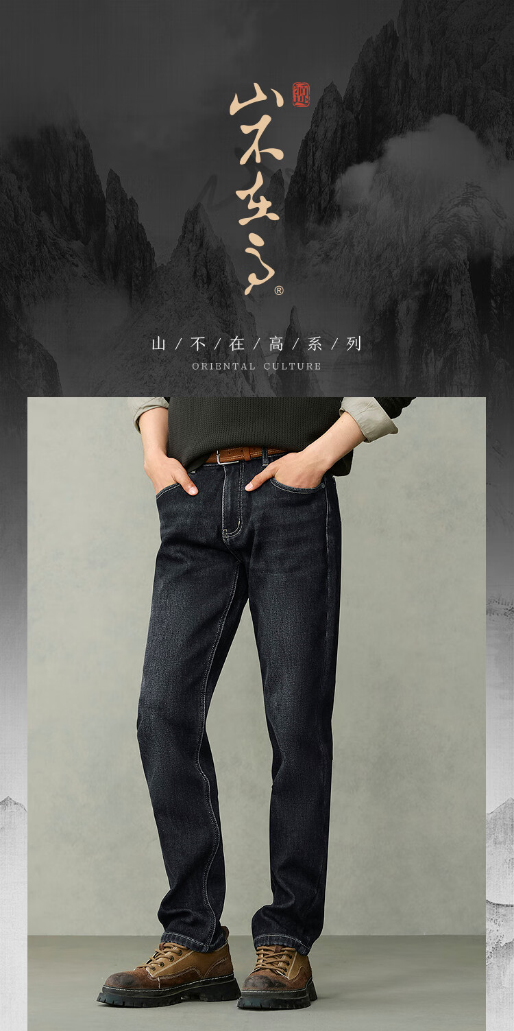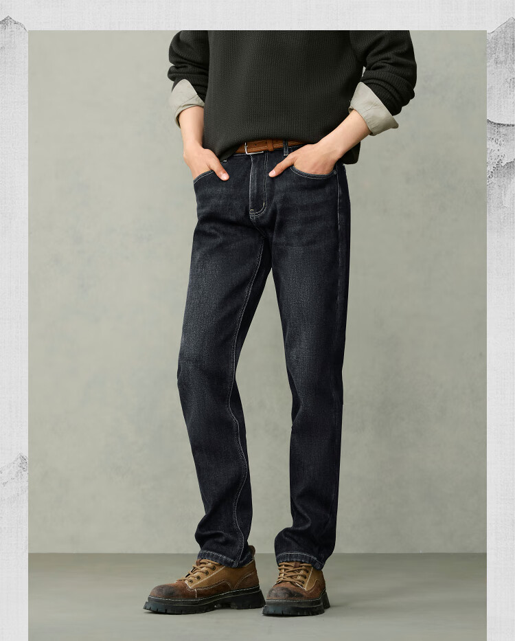 HLA Hailan House Jeans Men's 25 Dongshan Not High Series Velvet Thickened Straight Pants Men