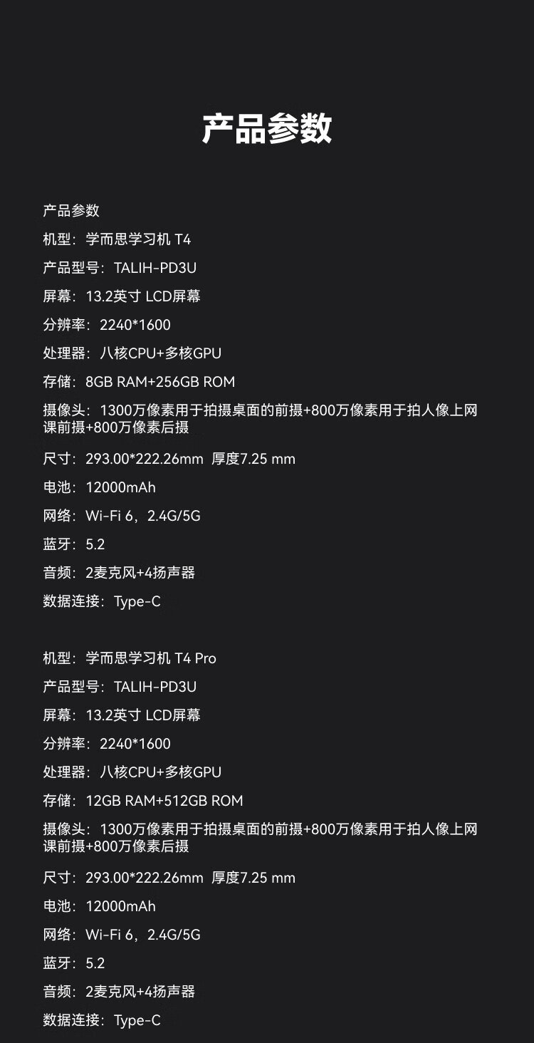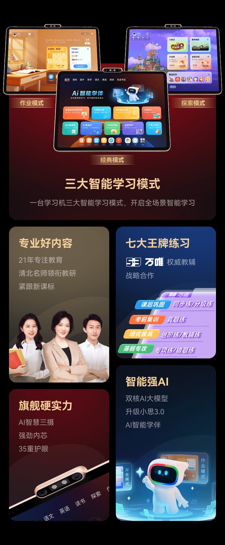 Xueersi learning machine T4 Pro 2025 new model, new curriculum standards, new test methods, large memory learning tablet, enlightenment primary school, junior high school and high school 13.2 inches 12+512GB