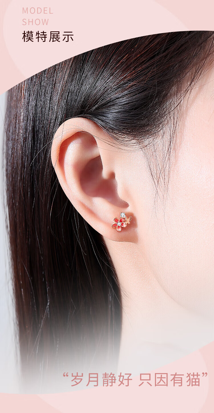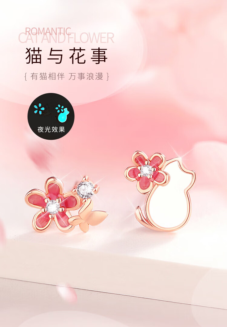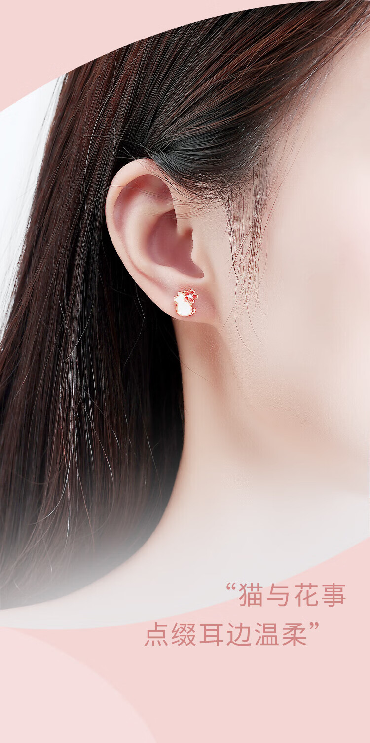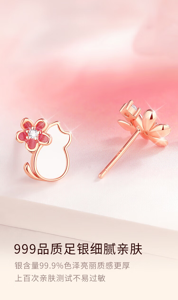 Gin Qianhui 999 sterling silver cat earrings for women peach blossom earrings fashion accessories Valentine's Day birthday gift for girlfriend and best friend