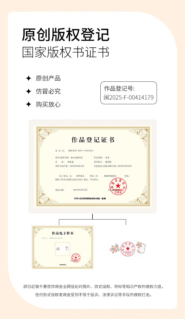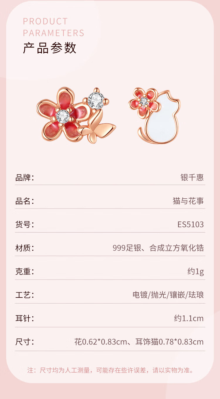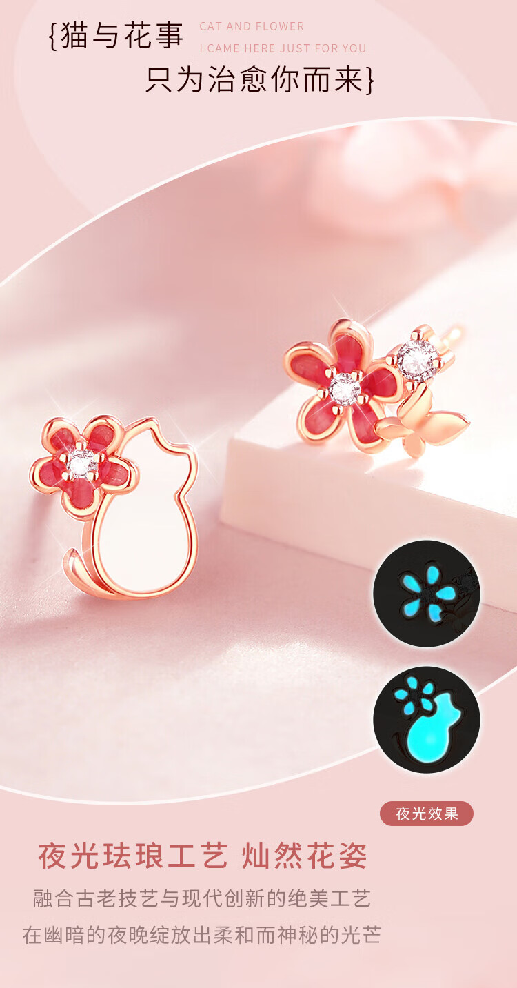 Gin Qianhui 999 sterling silver cat earrings for women peach blossom earrings fashion accessories Valentine's Day birthday gift for girlfriend and best friend