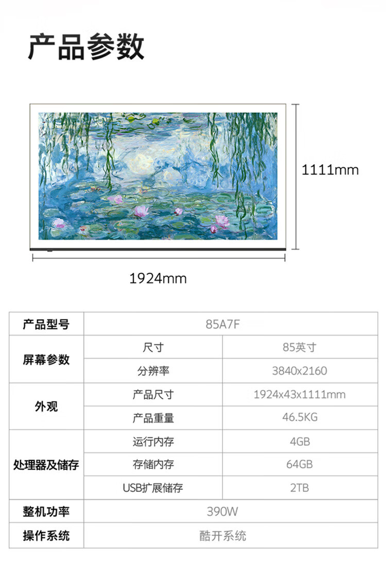 Skyworth Wallpaper TV A7F 85-inch ultra-thin mural art miniled smart flat-panel home appliance LCD trade-in national subsidy
