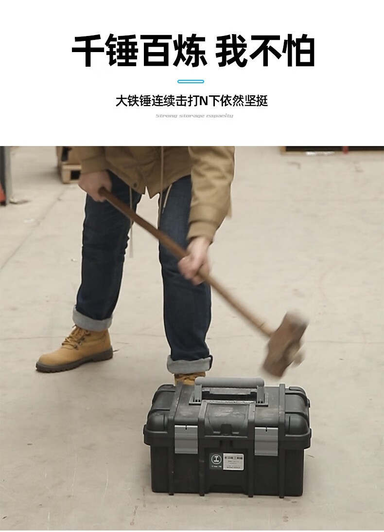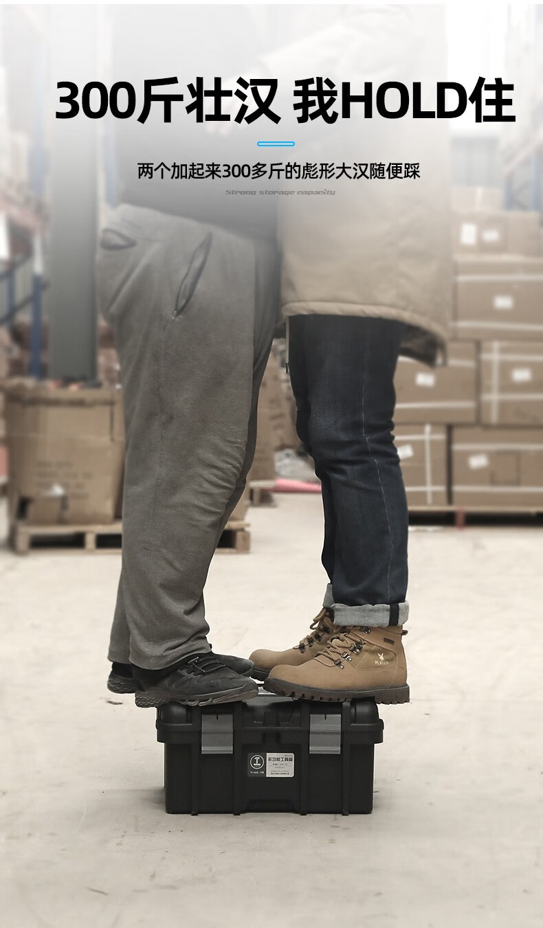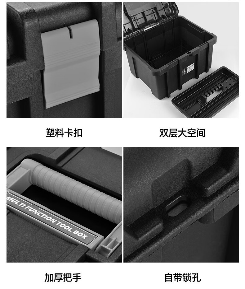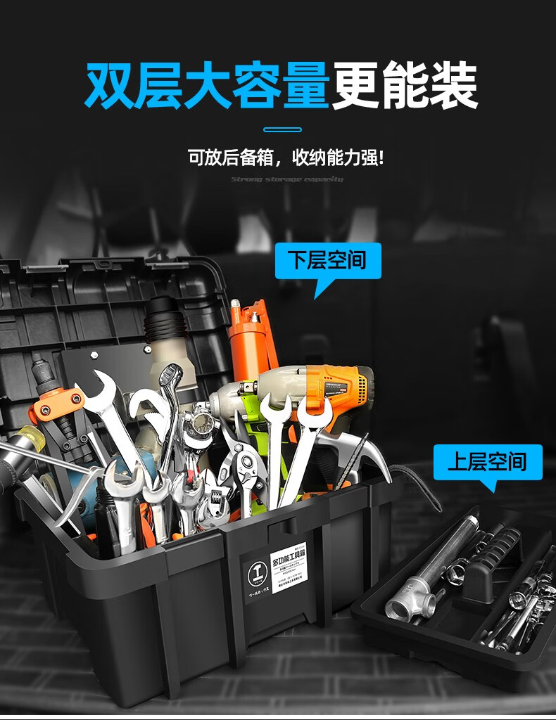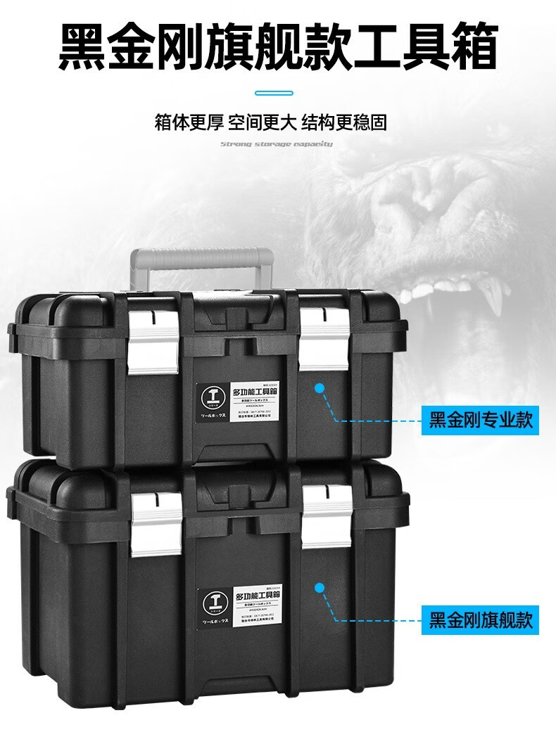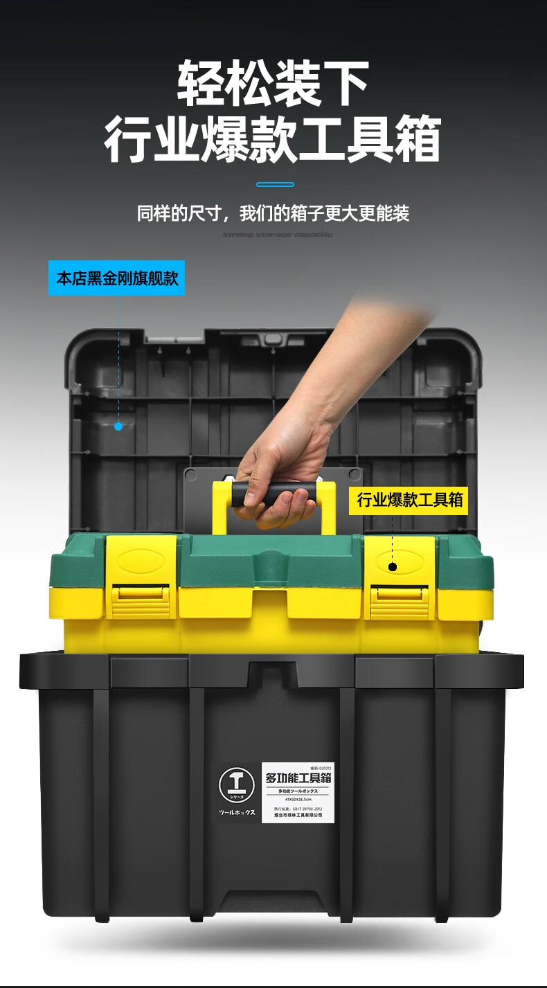 Greener (GREENER) double-layer heightened tool box, vehicle home, enlarged and thickened portable storage box, strap storage box, industrial reinforcement, Black King Kong flagship 22-inch (heightened) tool box
