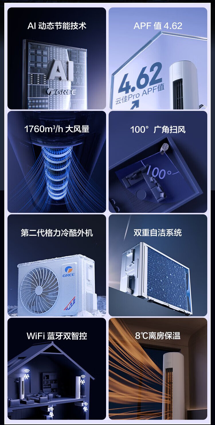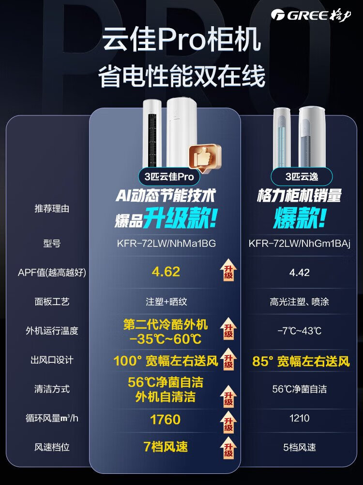 Gree 3 HP Yunjia Pro new 1-level inverter heating and cooling living room vertical cabinet AI energy-saving comfortable air-cooled outdoor air conditioner KFR-72LW/NhMa1BG subsidy