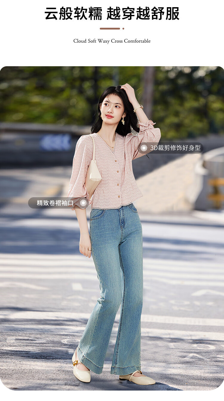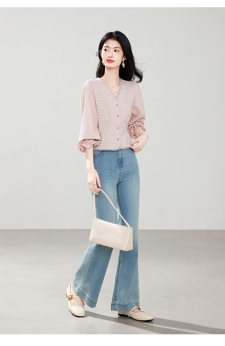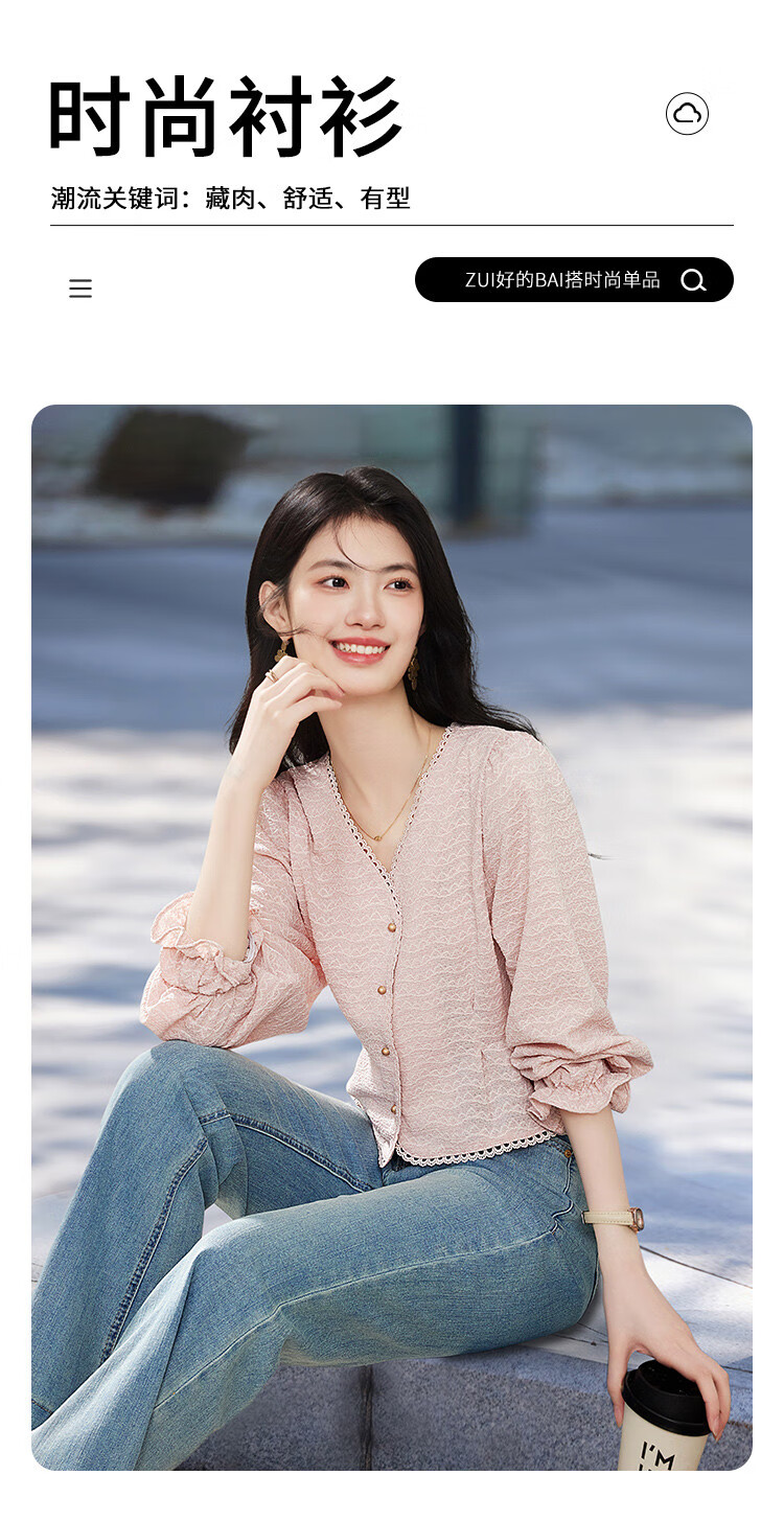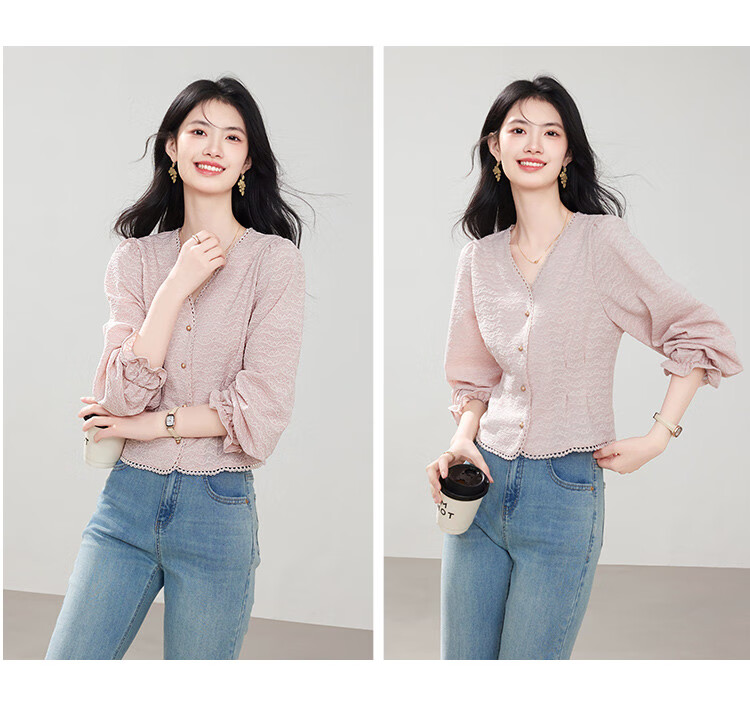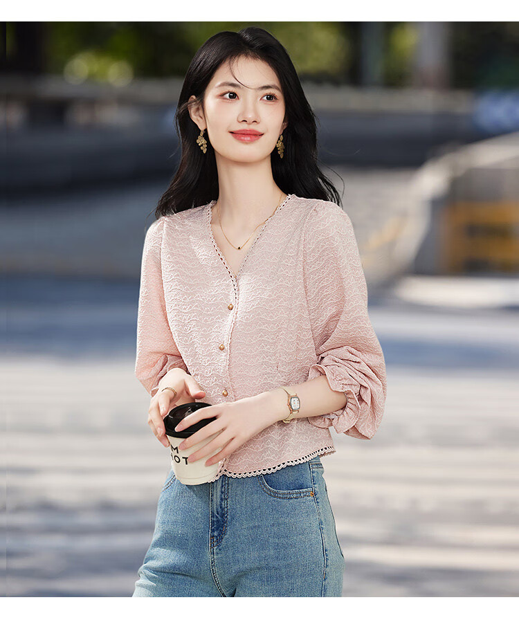 Shangjing shirt women's 26th early spring new women's clothing sweet little fragrance lace stitching small age-reducing V-neck shirt women
