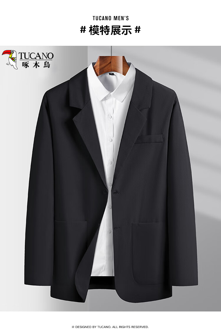 Woodpecker (TUCANO) Suit Jacket Men's Four Seasons Solid Color Business Casual Formal Wear Professional Wear Single Suit Men's Black XL