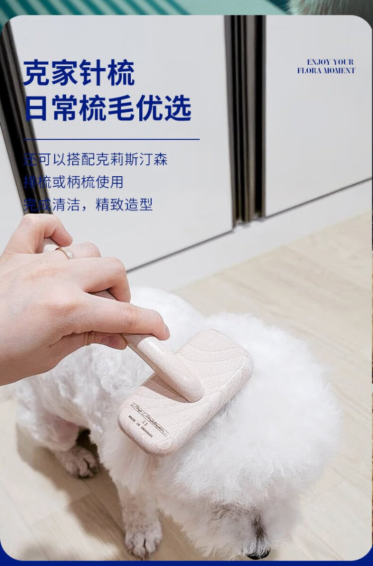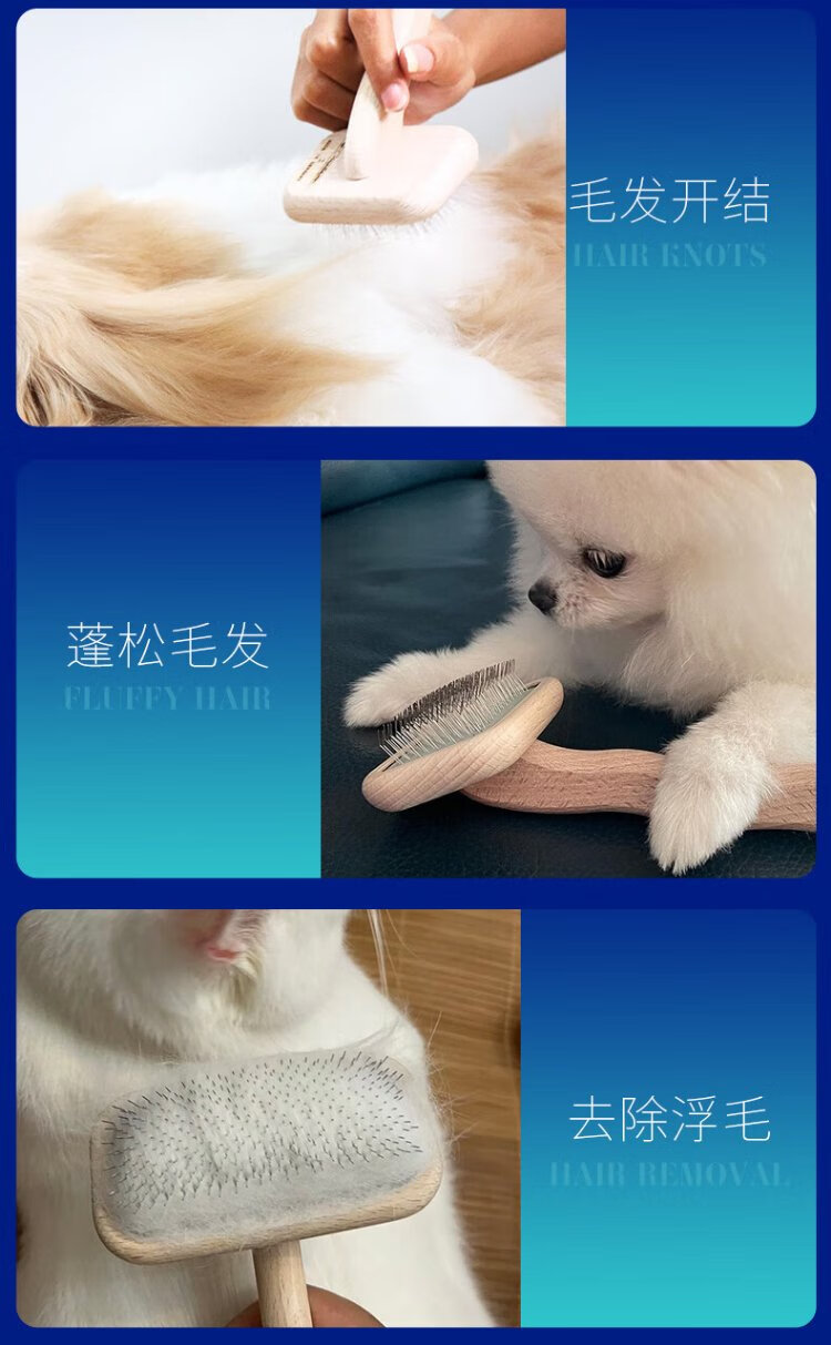 Chris Christensen Chris Christensen pet comb, always ready, needle comb, knot-opening, fluffy hair removal, general purpose for cats and dogs, wood color, medium size