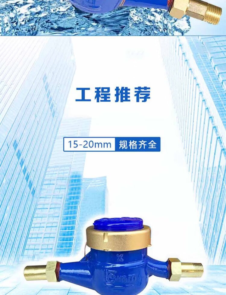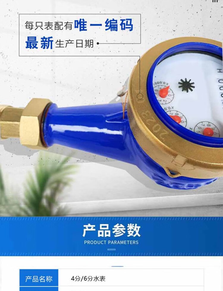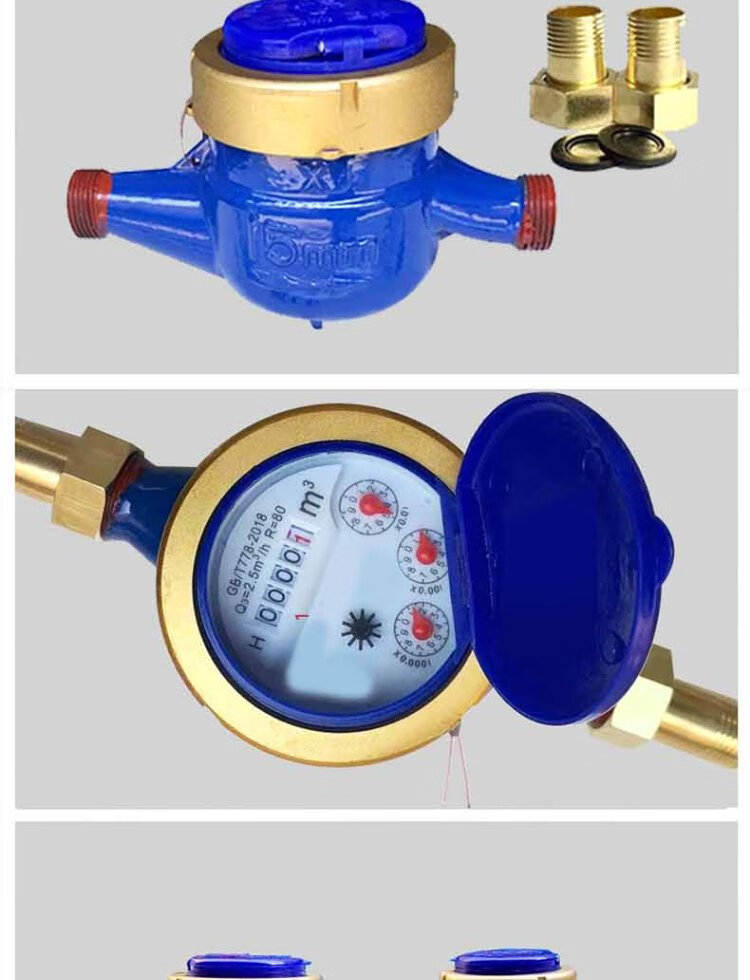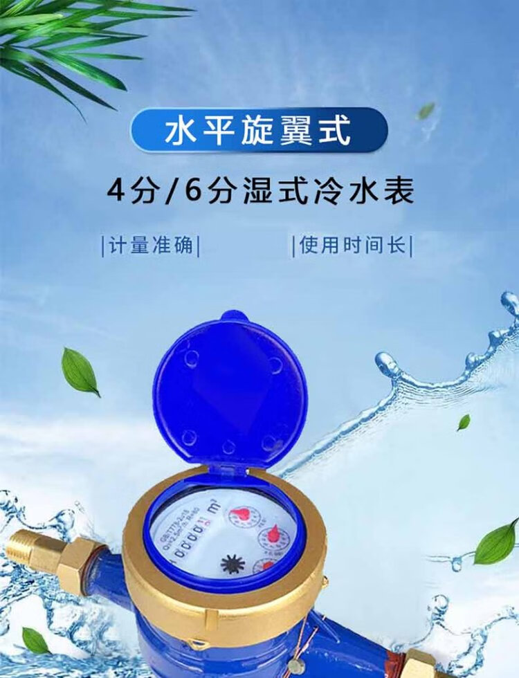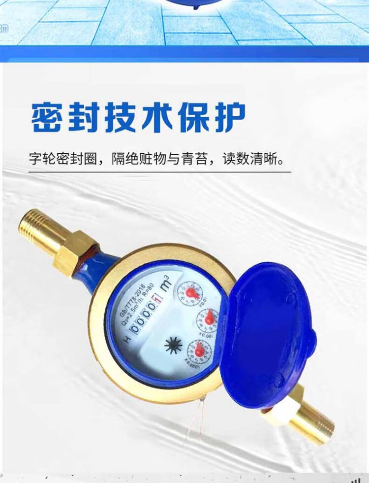 Steel pre-worked products Digital water meter Rotor type tap water meter Horizontal threaded tap water cold water meter Household engineering external thread wet cold water meter DN20 (6 points) one