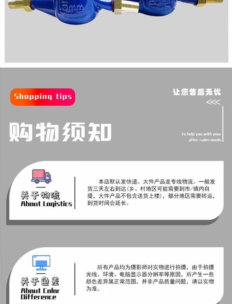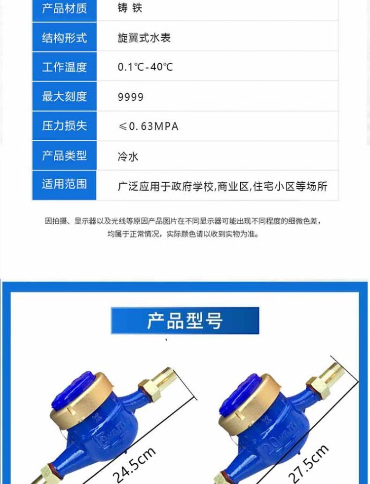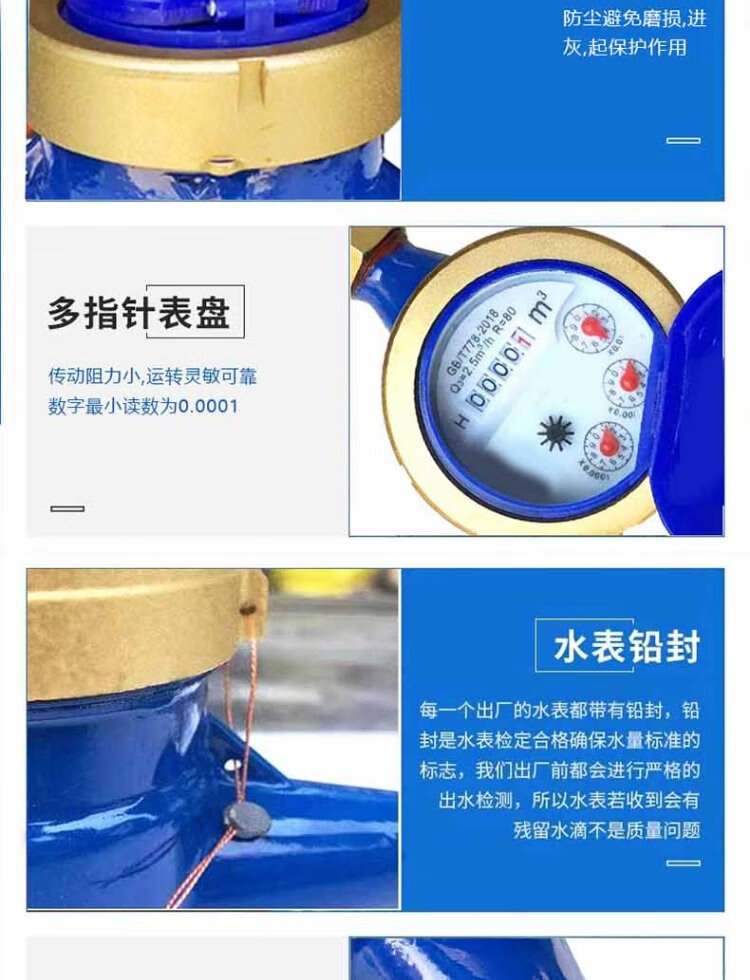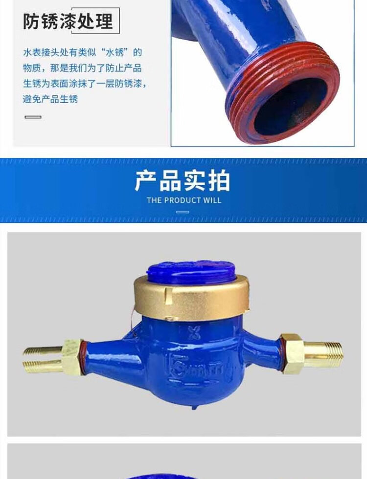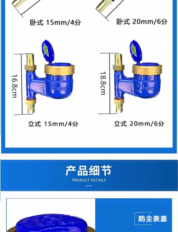 Steel pre-worked products Digital water meter Rotor type tap water meter Horizontal threaded tap water cold water meter Household engineering external thread wet cold water meter DN20 (6 points) one