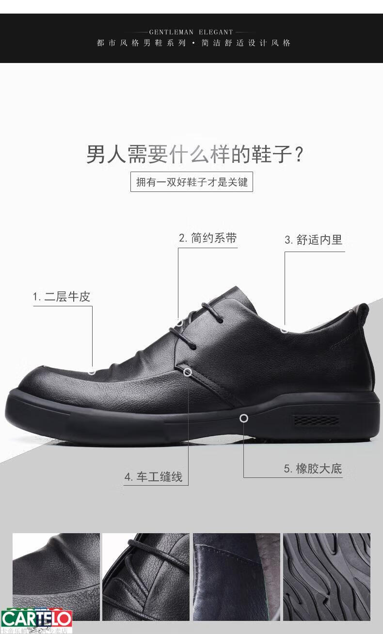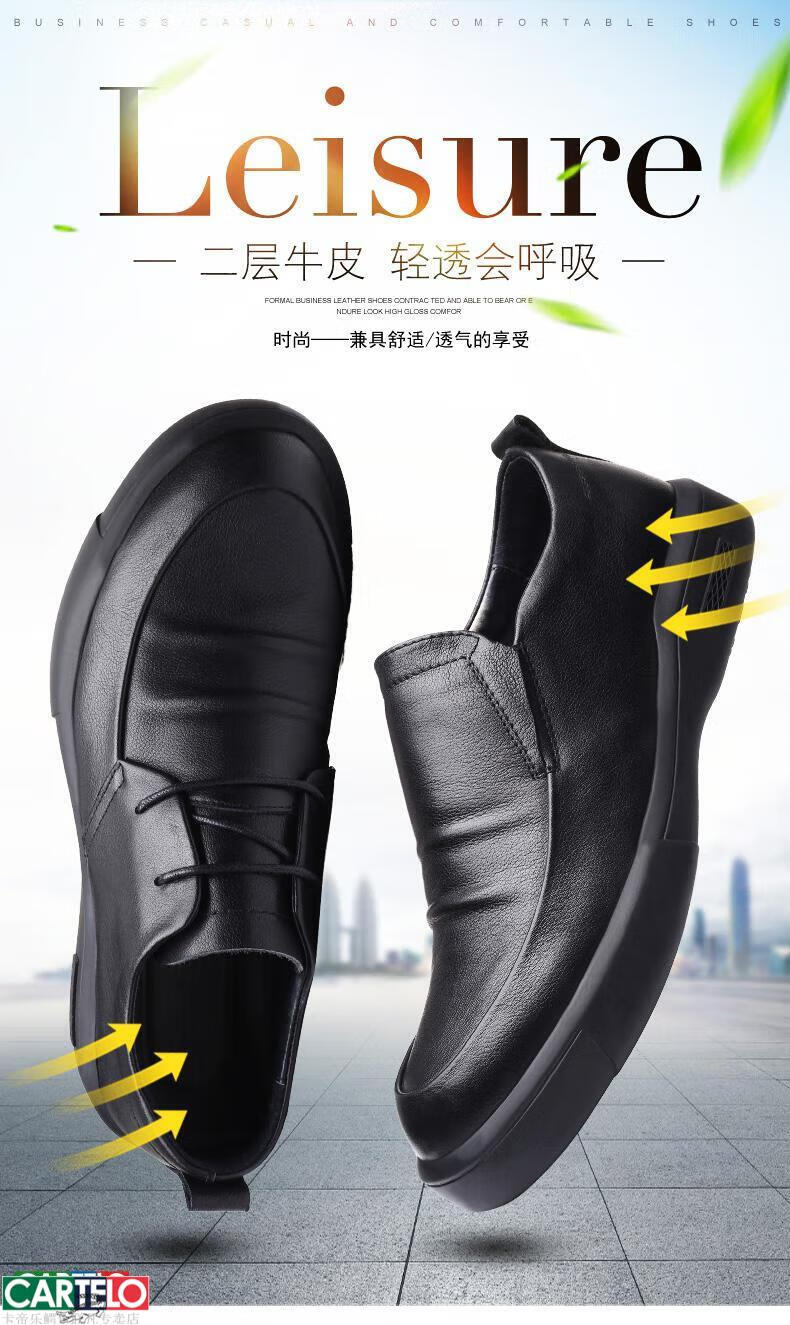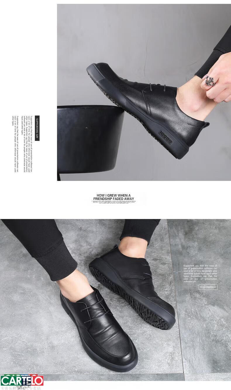 Cardile Crocodile Men's Shoes Spring and Autumn 2025 Korean Style Men's Business Casual Shoes Genuine Leather Cotton Shoes Men's British Versatile Leather Shoes Men's Lace-Up Black 41 Men's Style
