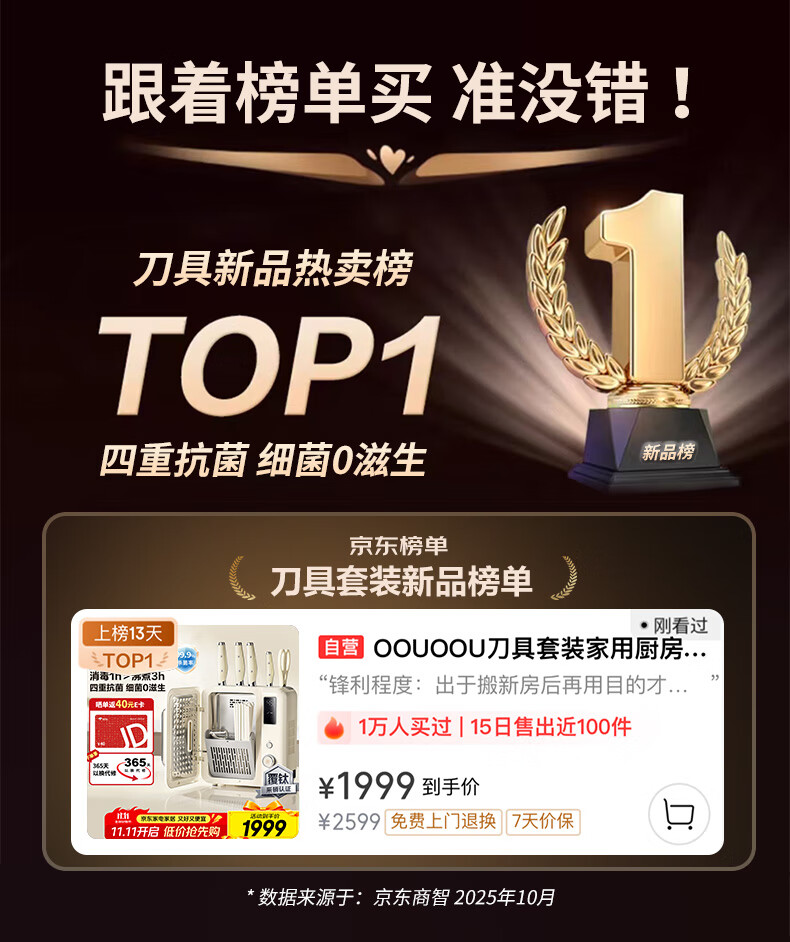 OOU knife set household kitchen cutting knife German steel knife full set of kitchen utensils antibacterial anti-oxidant anti-rust partition disinfection Great White Bear series titanium knife set