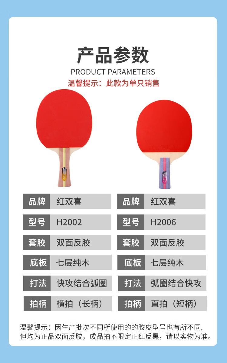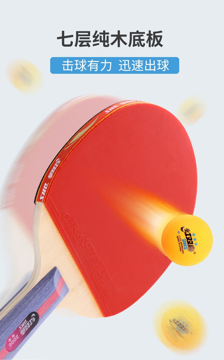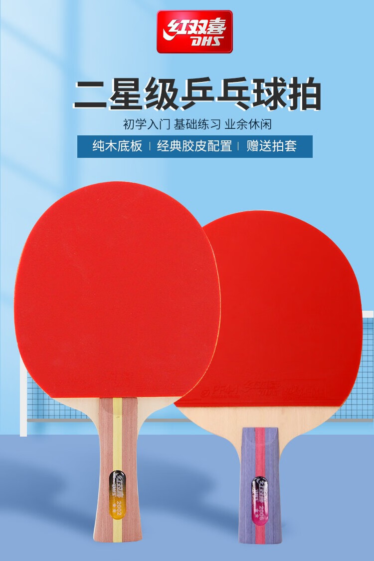 Double Happiness two-star table tennis racket, two pairs of rackets, two-star seven-layer pure wood base fitness and entertainment racket, two-star 1 horizontal racket, 1 vertical racket + 2 bags + 6 balls