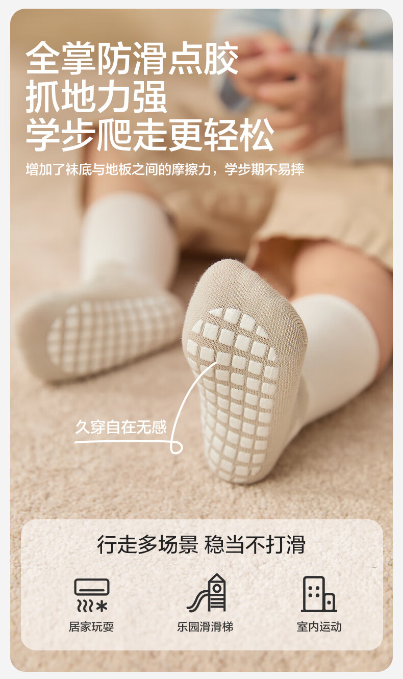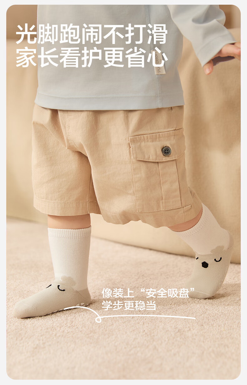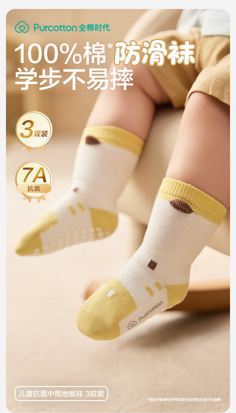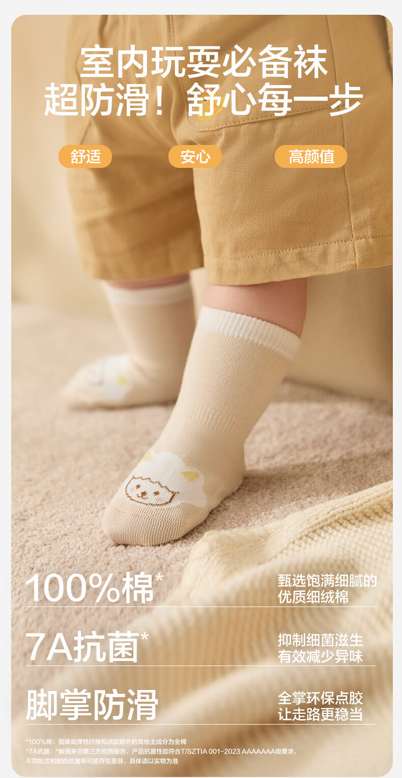 Cotton era children's antibacterial mid-calf floor socks, striped coffee + deer + little sheep, 1-3 years old, 14cm-16cm