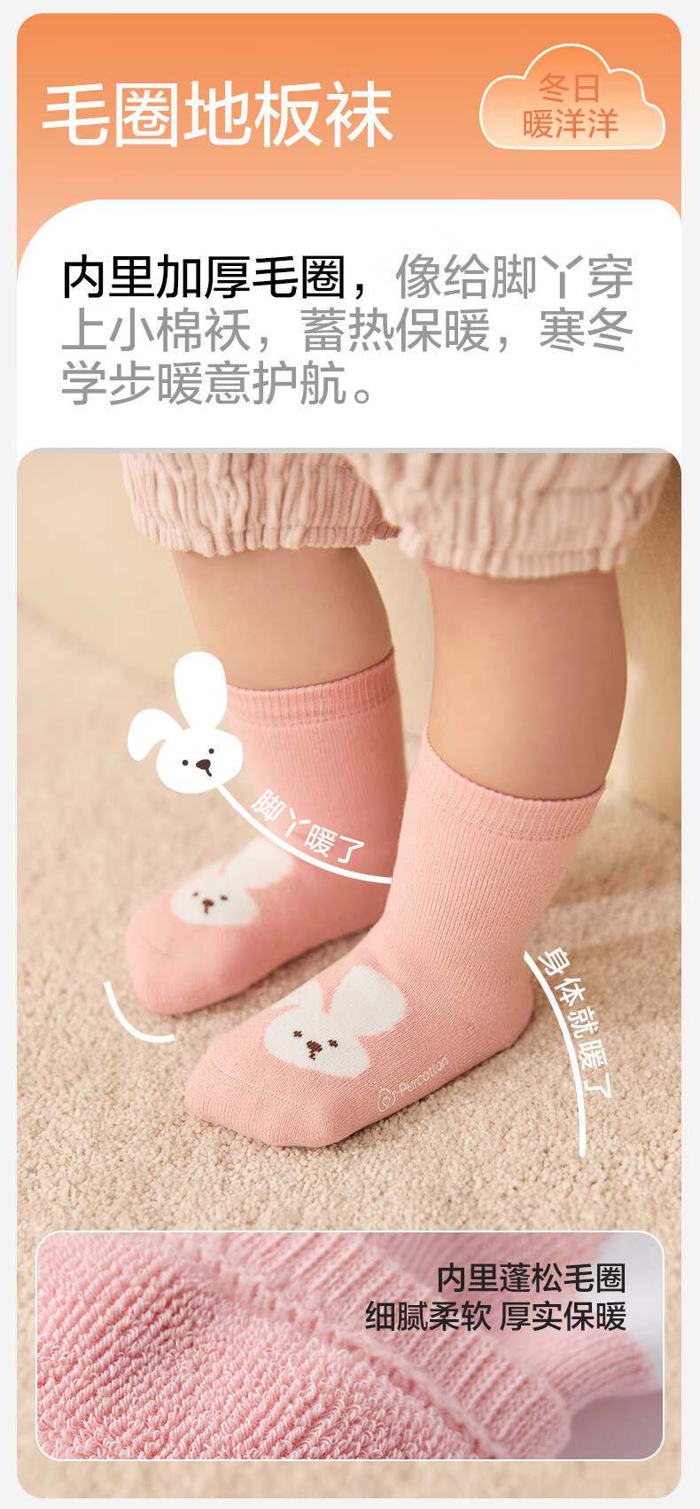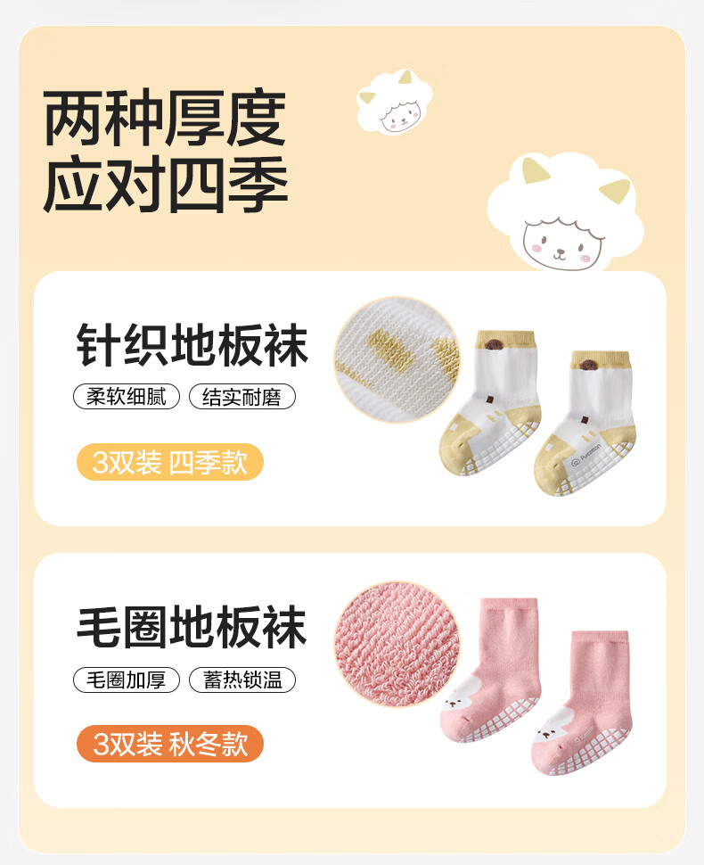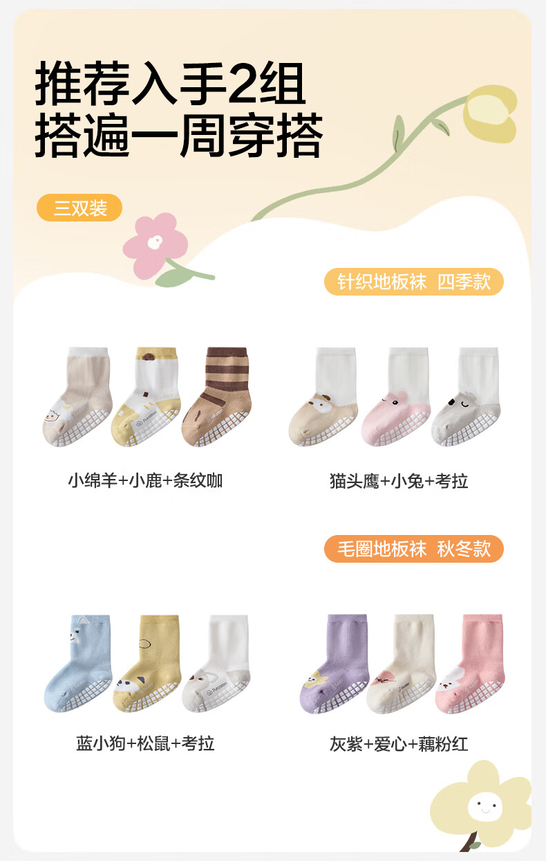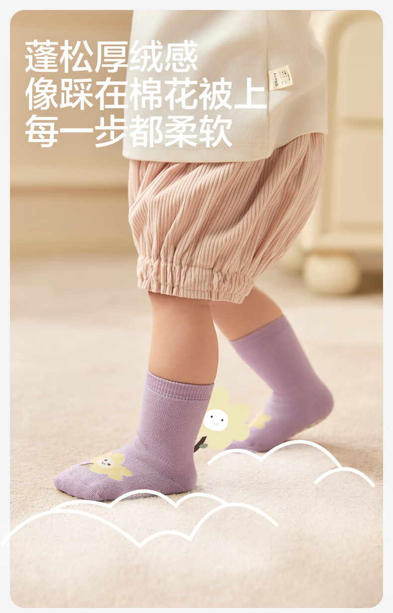 Cotton era children's antibacterial mid-calf floor socks, striped coffee + deer + little sheep, 1-3 years old, 14cm-16cm
