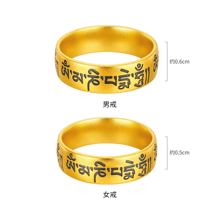 Lukfook Jewelry Gold Ring Six-Word Mantra Fuman Heirloom Solid Women's Ring Price No. 13 - Approximately 7.47 grams