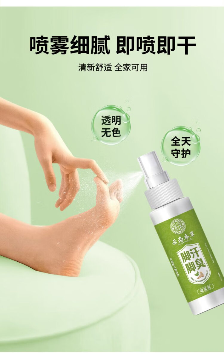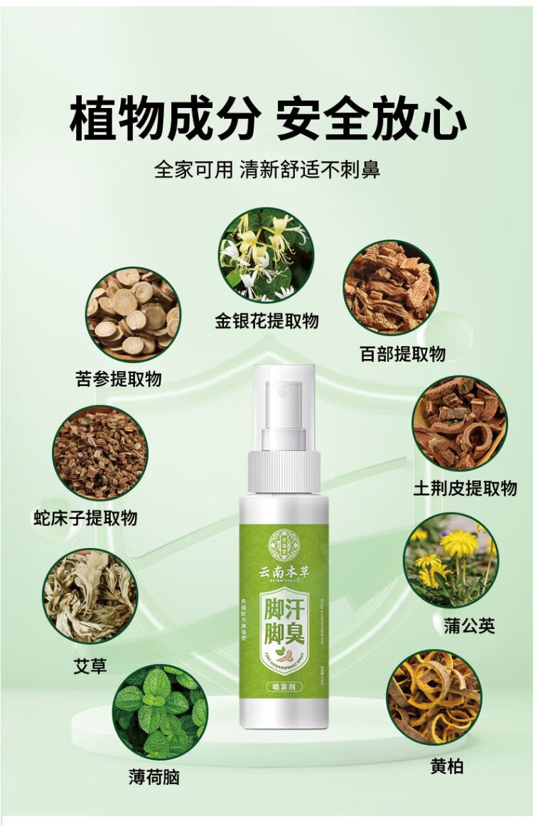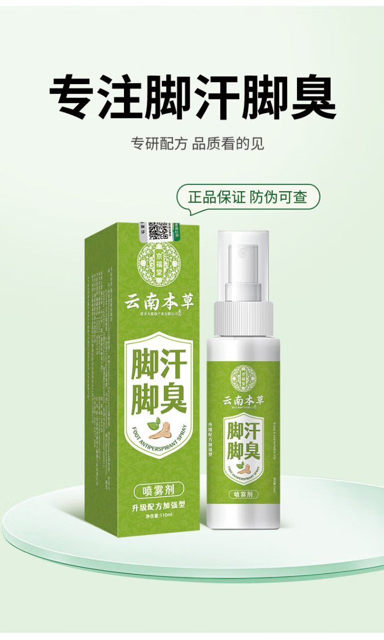 Yunnan herbal foot sweat and foot odor antibacterial spray 110ml sterilization, antiperspirant, peeling and rotten feet, deodorizing foot sweat spray