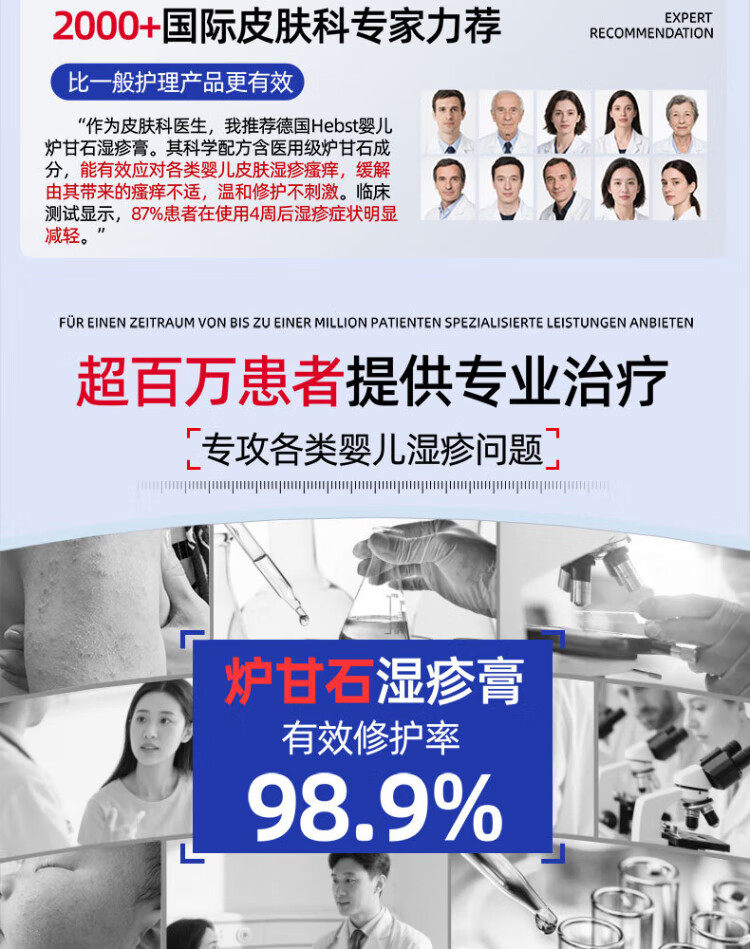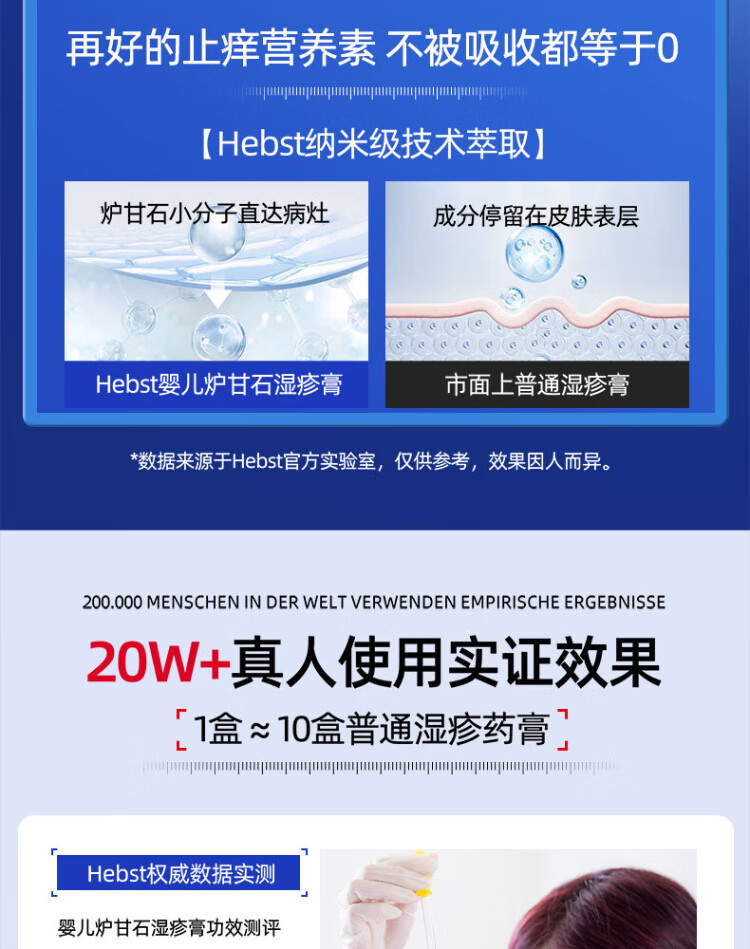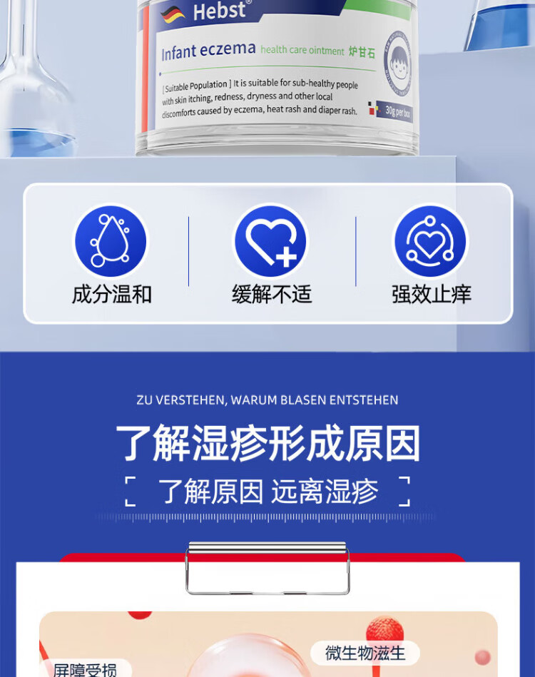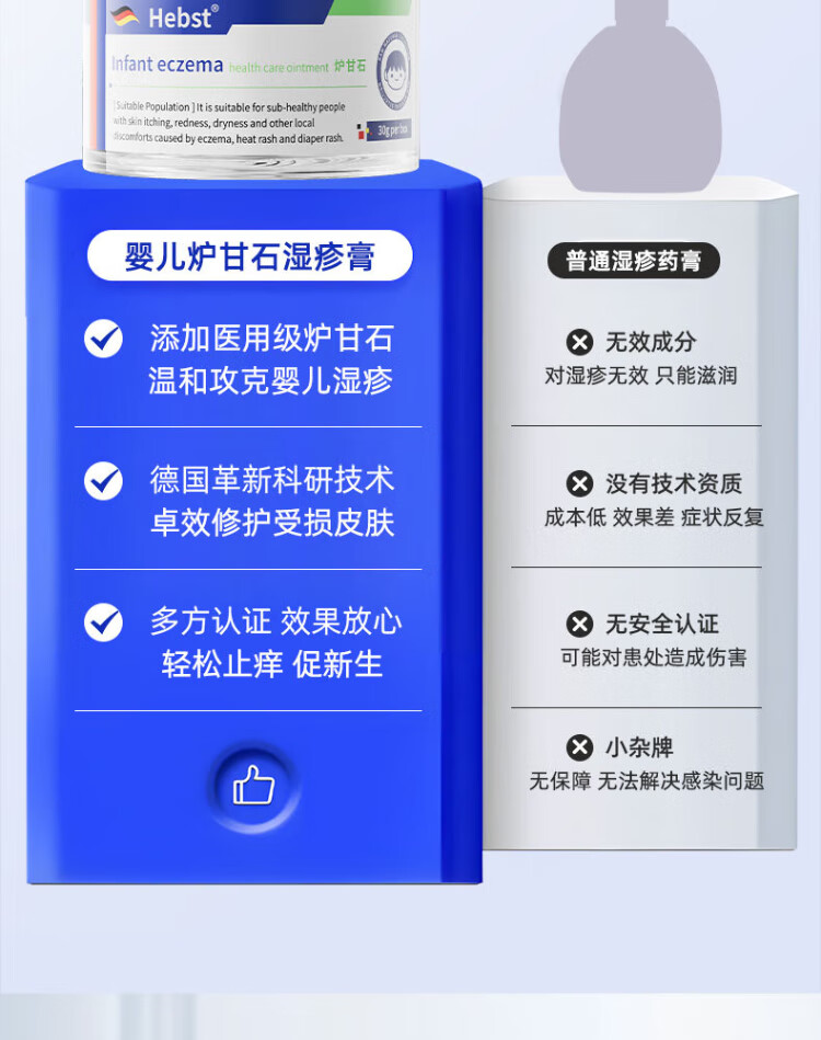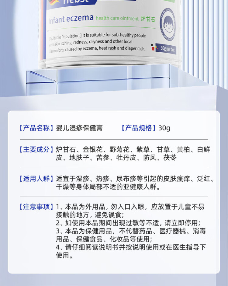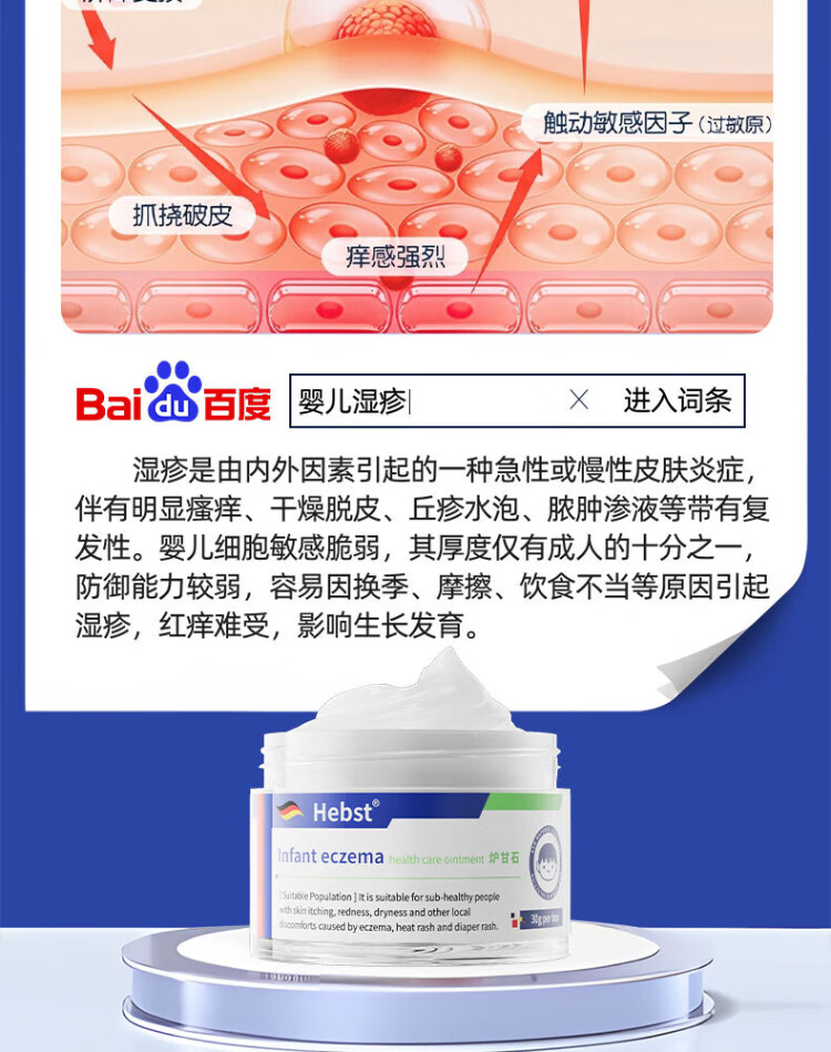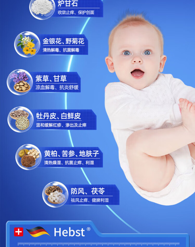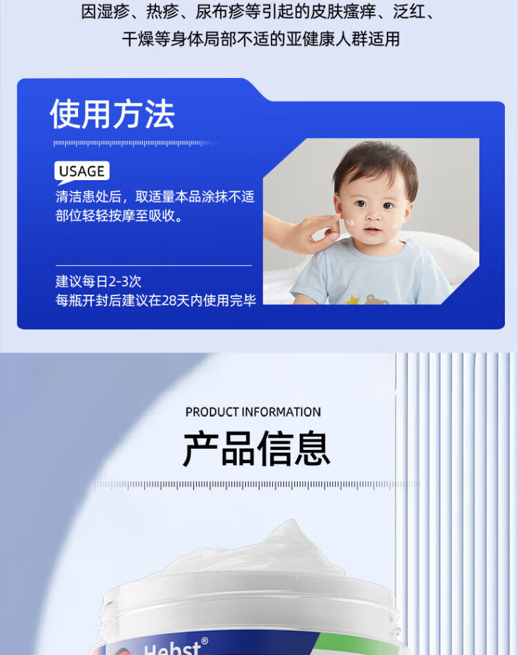 HEBST calamine baby antibacterial and antipruritic cream for eczema, heat rash, itchy skin, dermatitis, fungal infection
