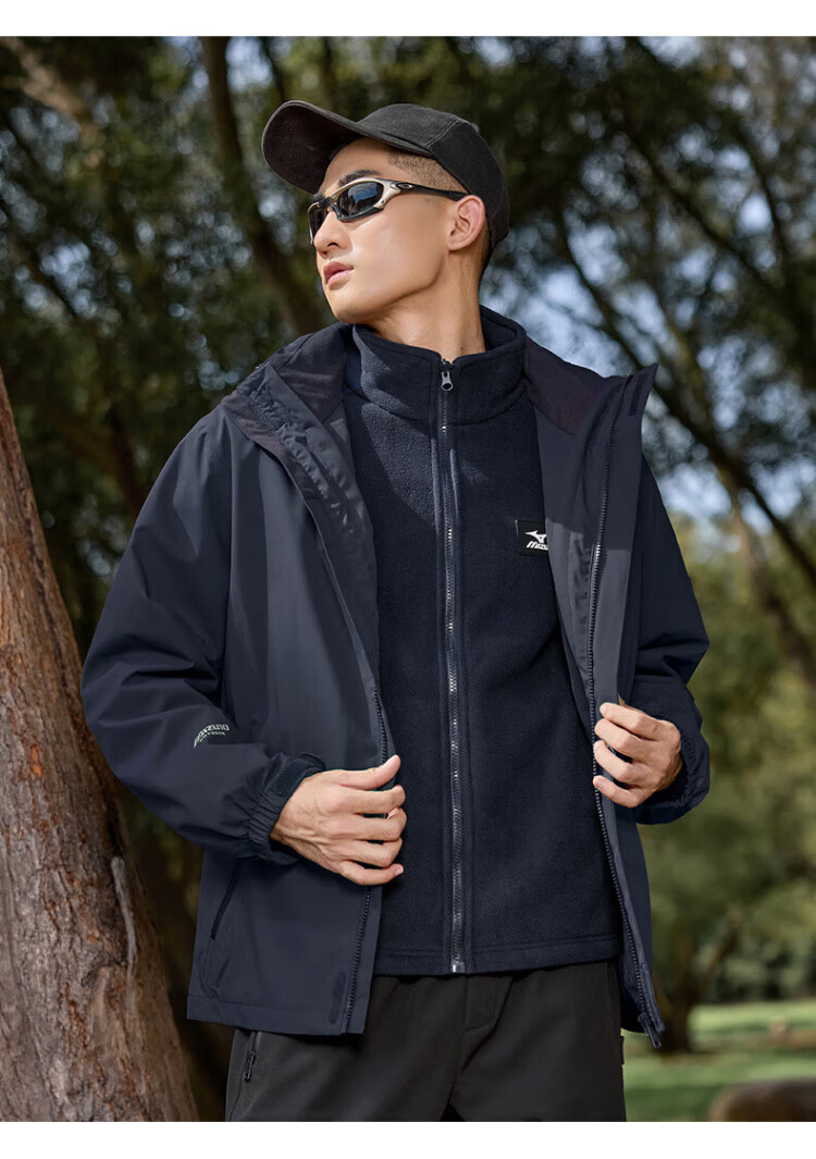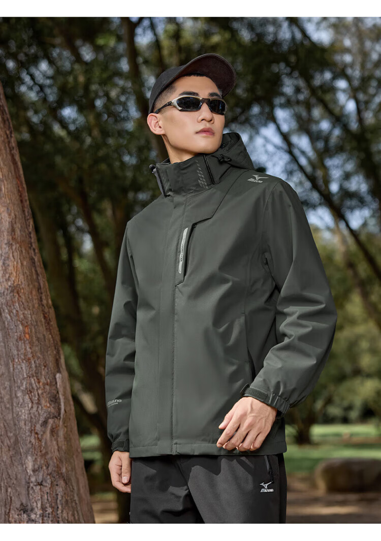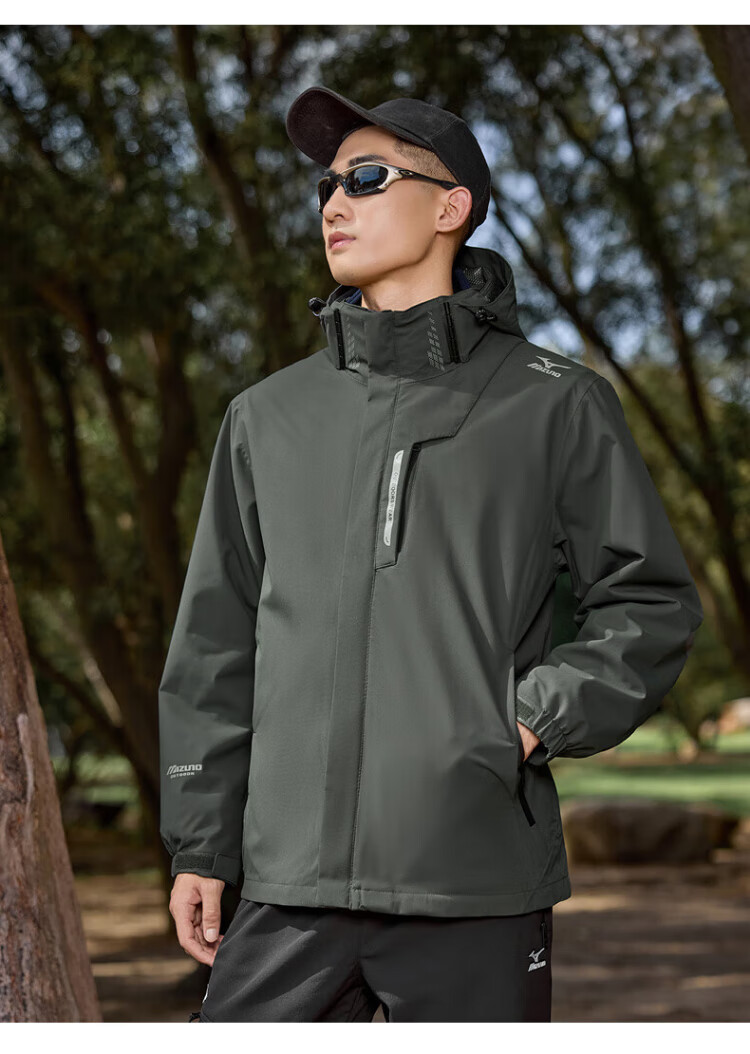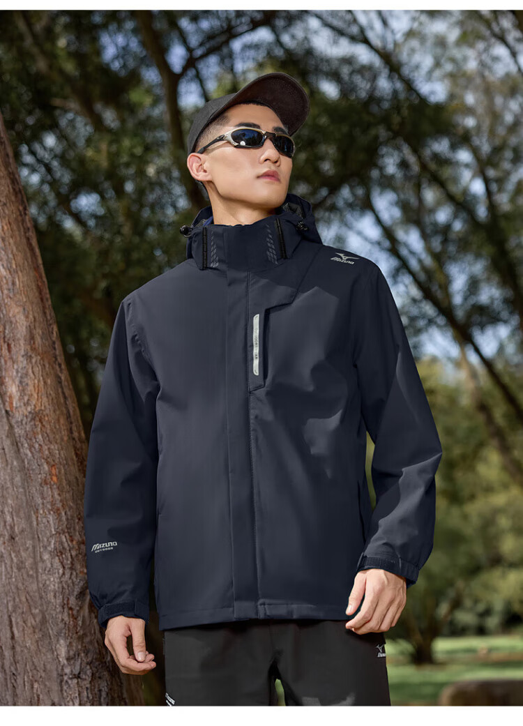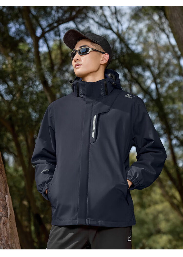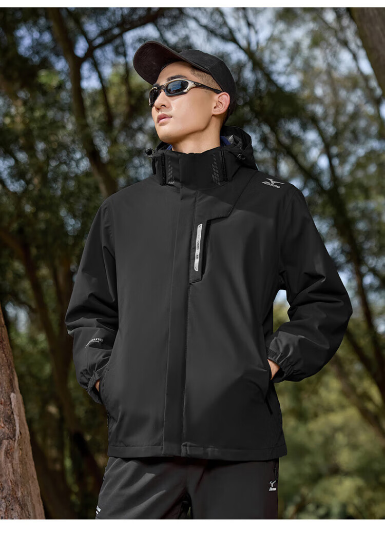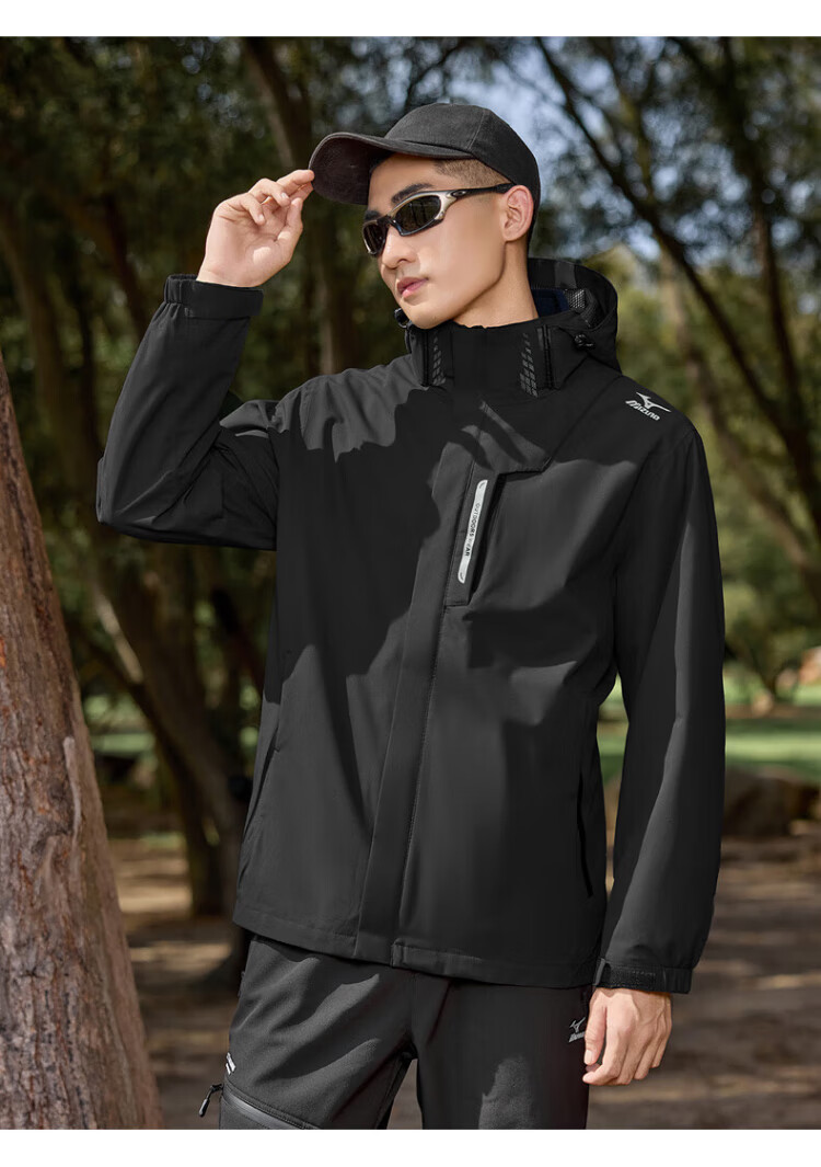 Mizuno Outdoor Jacket Men's Jacket Top Hooded Windproof and Waterproof Three-in-One Mountaineering Suit Black XL
