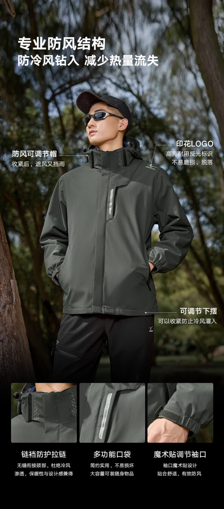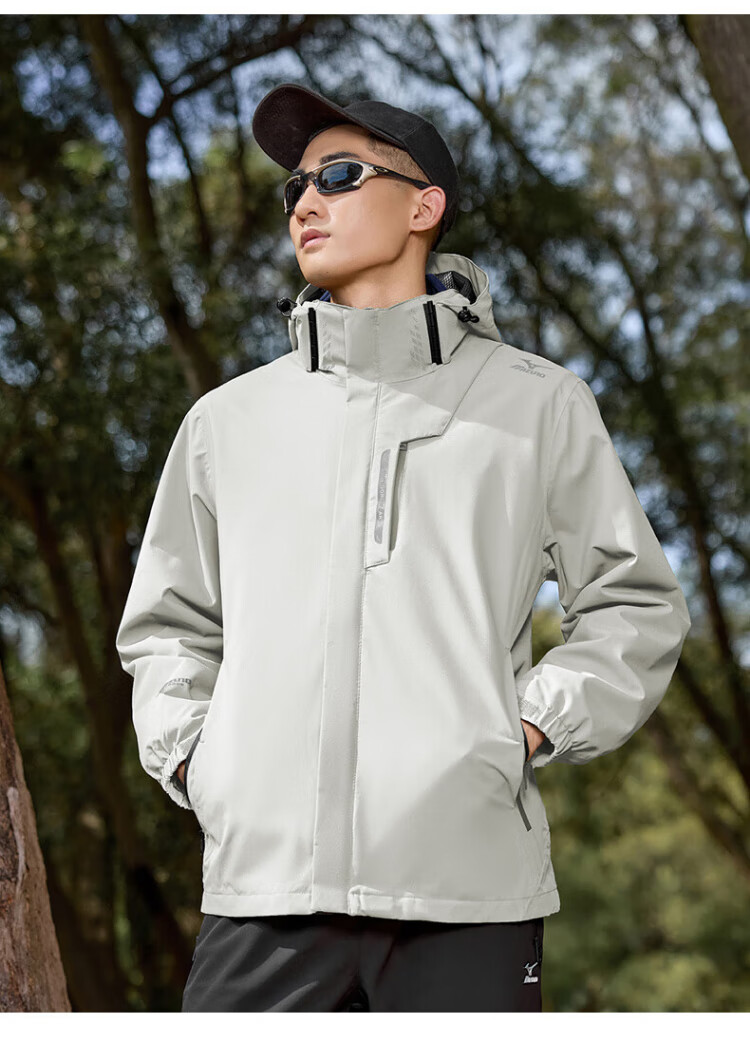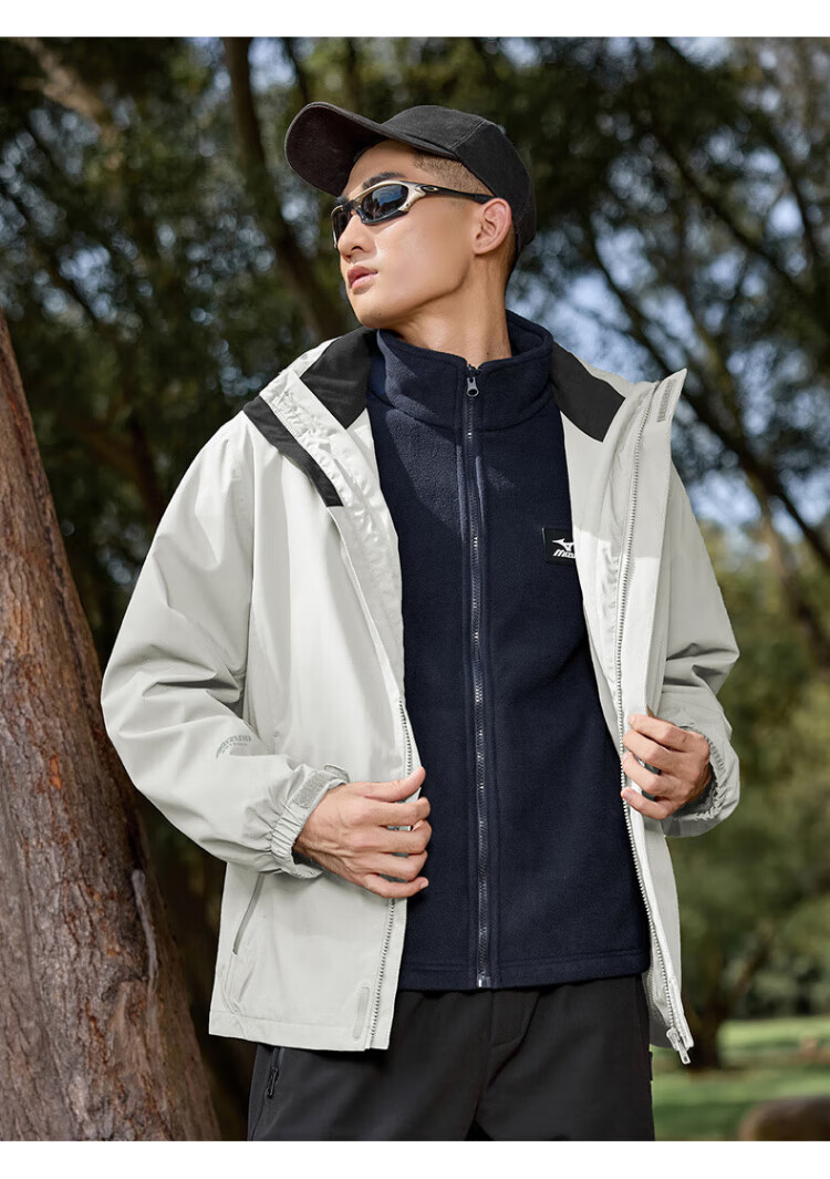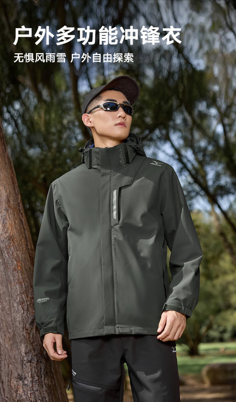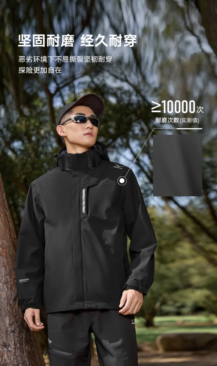 Mizuno Outdoor Jacket Men's Jacket Top Hooded Windproof and Waterproof Three-in-One Mountaineering Suit Black XL