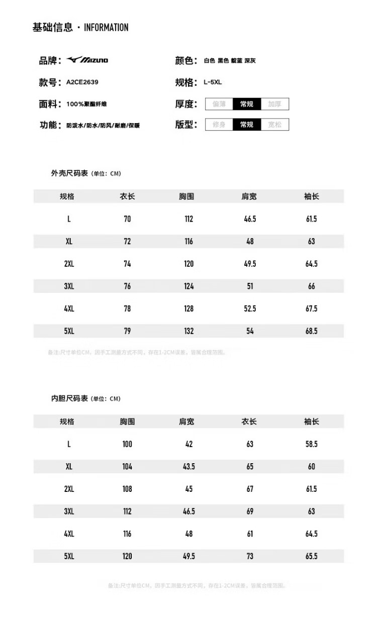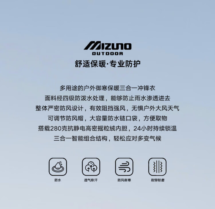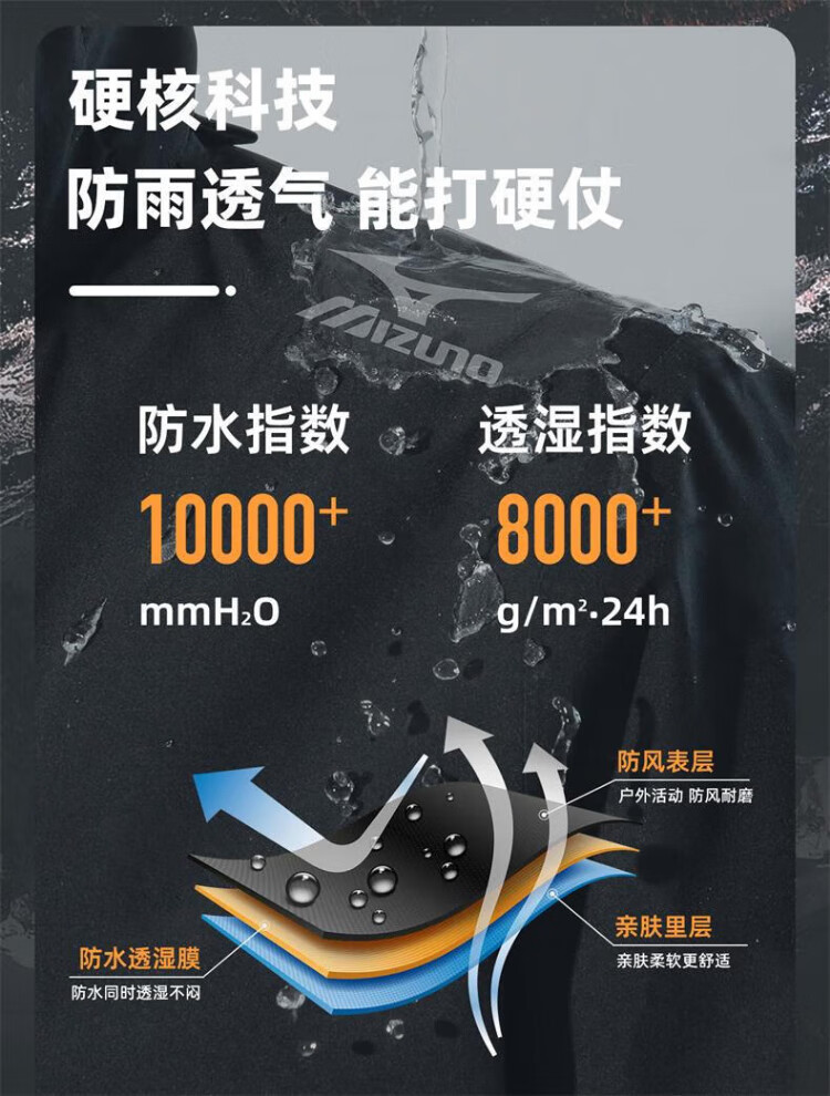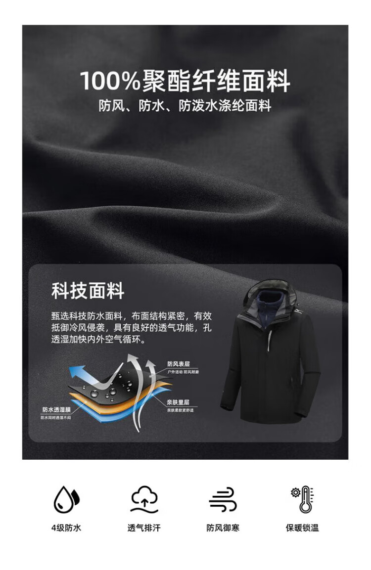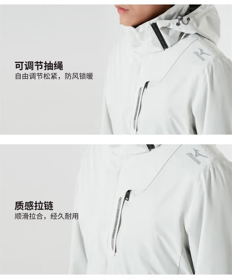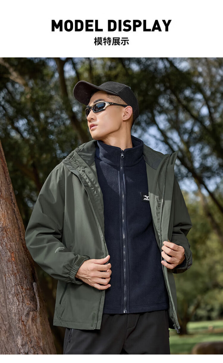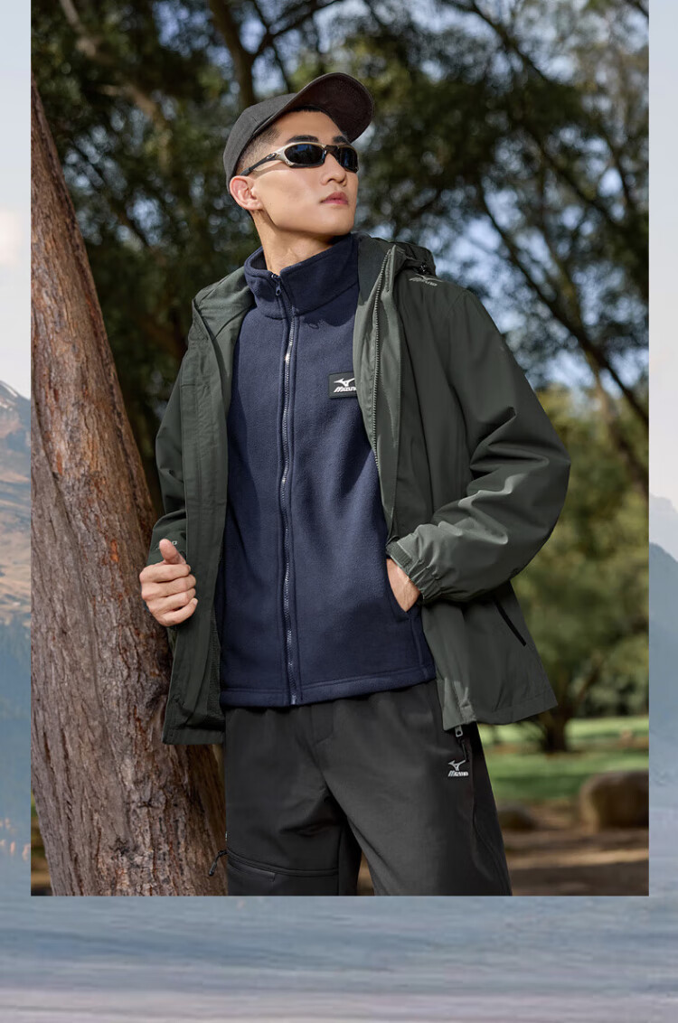 Mizuno Outdoor Jacket Men's Jacket Top Hooded Windproof and Waterproof Three-in-One Mountaineering Suit Black XL