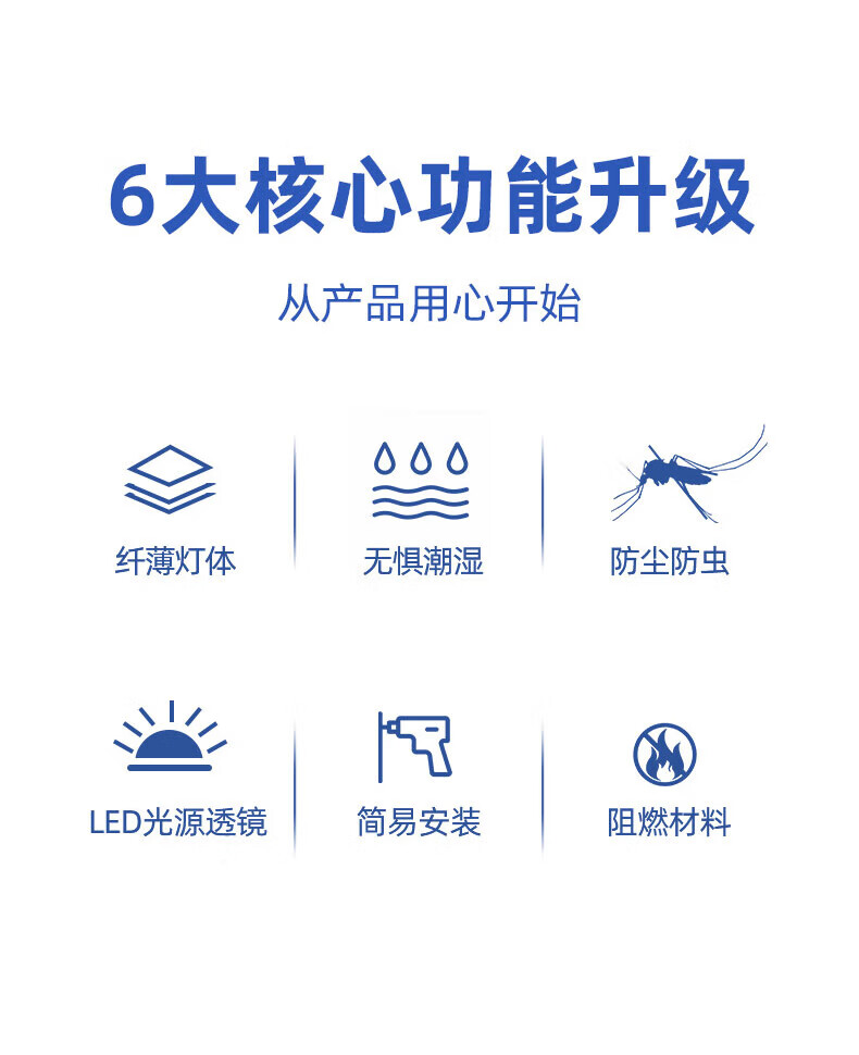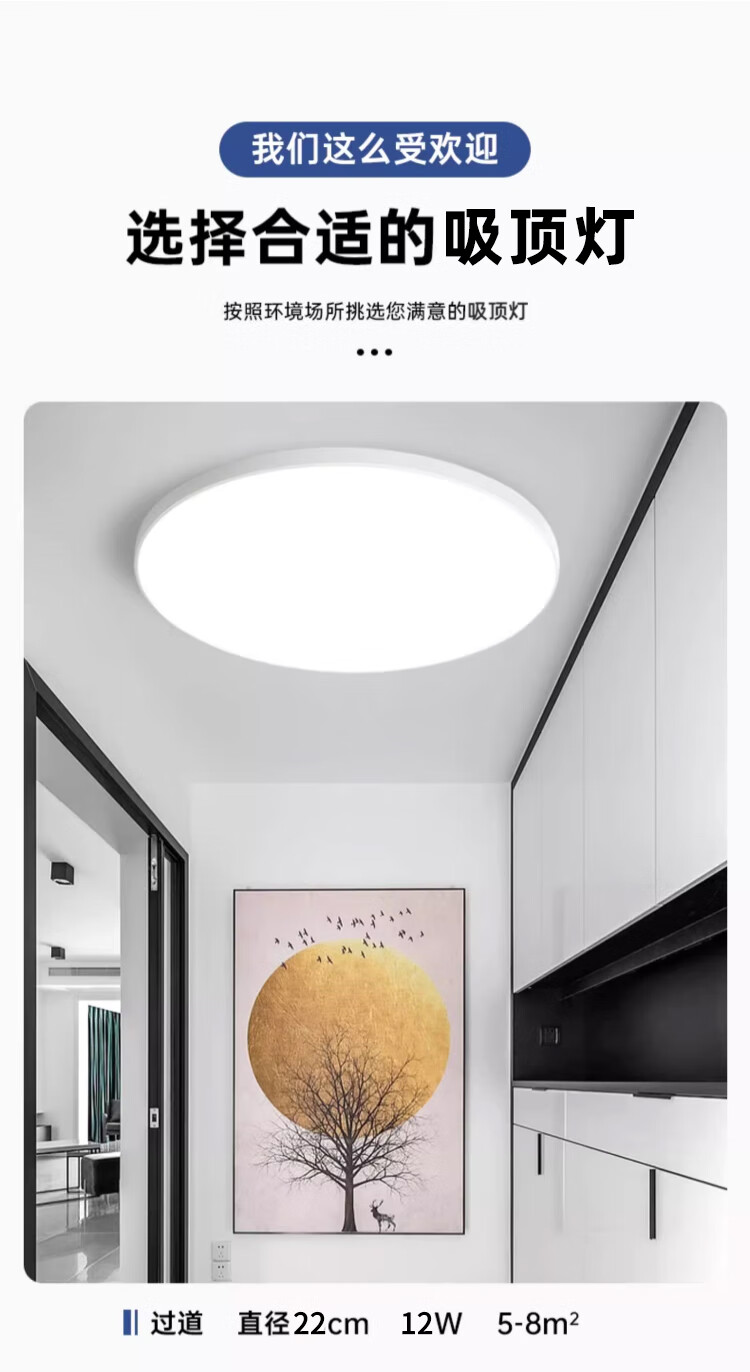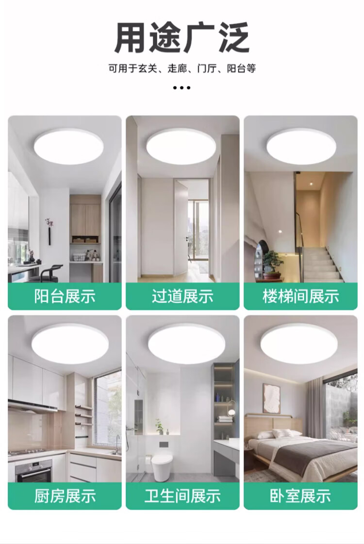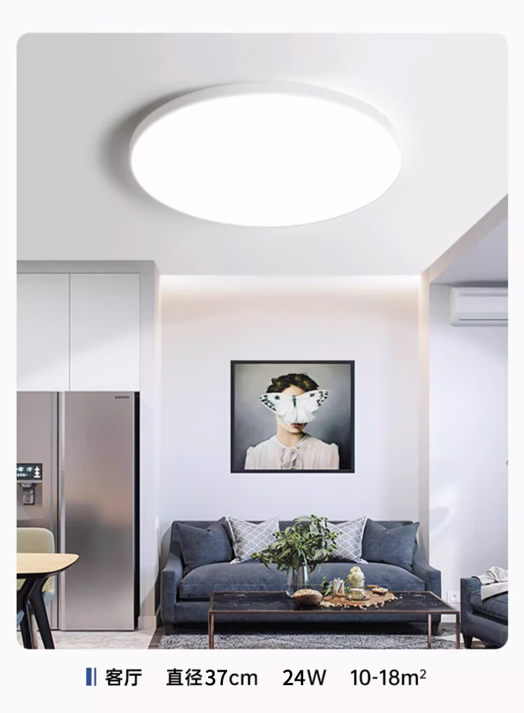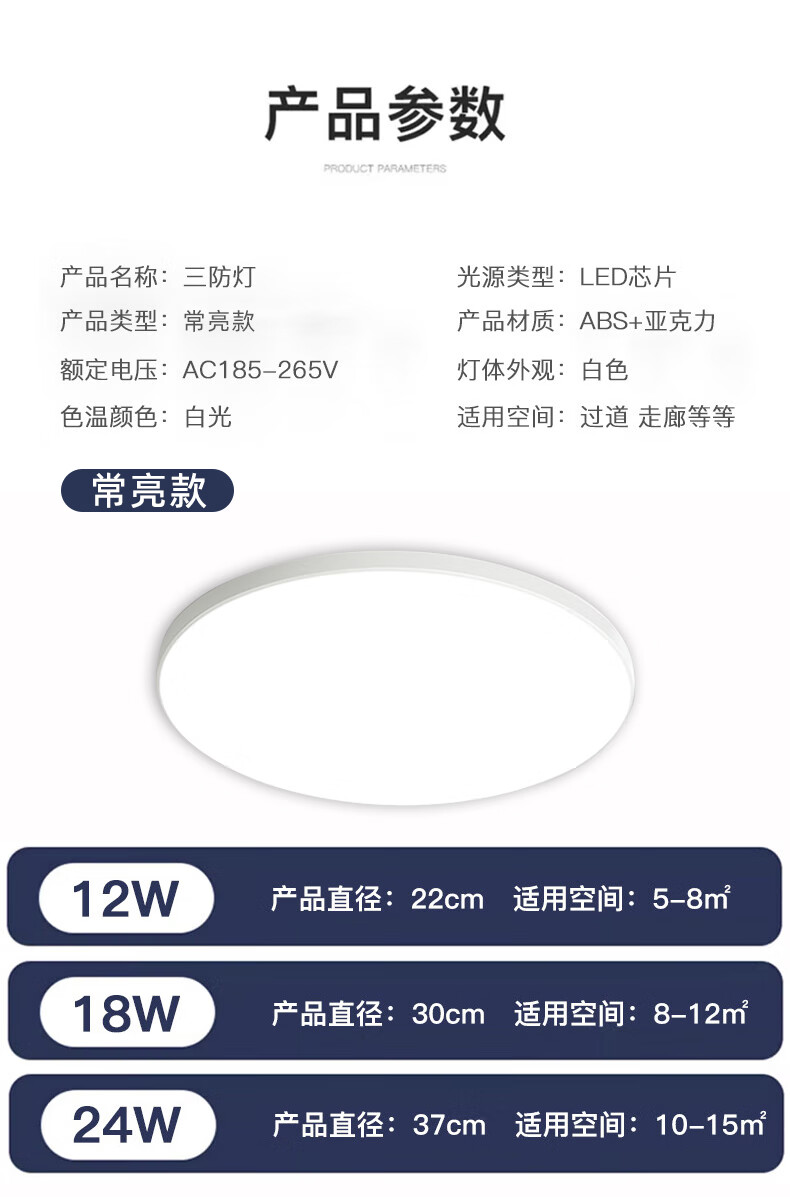 Biuyum LED three-proof ceiling lamp, moisture-proof, dust-proof and insect-proof engineering stairway corridor corridor light ultra-thin lighting 24W-always on-white light