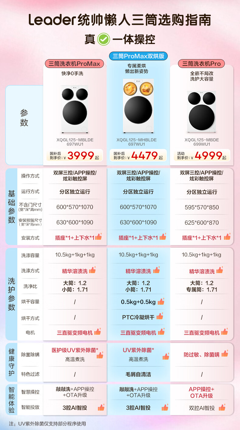 Leader Haier produces lazy three-tub washing machine ProMax double drying fully automatic PTC drying state subsidy three barrels 12.5 kg XQGL125-MHBLDE697WU1