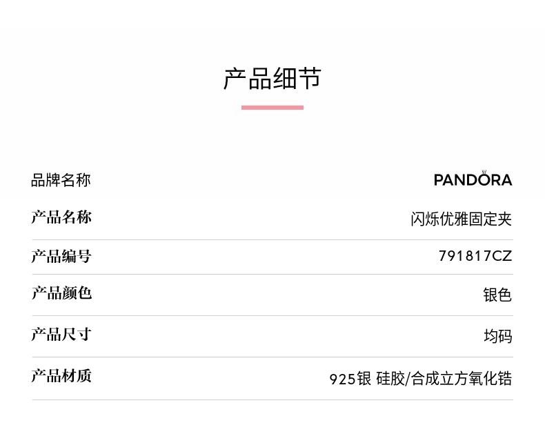 PANDORA Sparkling Elegant Silicone Clip 925 Silver DIY Beaded Versatile Birthday Gift for Girlfriend Sparkling Elegant Onesize