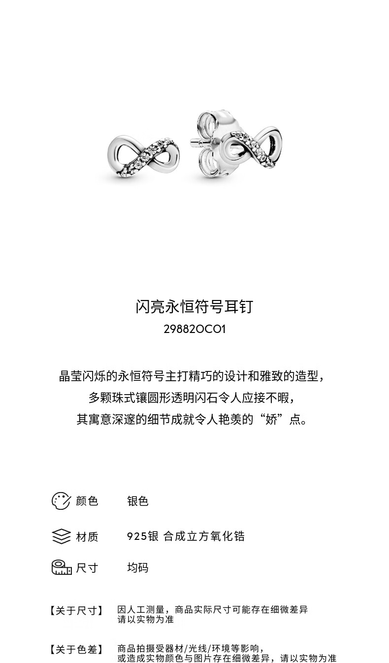 PANDORA Shining Eternity Symbol Earrings 925 Silver Infinity Symbol Fashionable and Versatile Birthday Gift for Girlfriend 298820C01 One Size