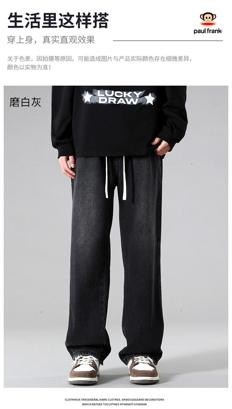 Paul Frank Jeans Men's Autumn American Pants Men's Drapey Loose Wide-leg Casual Pants Men's Trendy White Gray XL