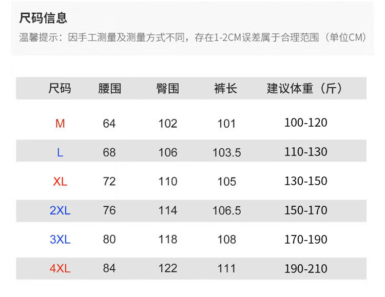 Outseam (cm) 99 cm 101.5 cm 104 cm 106.5 cm 109 cm