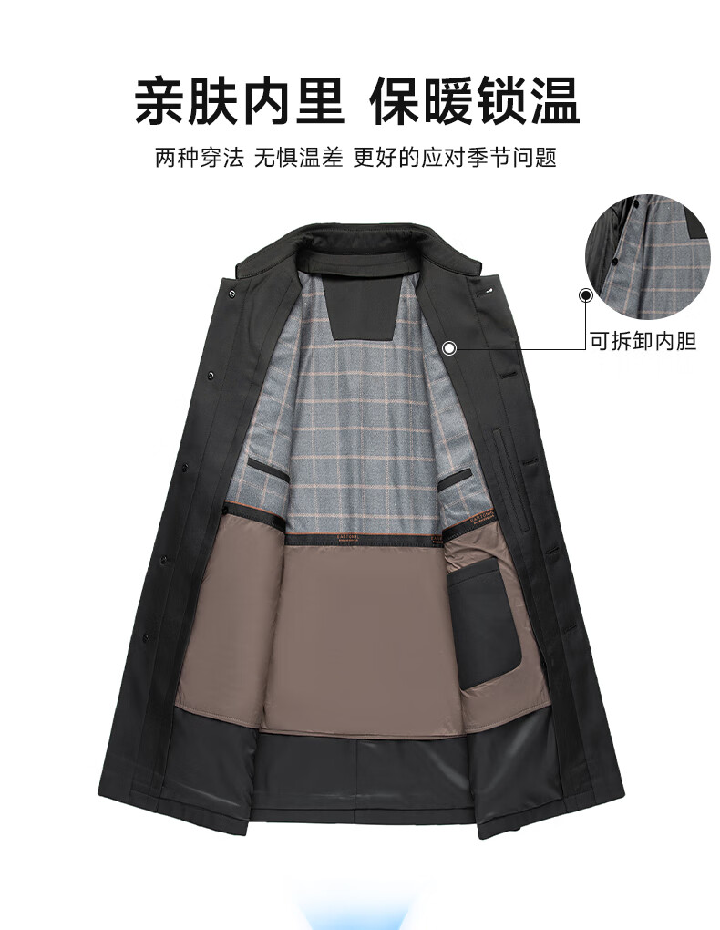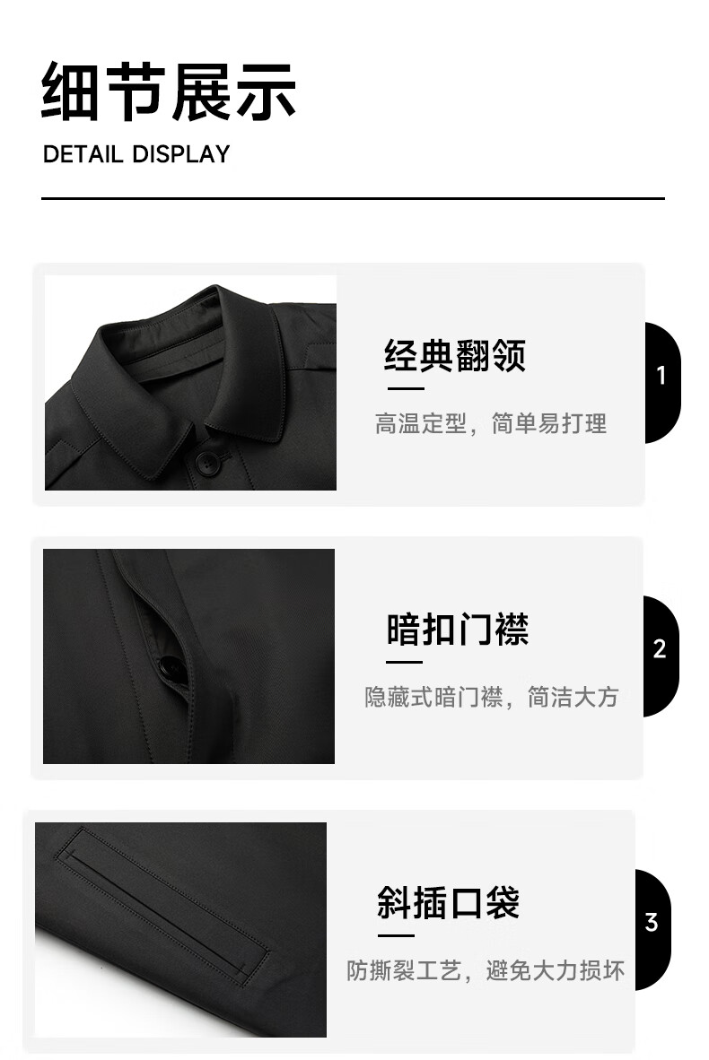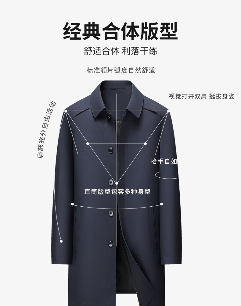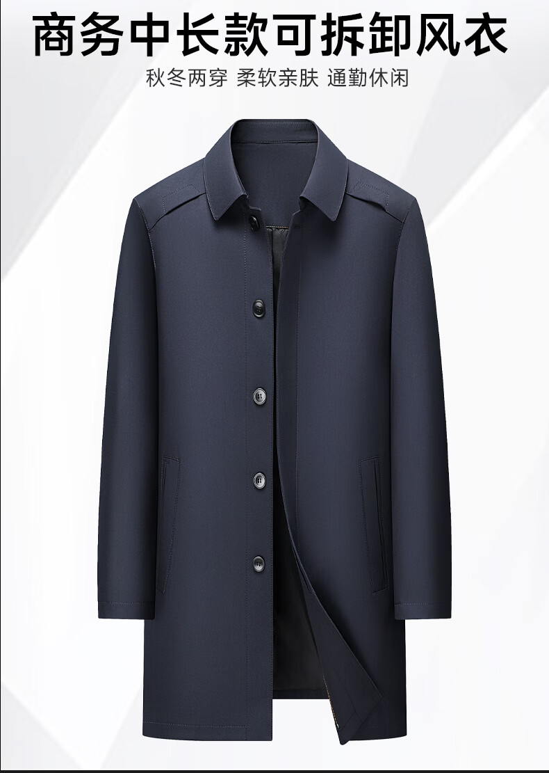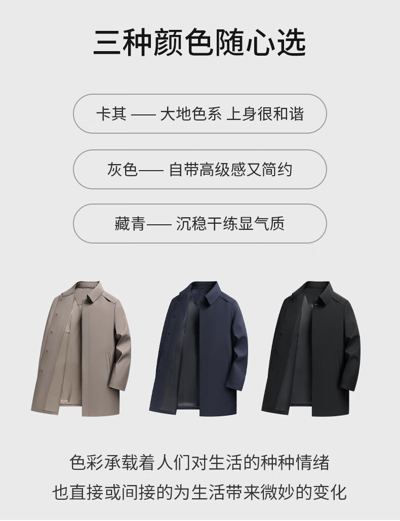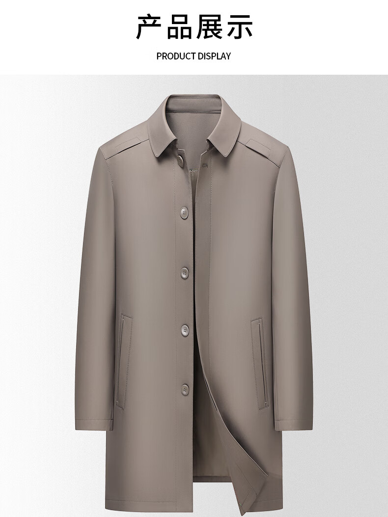 皮尔卡丹【抗皱】风衣男士秋冬季中长款商务休闲翻领行政夹克中年爸爸装