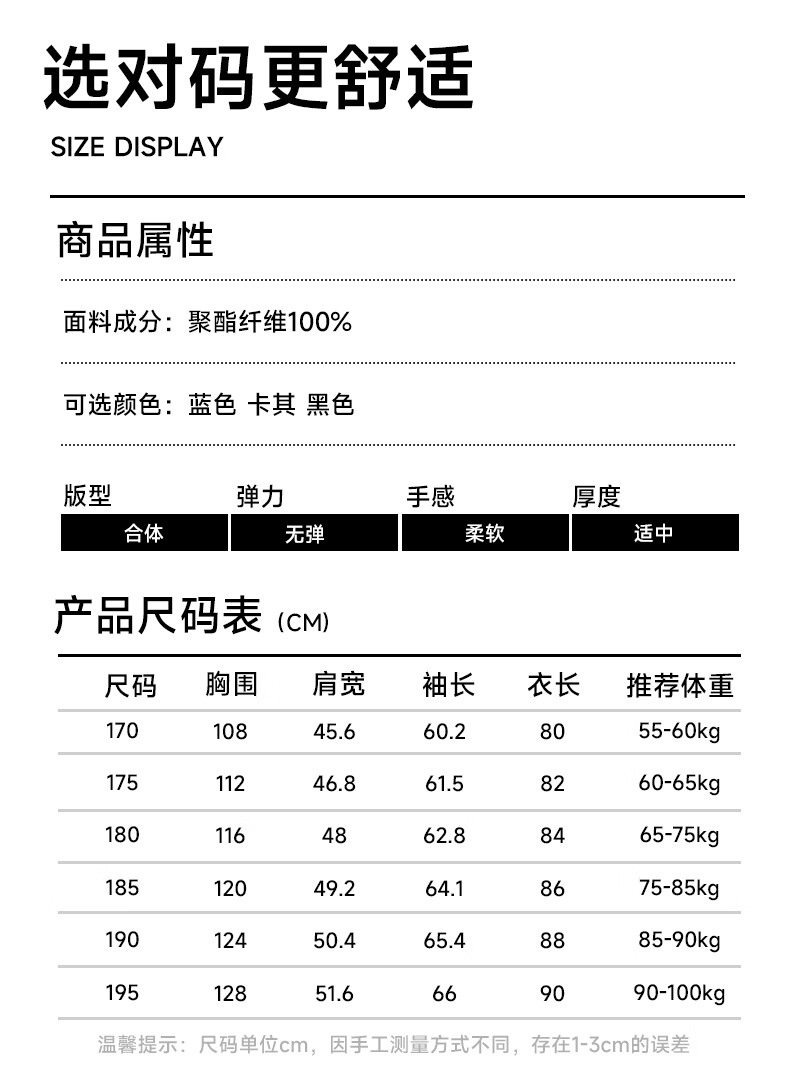 China (cm) 165 / 88-90 170 / 96-98 175 / 108-110 180 / 118-122 185 / 126-130