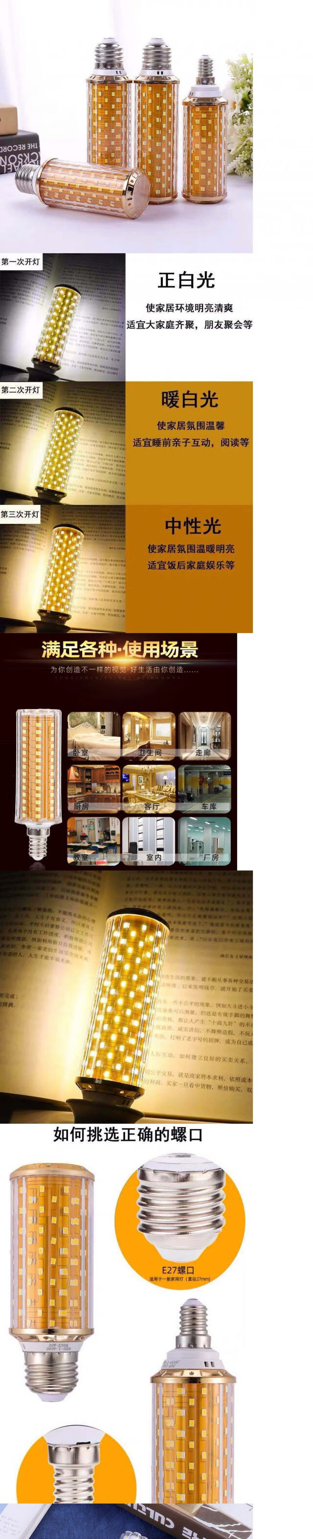 Jie Yintong energy-saving light bulb, ultra-bright LED light bulb, corn lamp energy-saving lamp, household living room lamp, bedroom lamp, white light, warm light, three colors, 16-watt white light, 5 pieces, E27 large screw mouth (ordinary household use)
