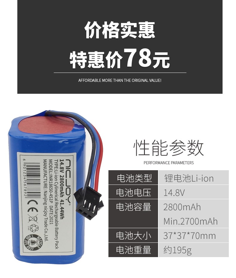 NICJOY NICJOY adapts to dymosen wireless electric mop C1 battery Korean Daewoo sweeping robot 14.4V battery