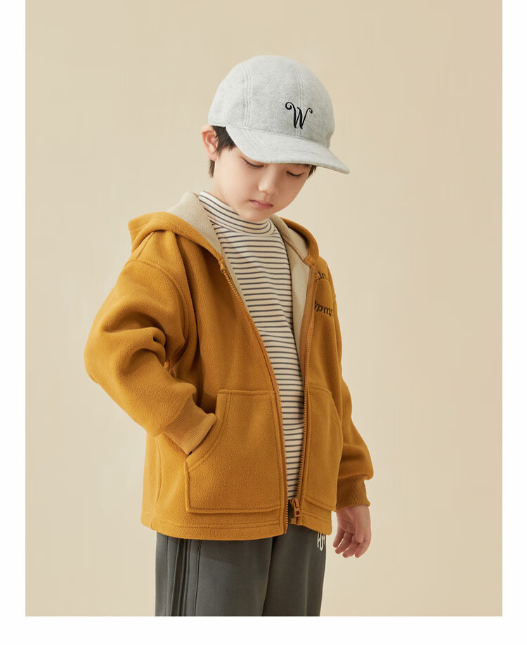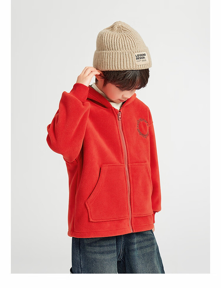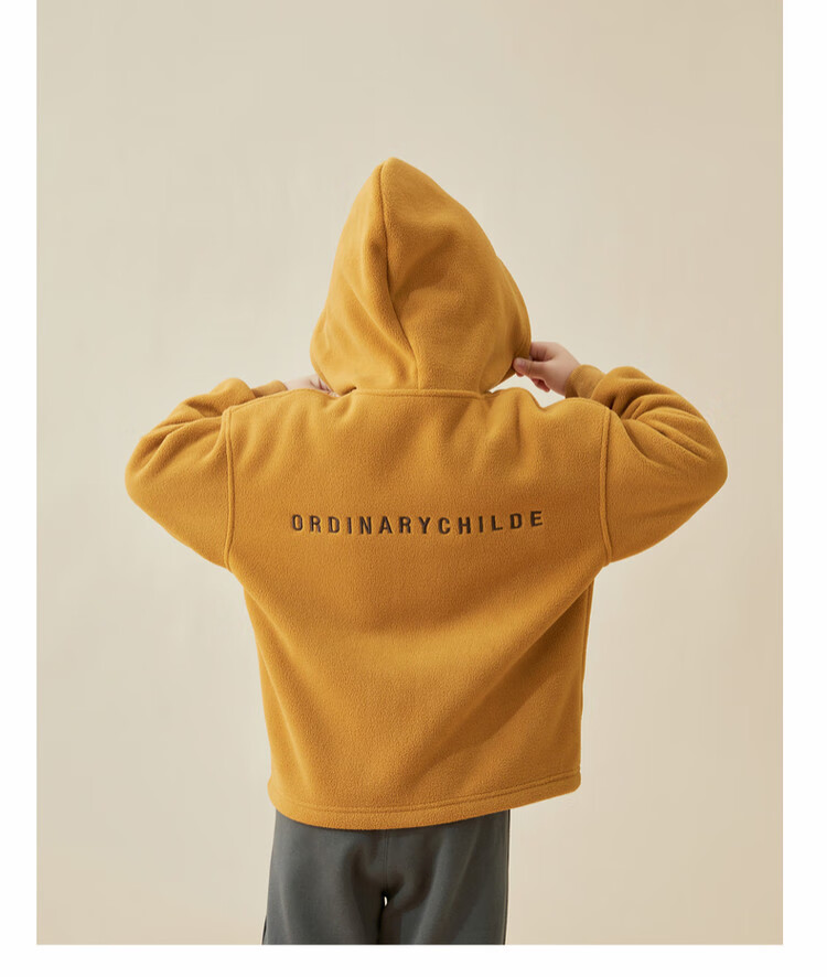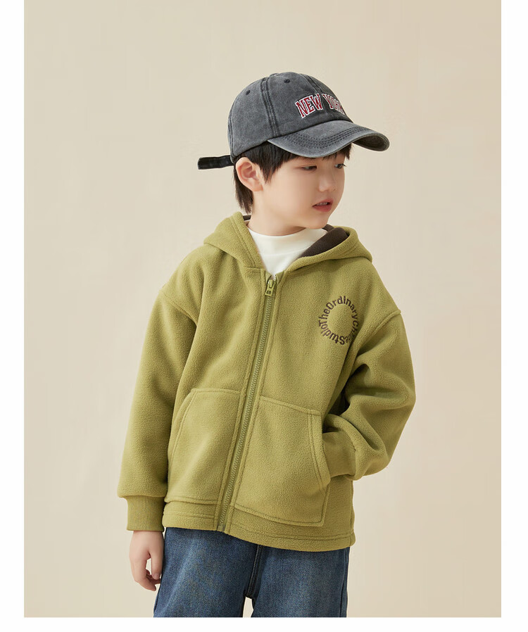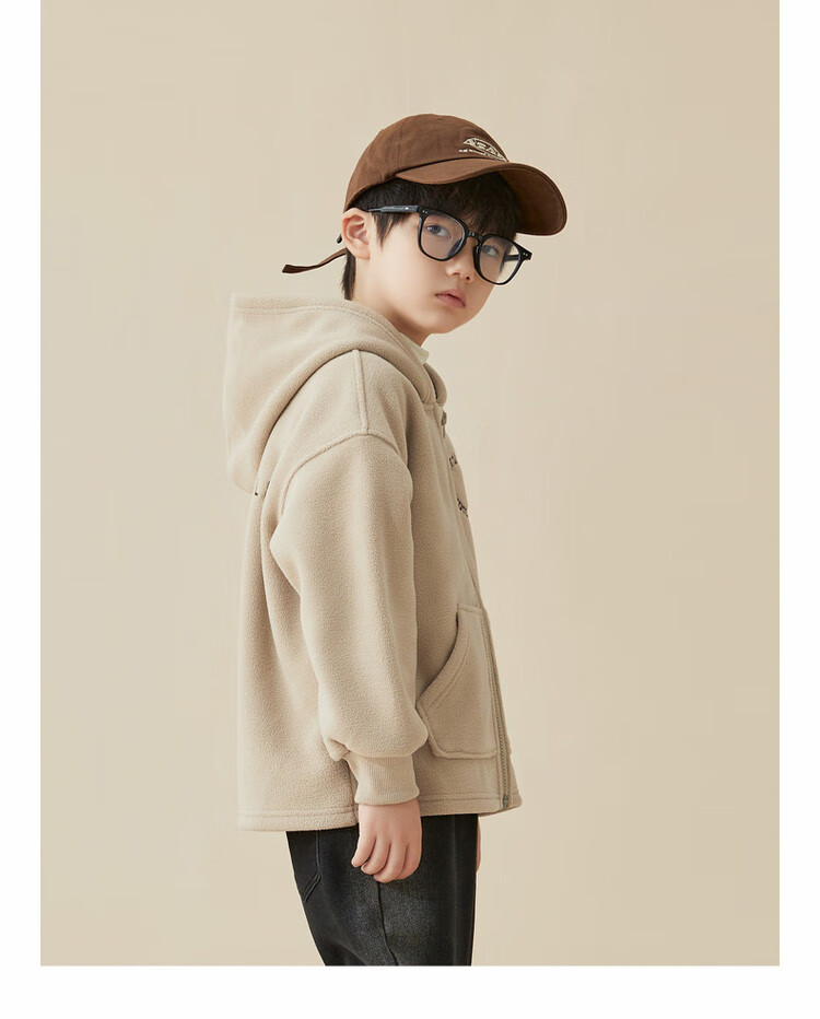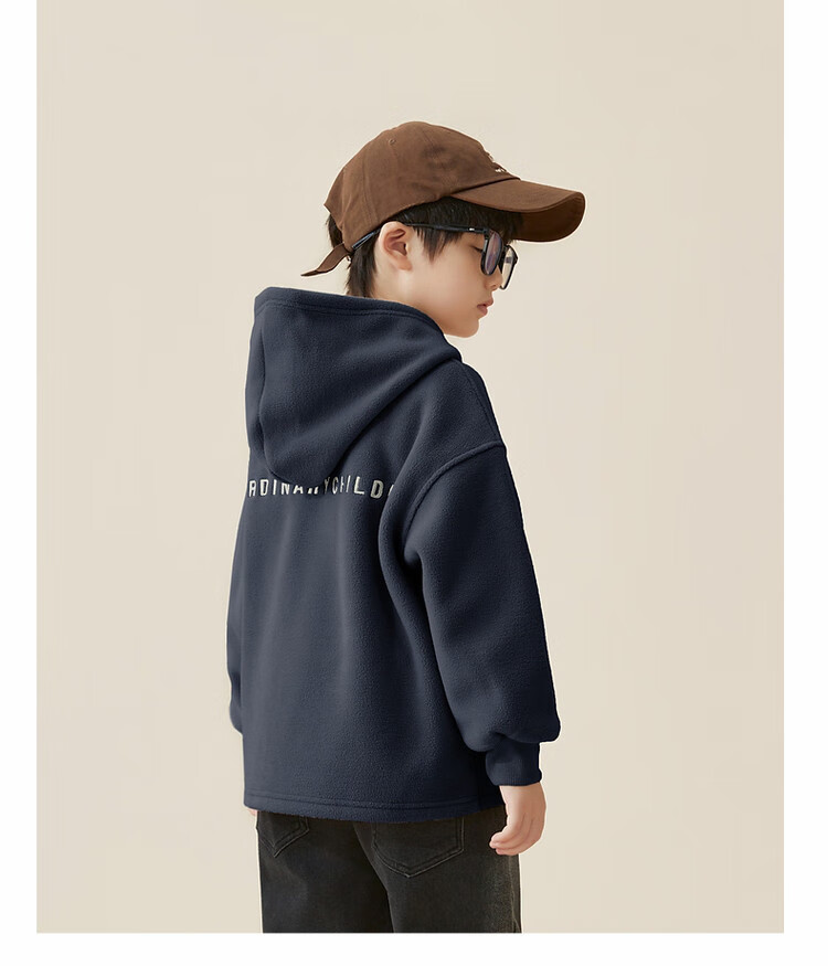 Duojia soft, smooth, warm and not bulky boys' polar fleece jacket children's autumn and winter hooded zipper cardigan