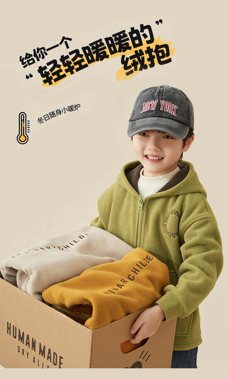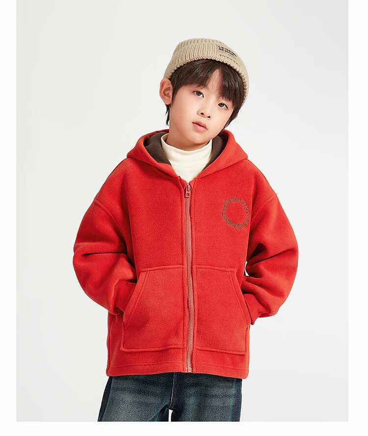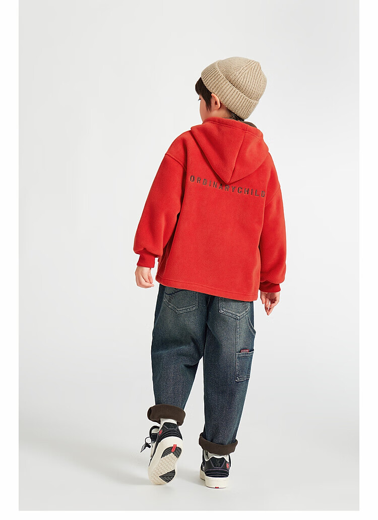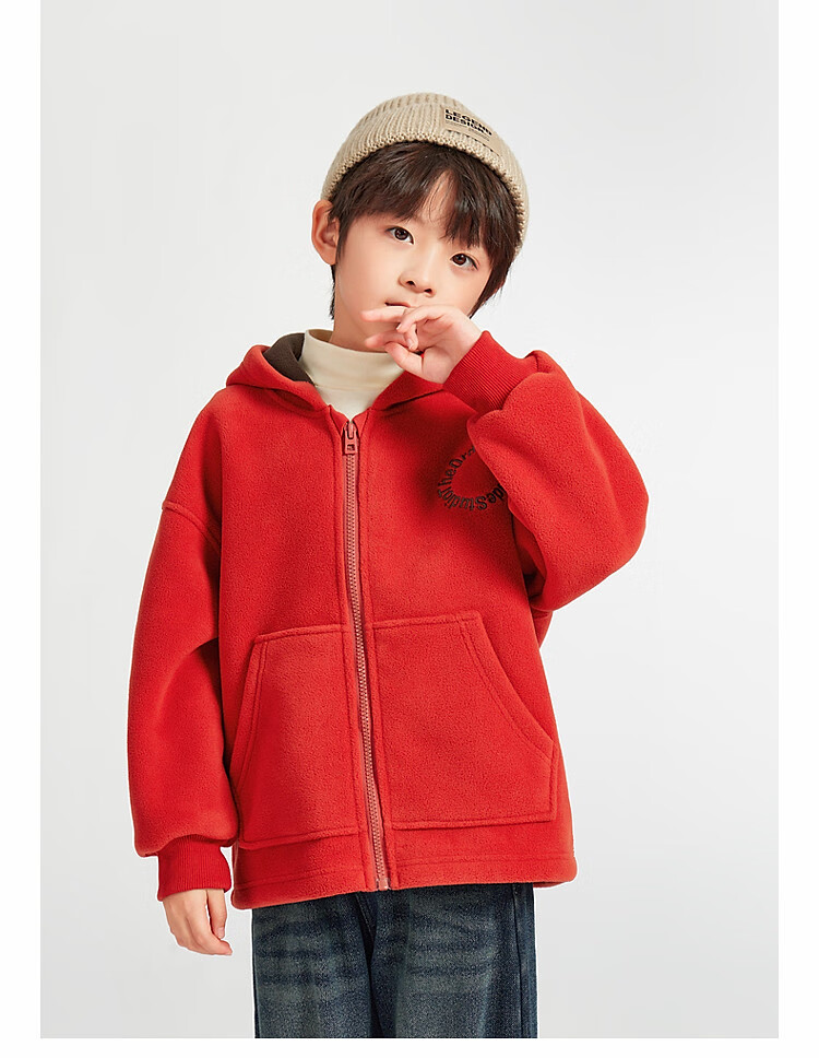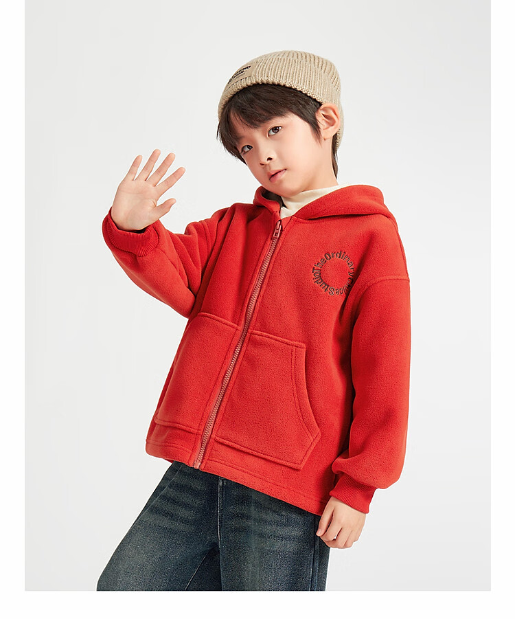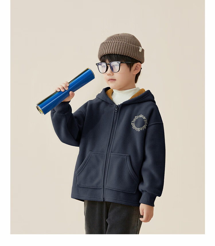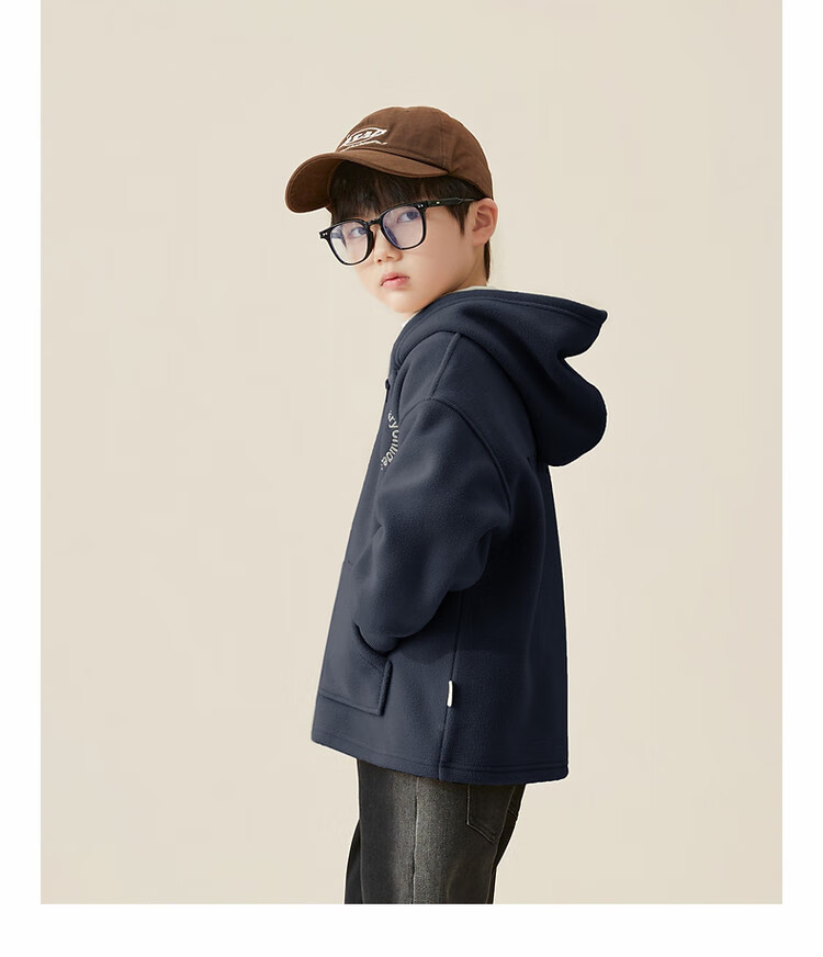 Duojia soft, smooth, warm and not bulky boys' polar fleece jacket children's autumn and winter hooded zipper cardigan