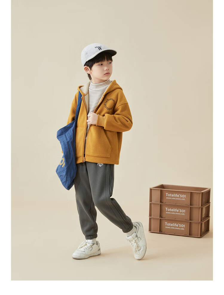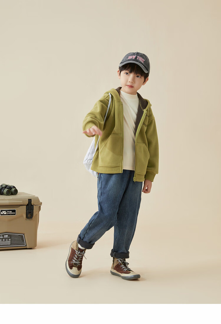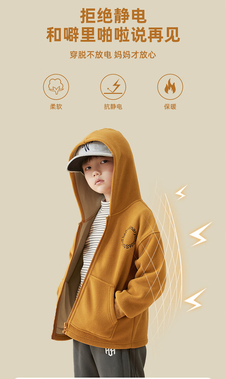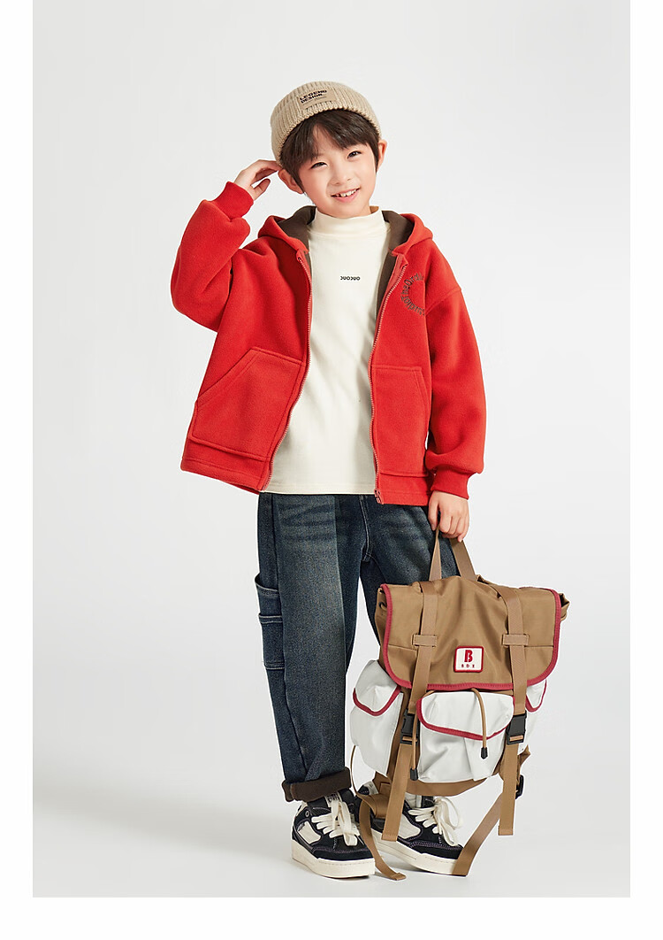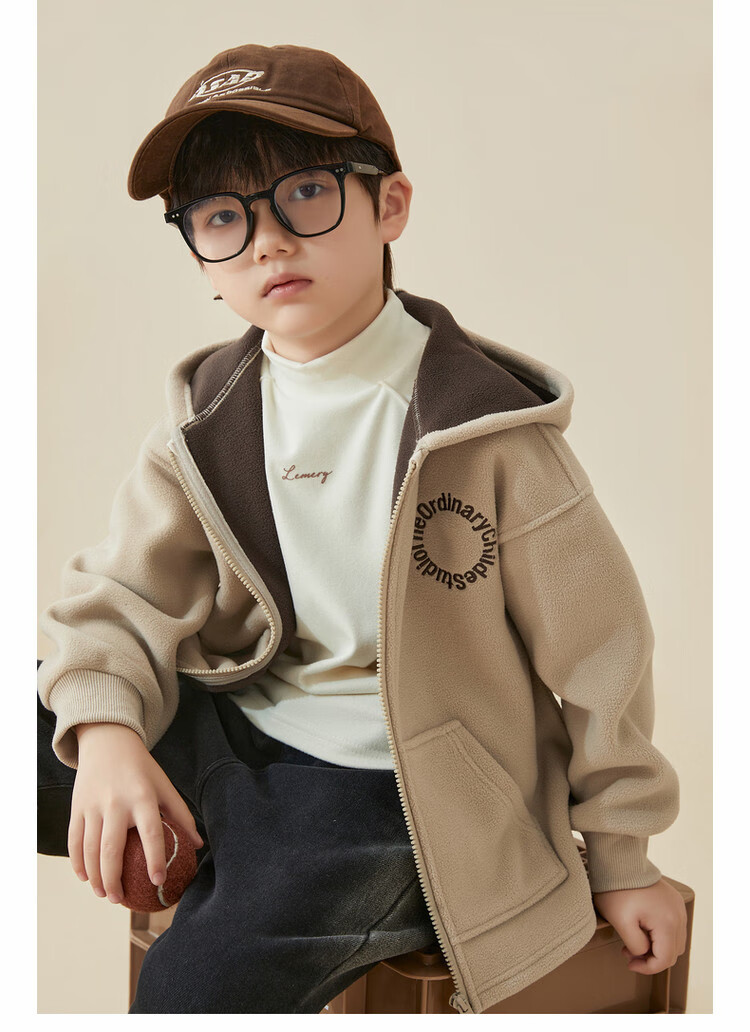 Duojia soft, smooth, warm and not bulky boys' polar fleece jacket children's autumn and winter hooded zipper cardigan