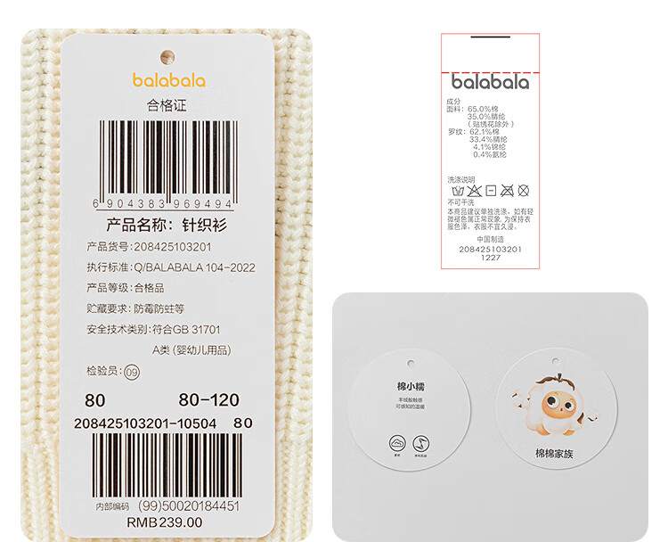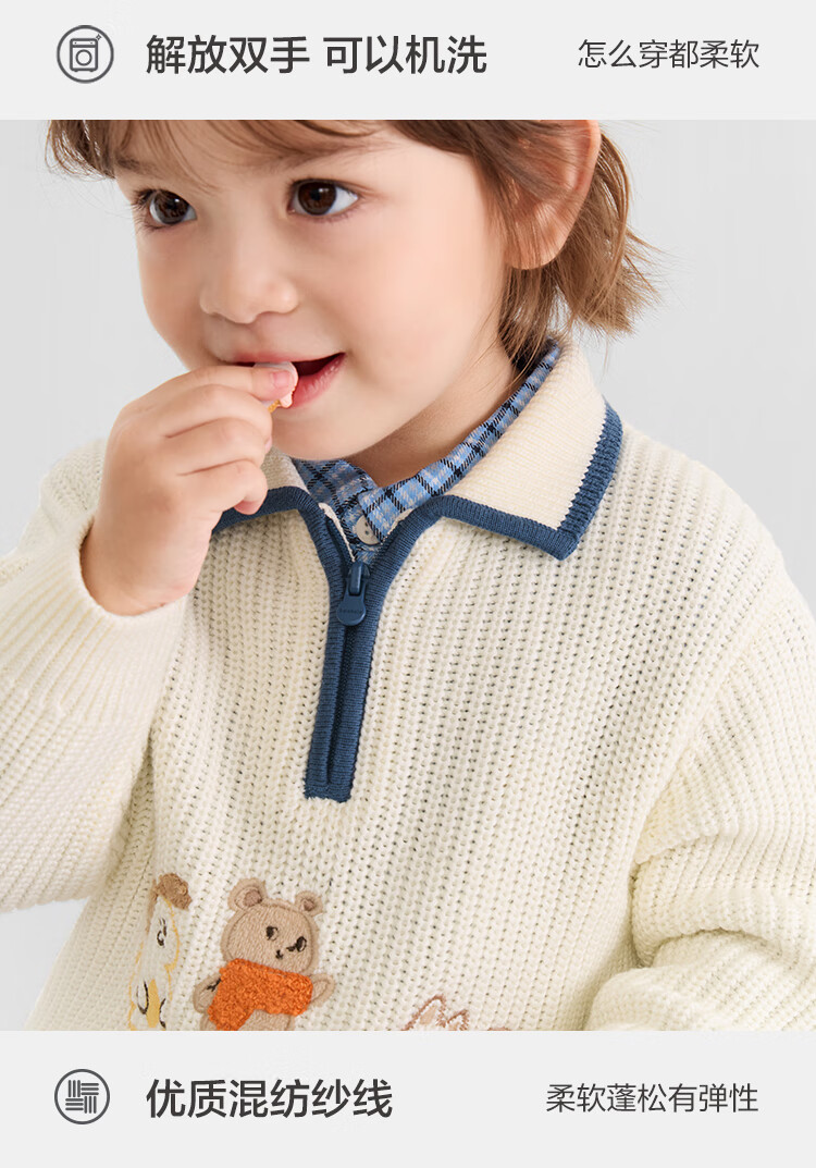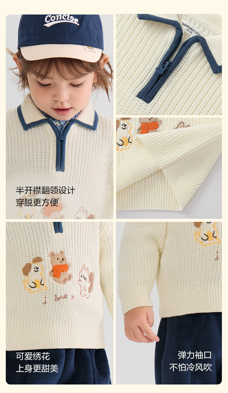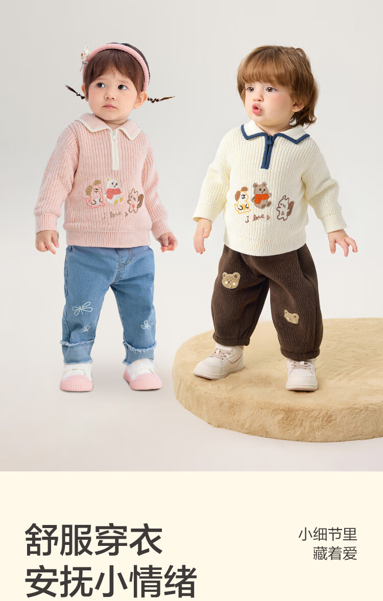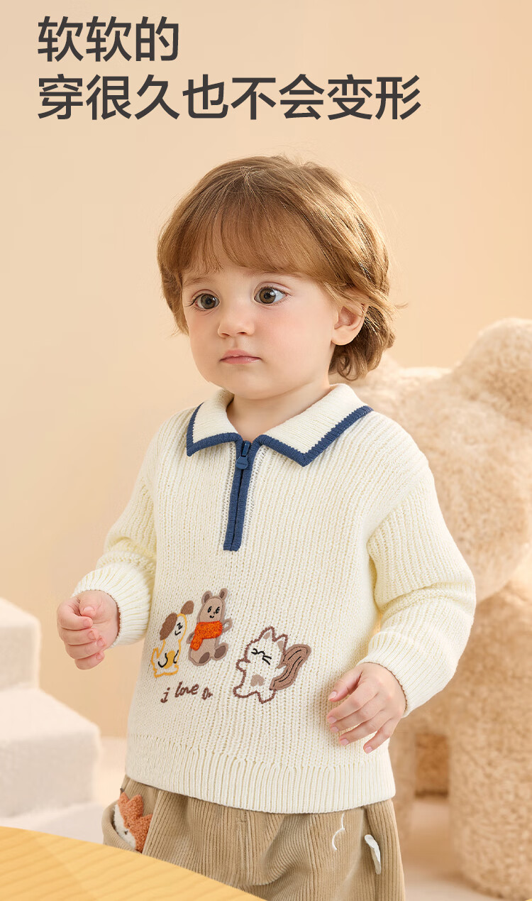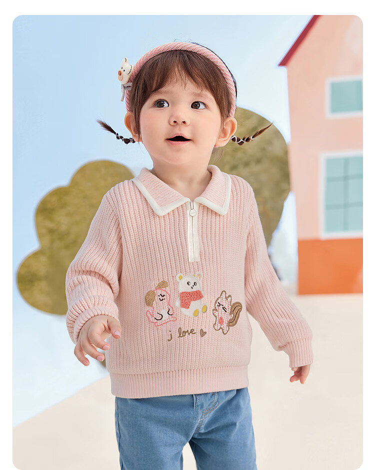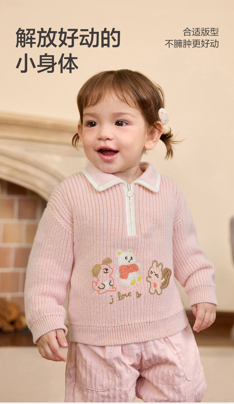 Bala balaOne children's sweater boys and girls 2025 winter sweater baby baby sweater 208425103201