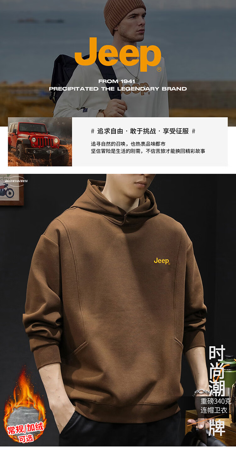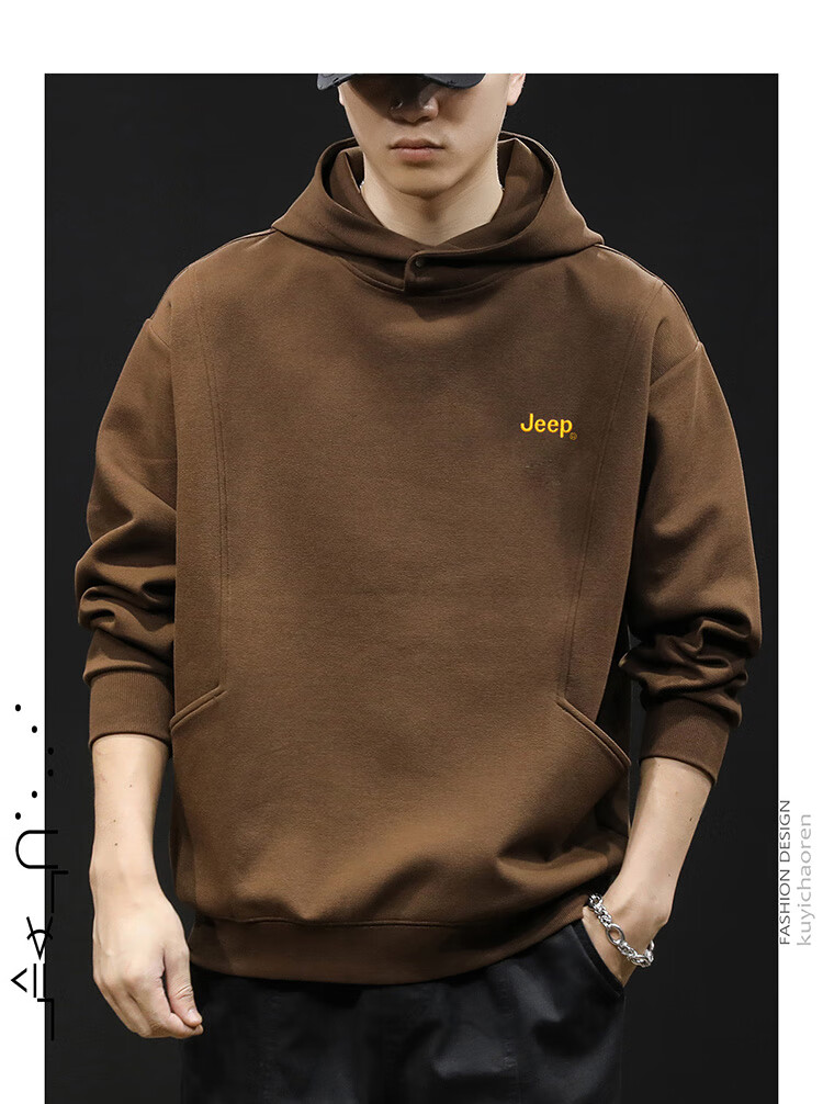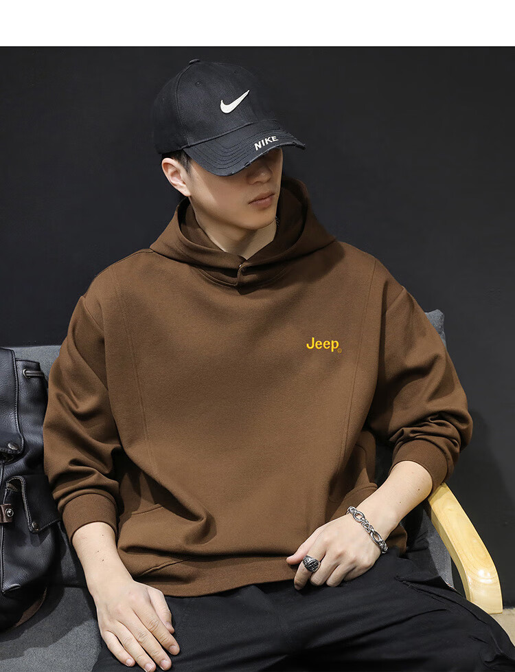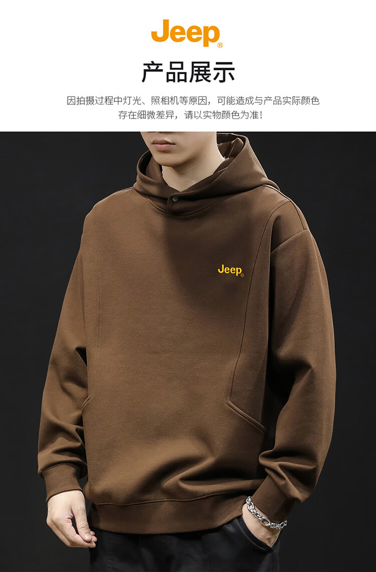 Jeep (JEEP) sweatshirt men's hooded autumn and winter loose bottoming shirt loose casual top men's brown XL