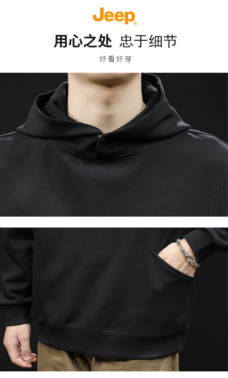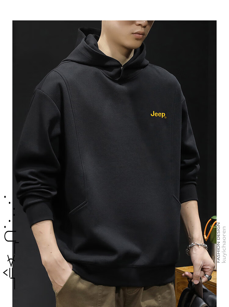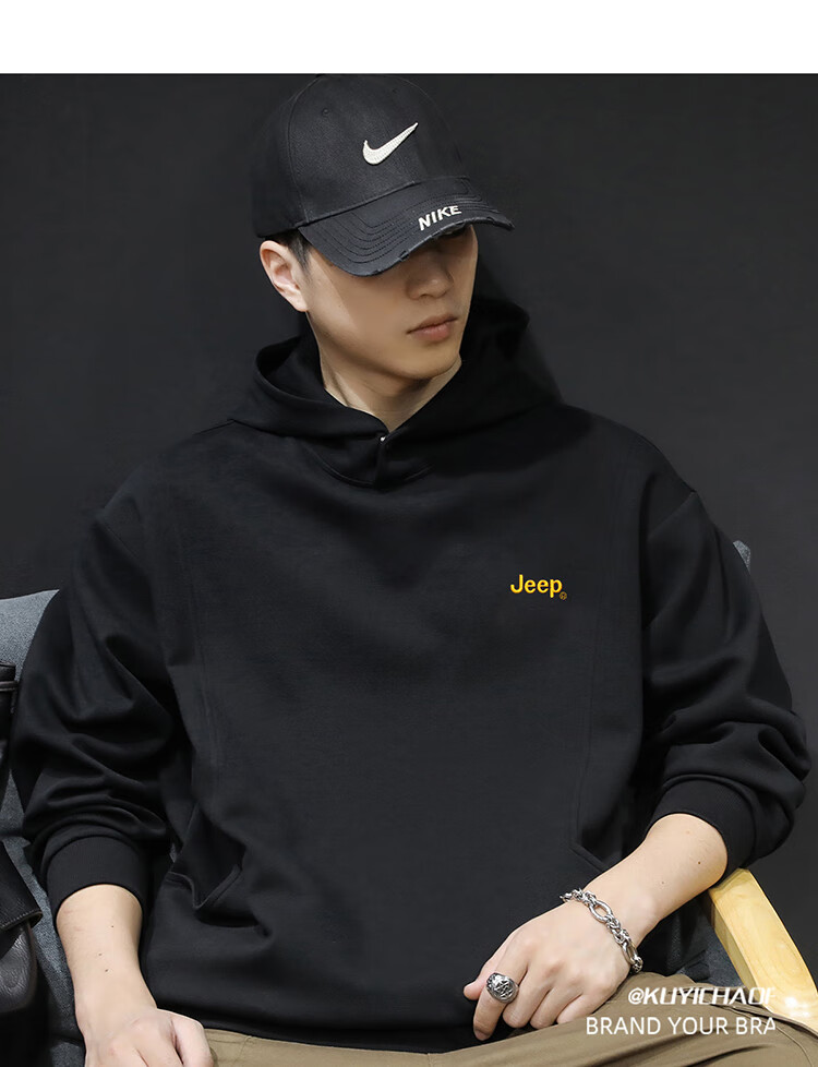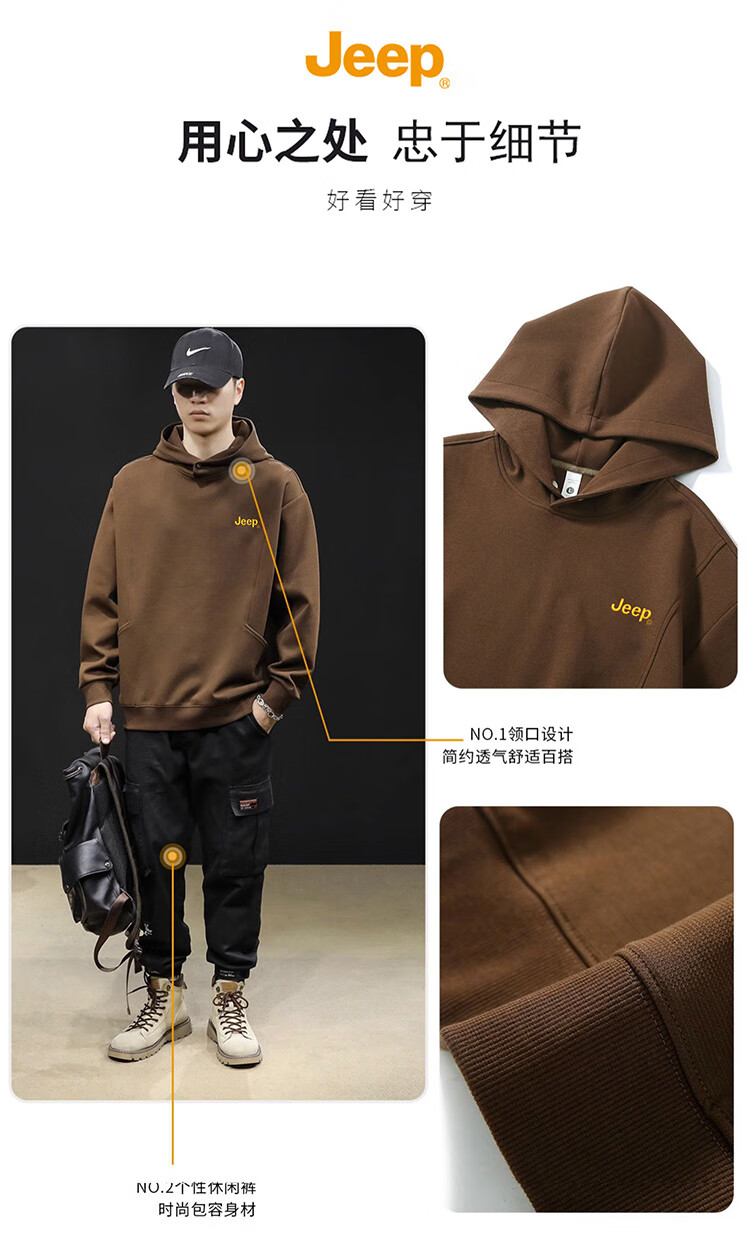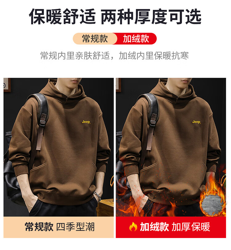 Jeep (JEEP) sweatshirt men's hooded autumn and winter loose bottoming shirt loose casual top men's brown XL