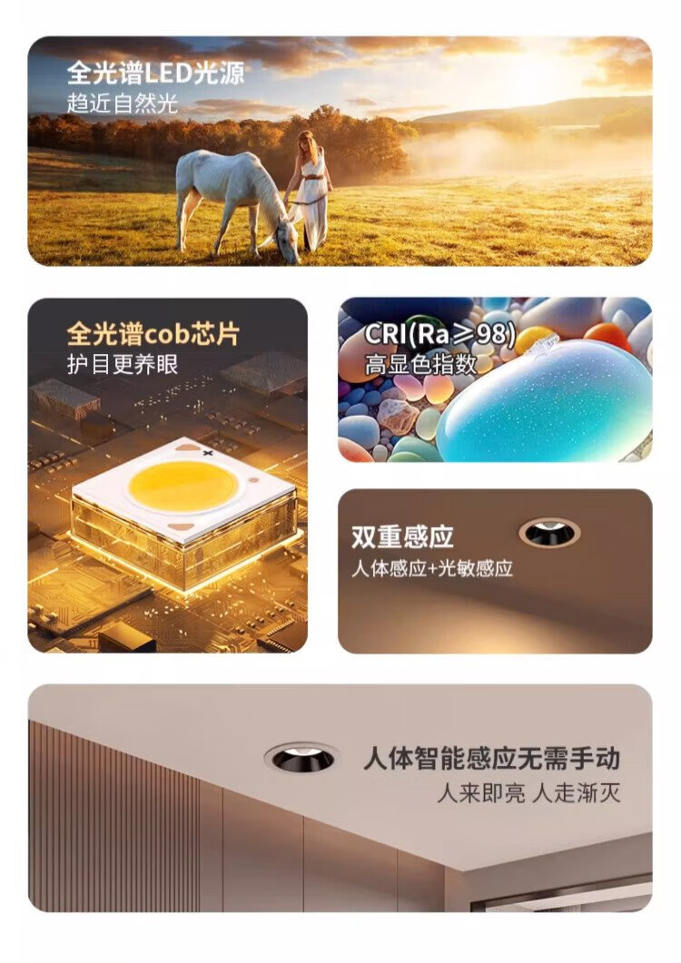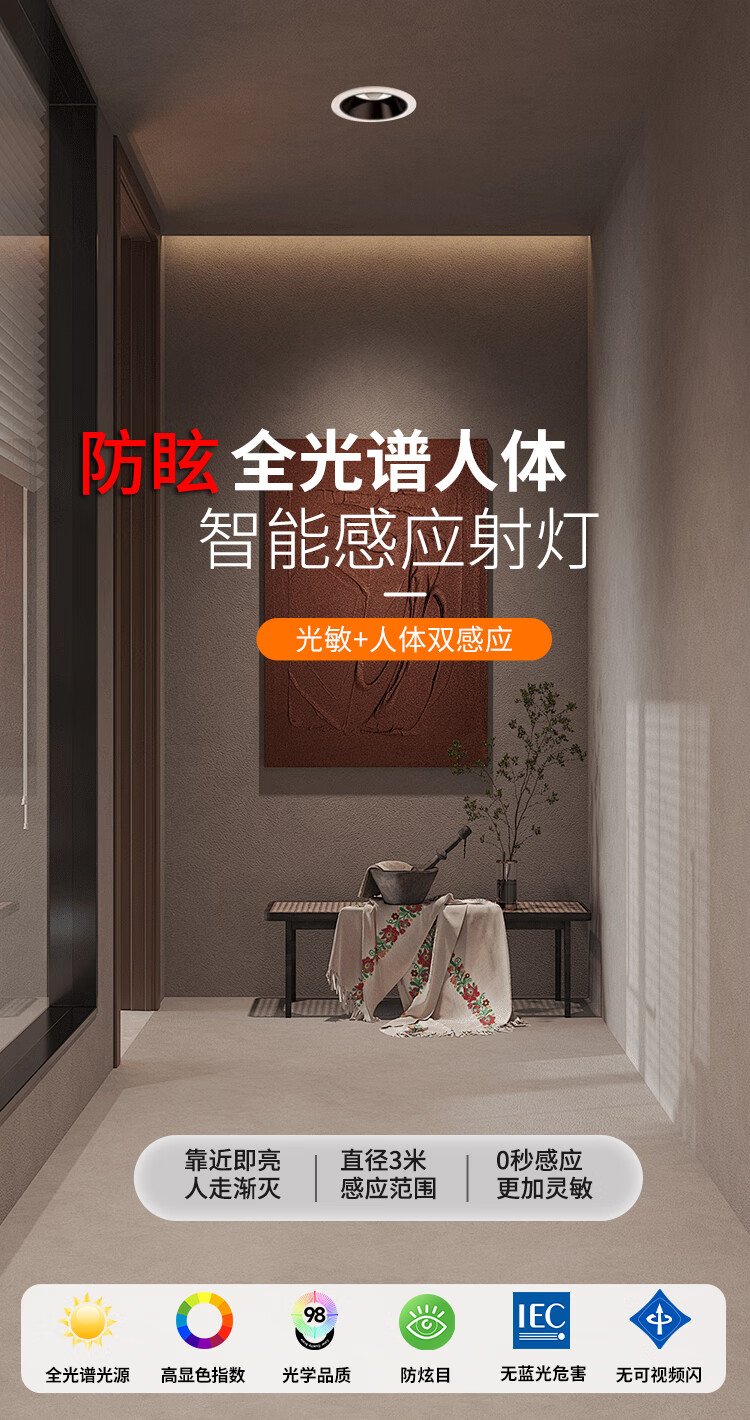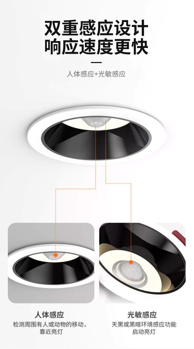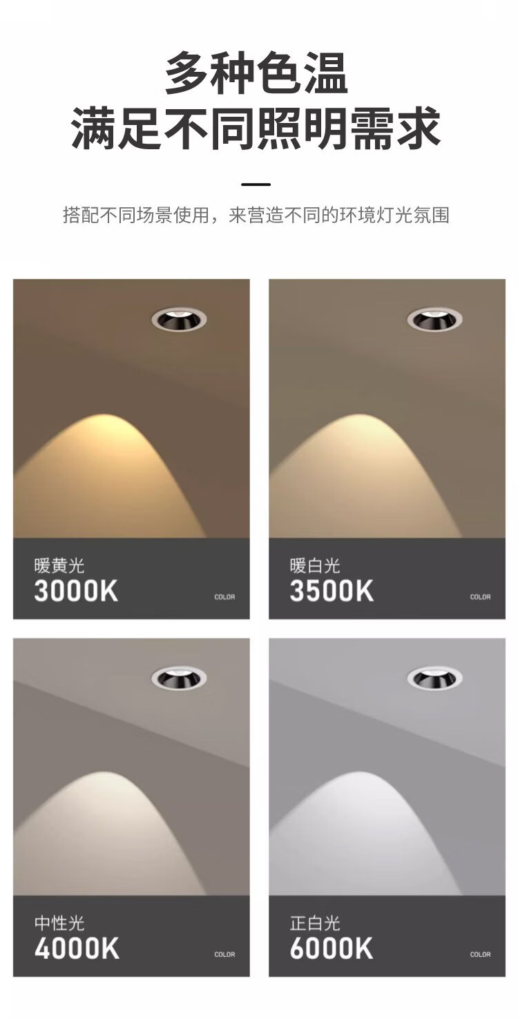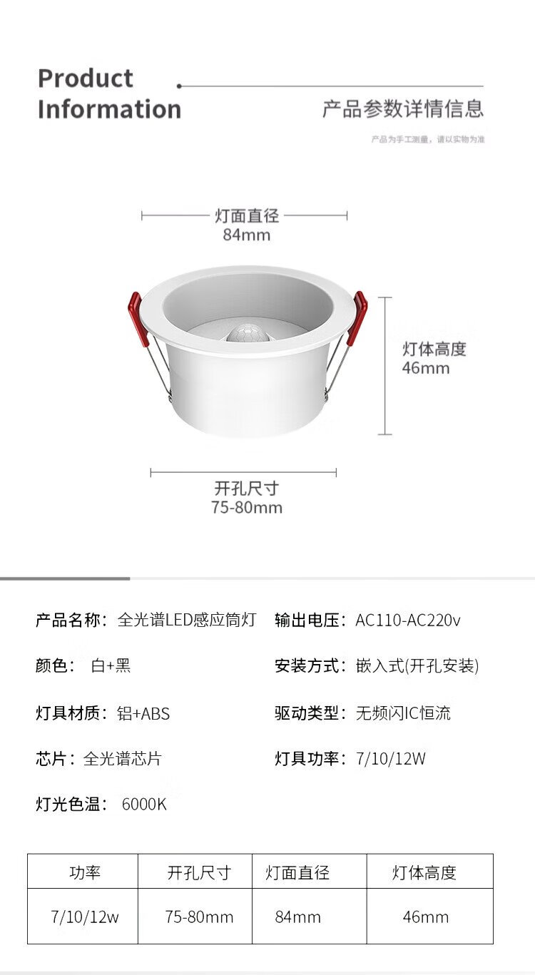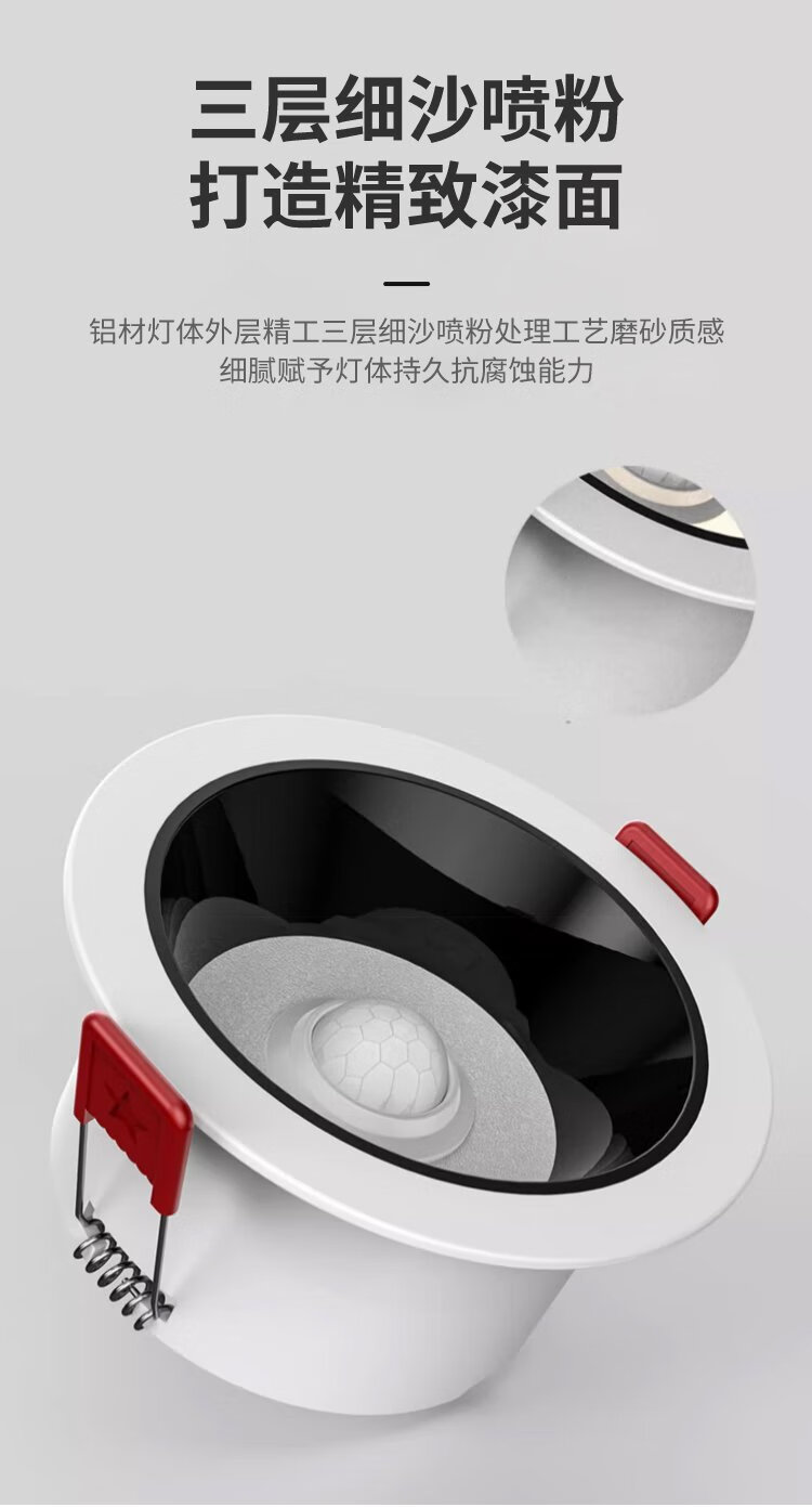 Platinum full spectrum LED induction downlight anti-glare ultra-thin narrow edge embedded ceiling light ceiling hole light 12W white light - opening 75mm (white + black)