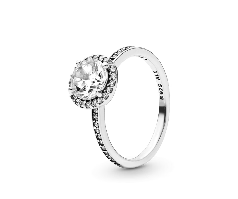 PANDORA (PANDORA) classic elegant ring 925 silver sparkling single diamond flamboyant and gorgeous high-end simple birthday gift for girlfriend, classic and elegant 50mm size 10 ring