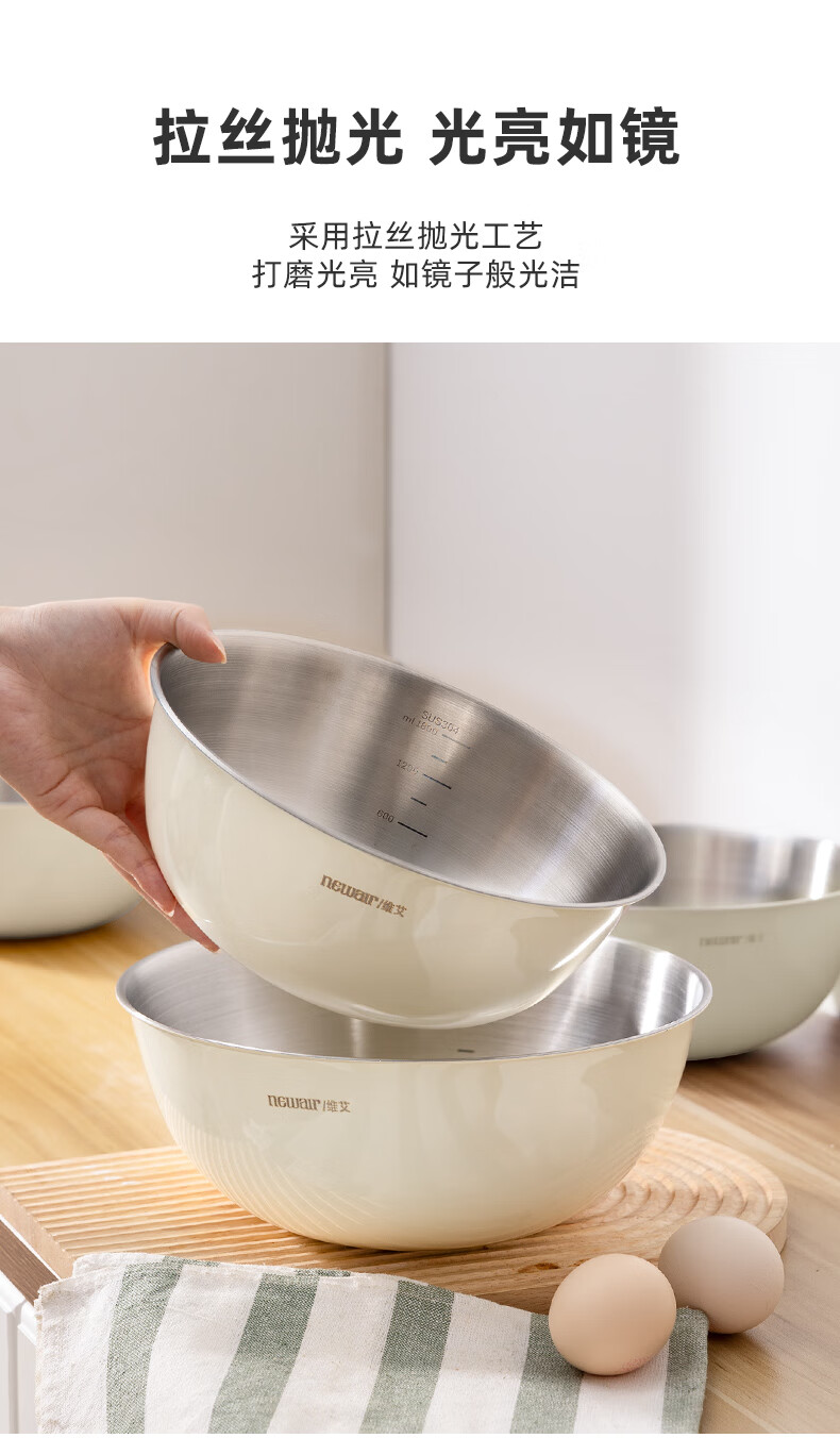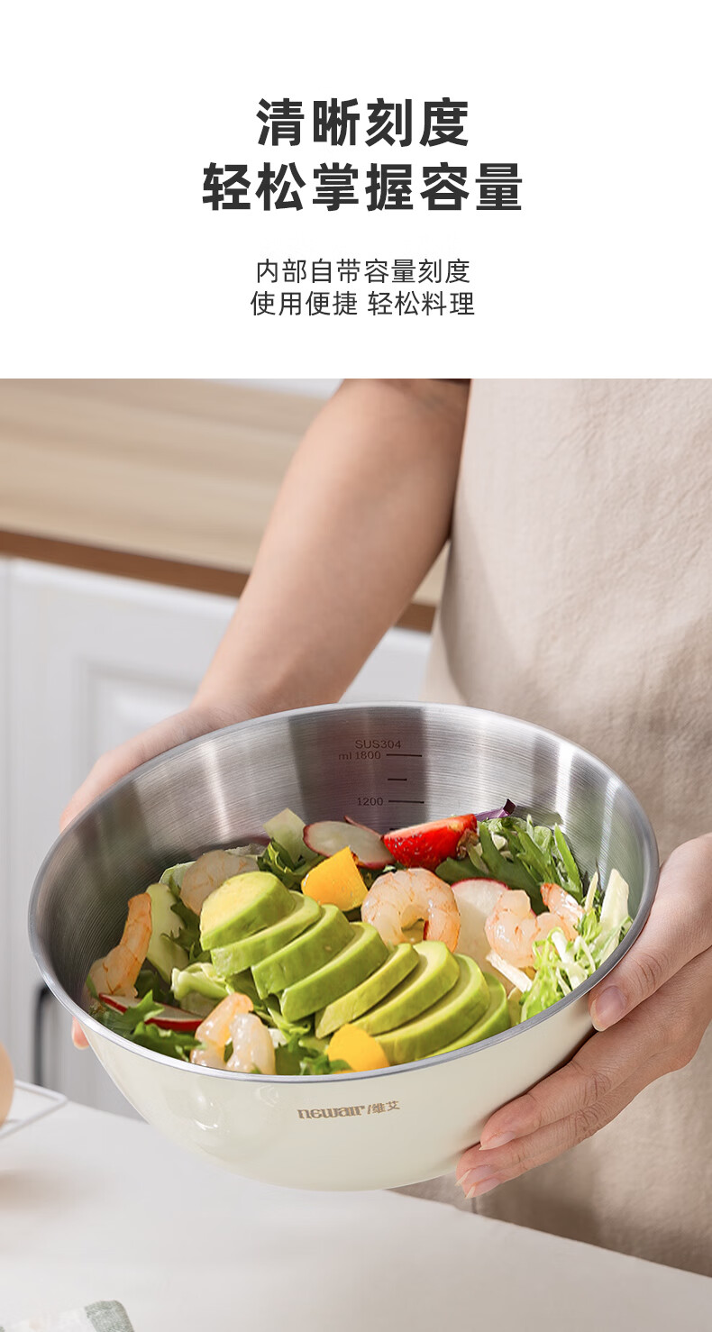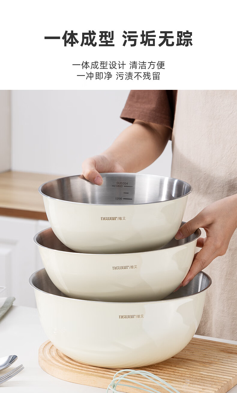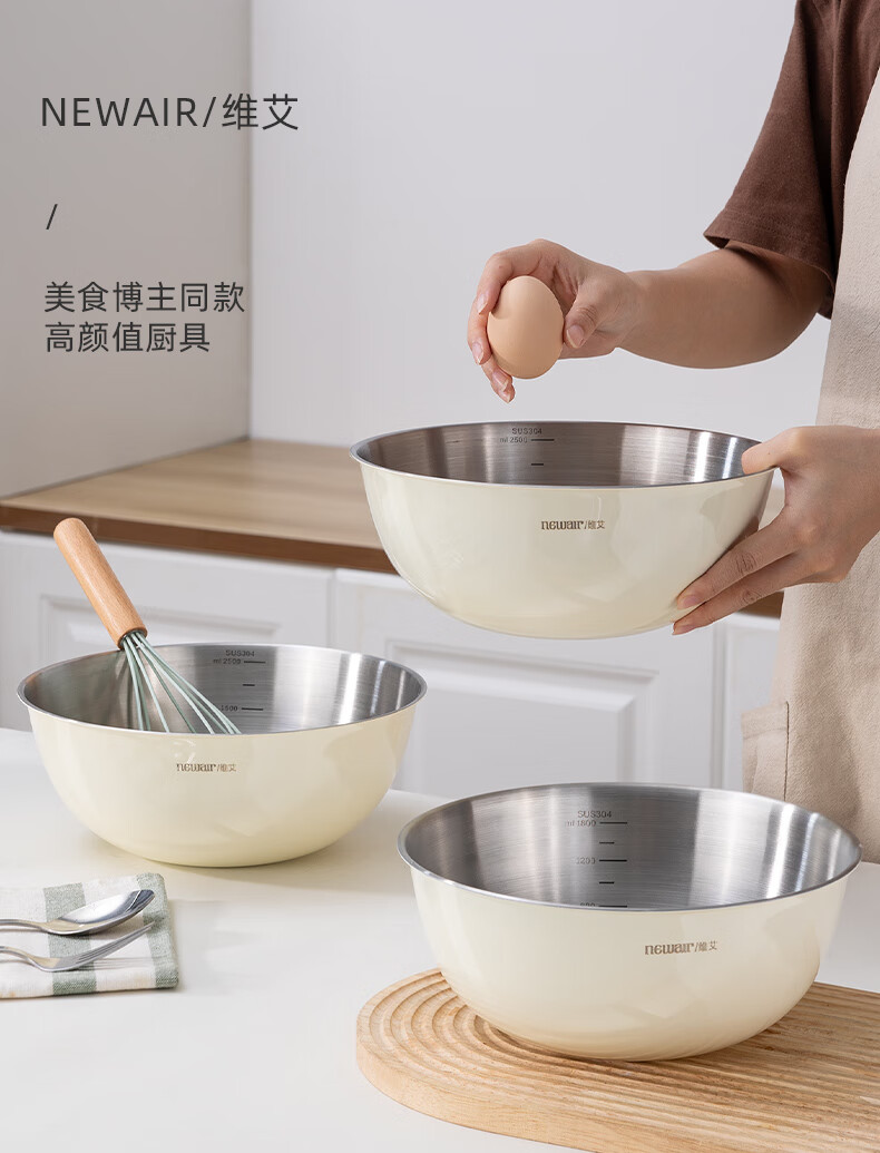 Newair food-grade 304 stainless steel basins for home kitchen cooking, salad dishes and kneading basins