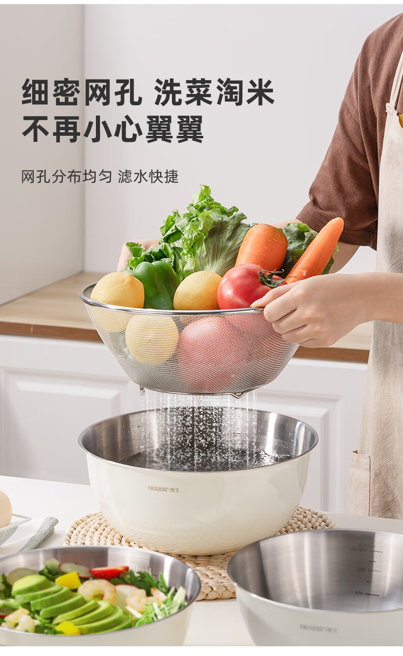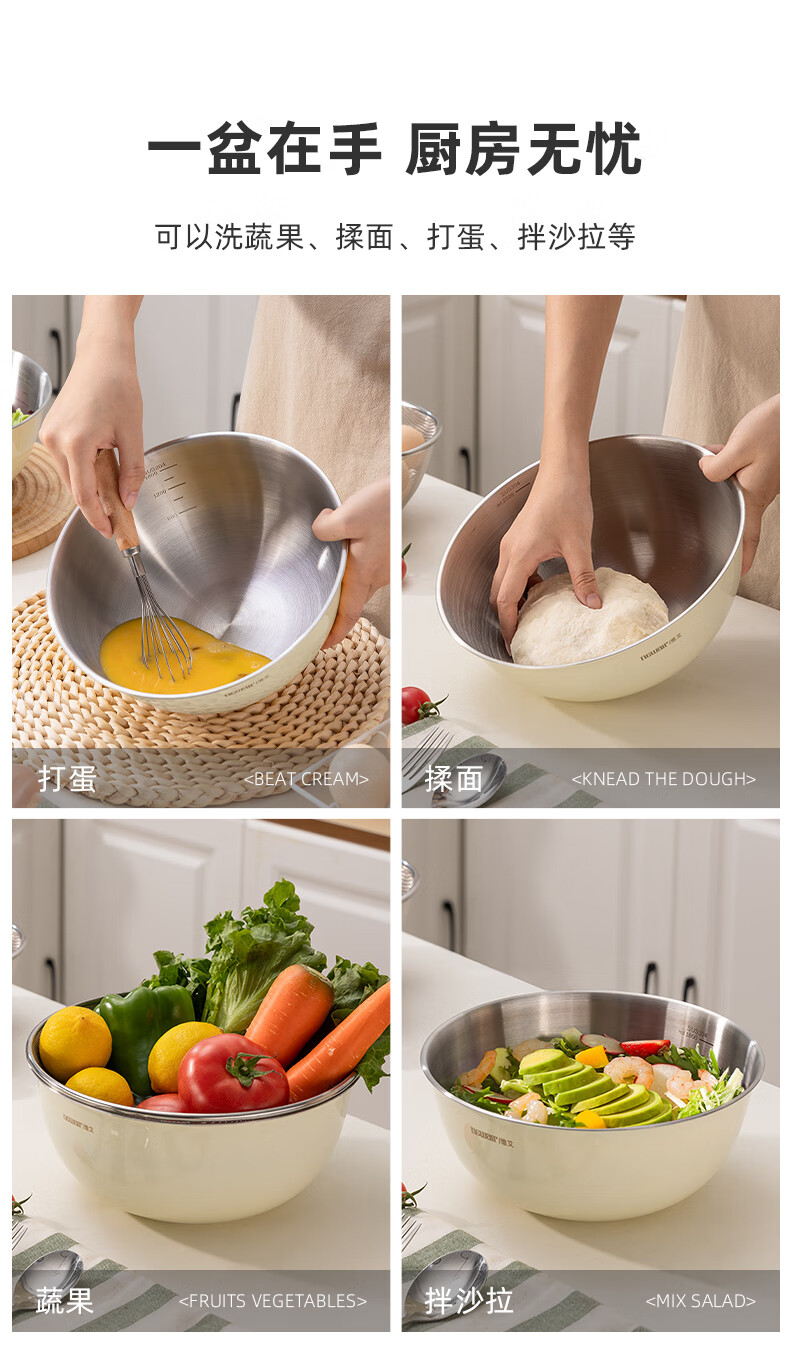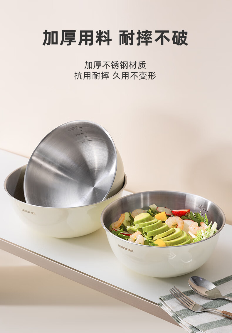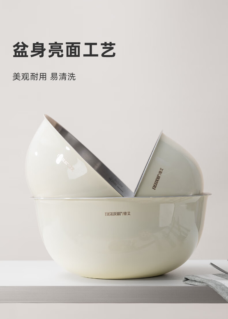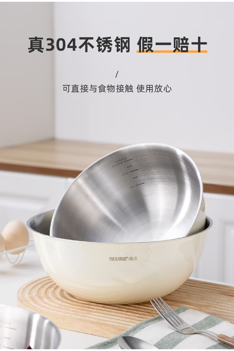 Newair food-grade 304 stainless steel basins for home kitchen cooking, salad dishes and kneading basins