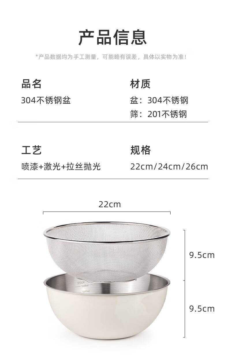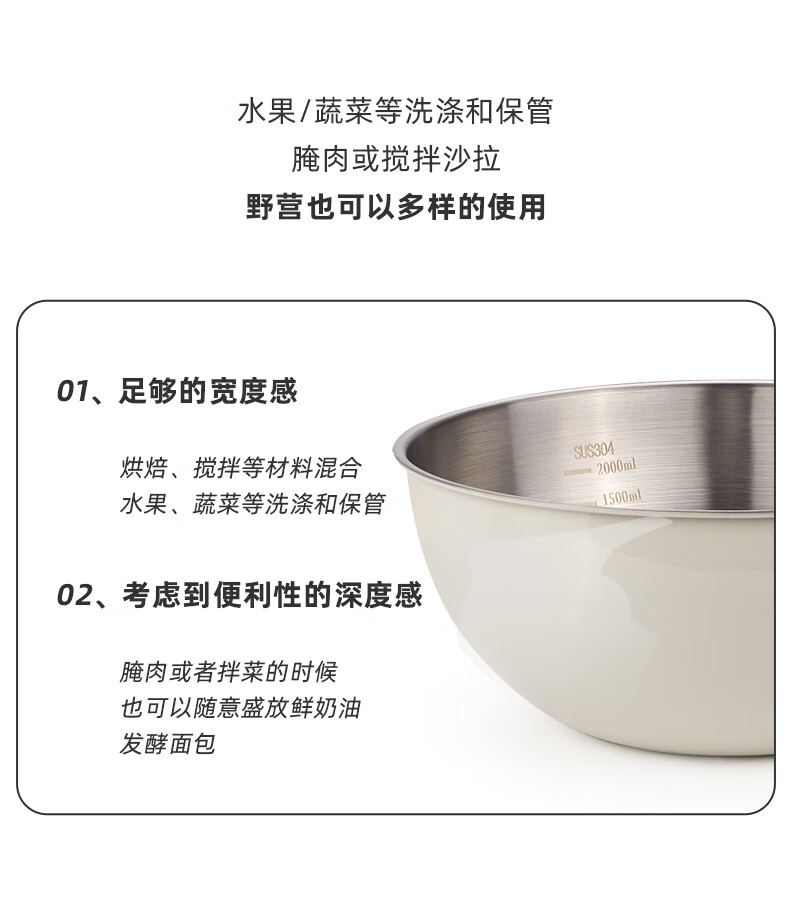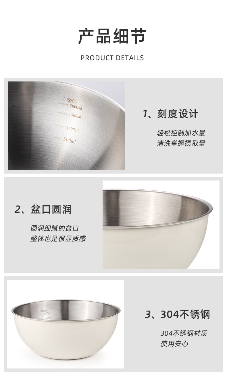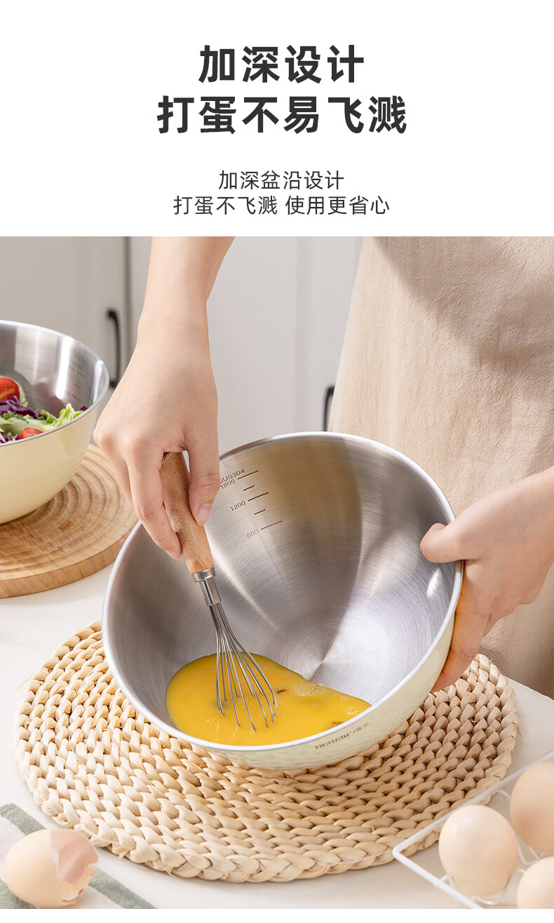 Newair food-grade 304 stainless steel basins for home kitchen cooking, salad dishes and kneading basins