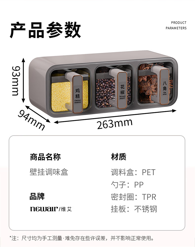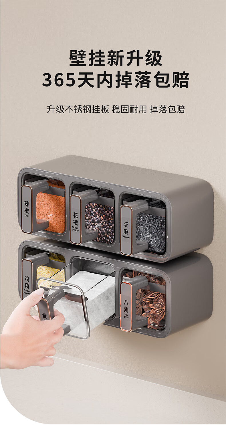 Newair seasoning jar seasoning box wall-mounted home kitchen high-end salt jar seasoning sealed storage box set