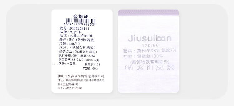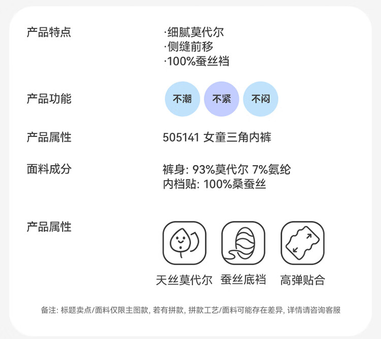 JiuSuiBan children's underwear girls' 50s Lenzing Modal briefs medium and large children's ultra-thin naked feeling 100% silk crotch shorts