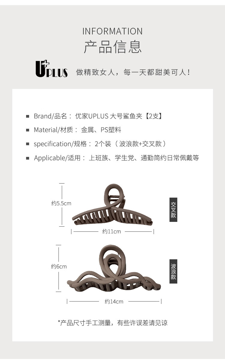 Youjia UPLUS large shark clip 2 hair clips for the back of the head new style grab clip high-end clip headwear hairpin for women