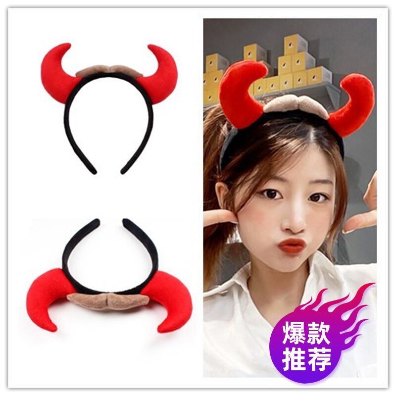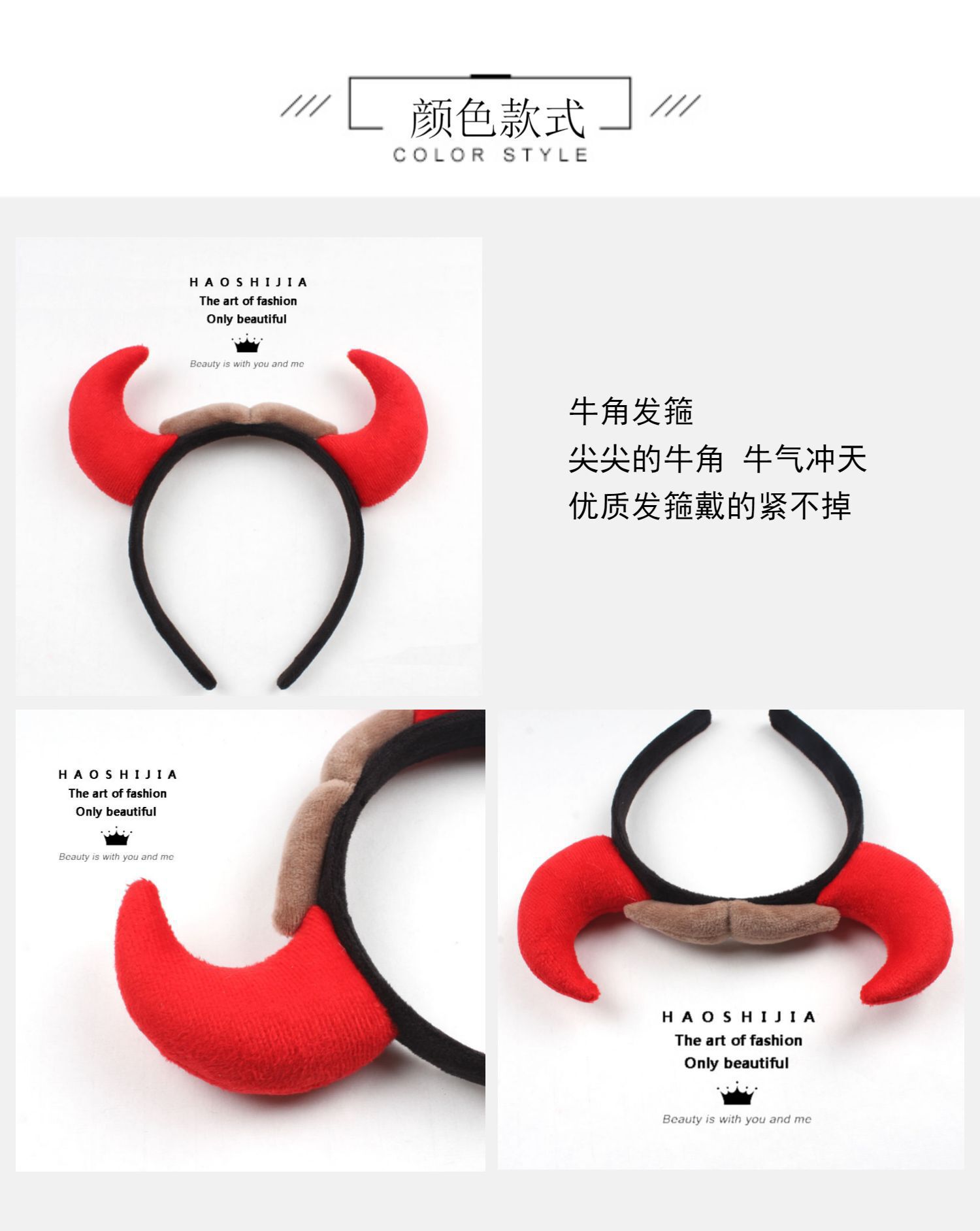 Mengyi New Year Red Cute Ox Horn Headwear Year of the Ox Headband Cow Hairpin Cartoon Calf Accessories Face Wash Headband Hair Accessories for Women Coffee Horns + Ears