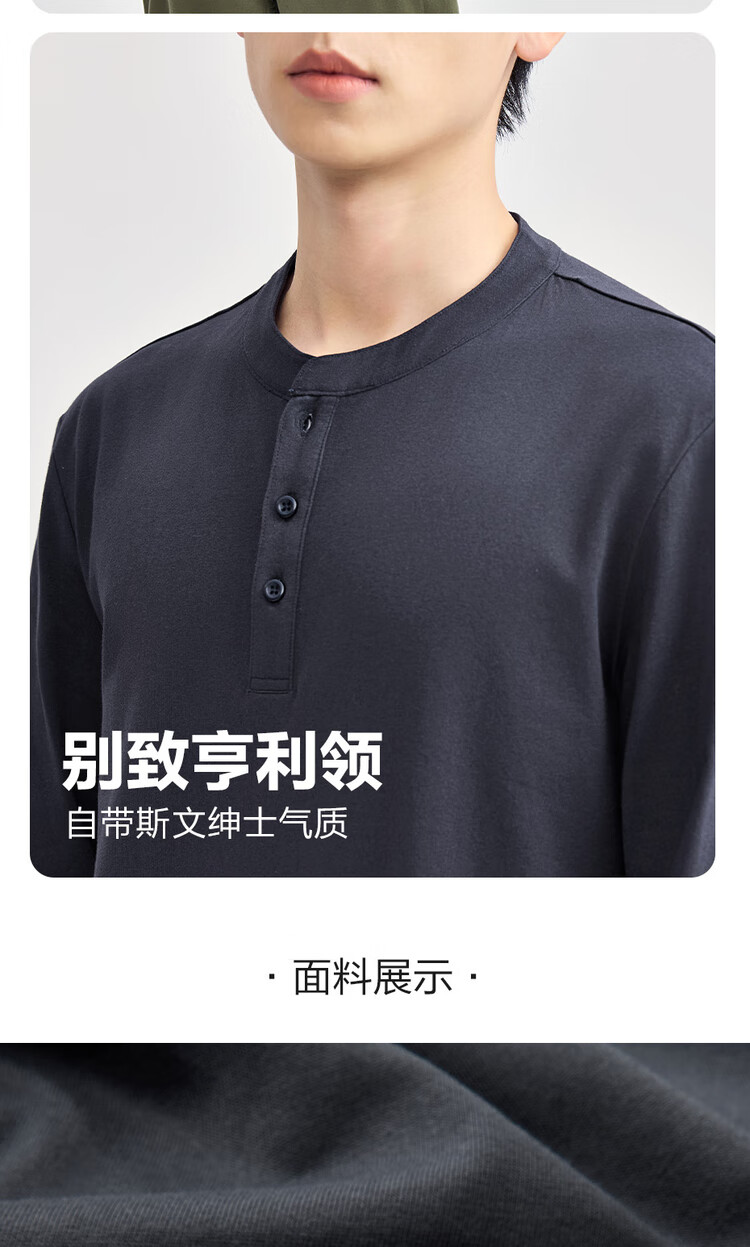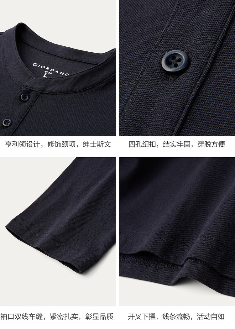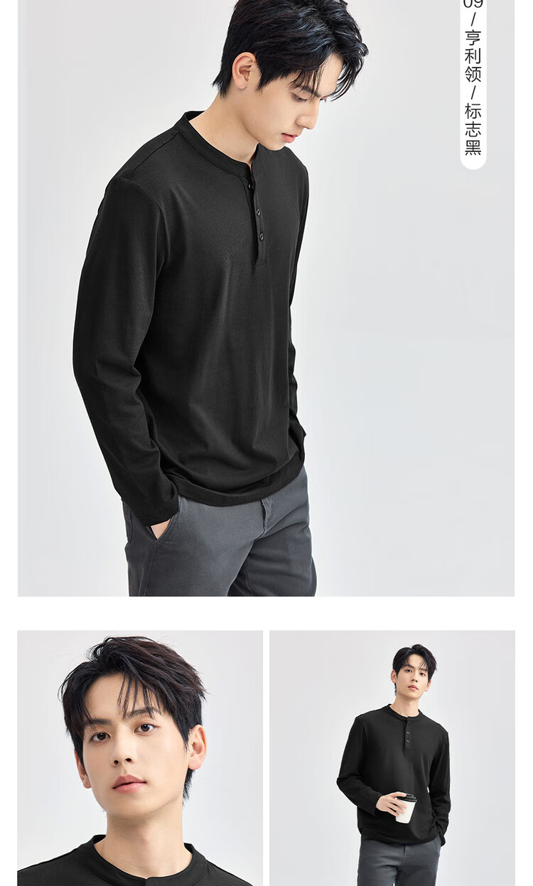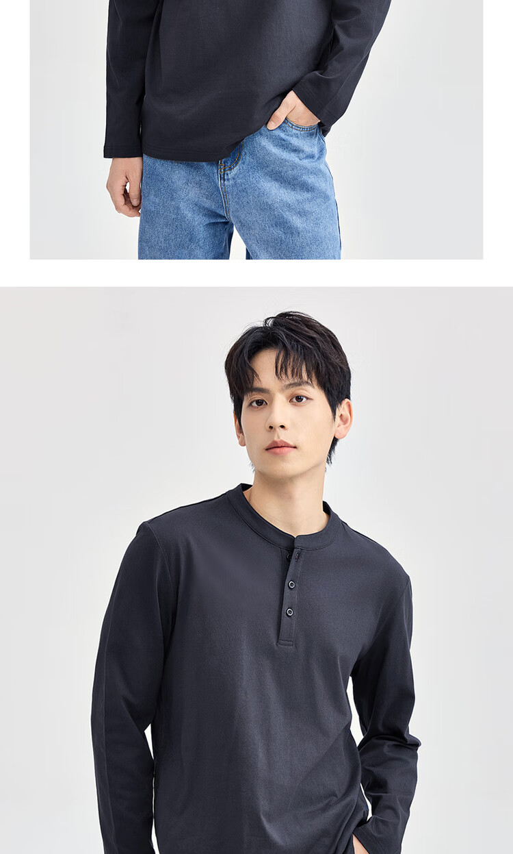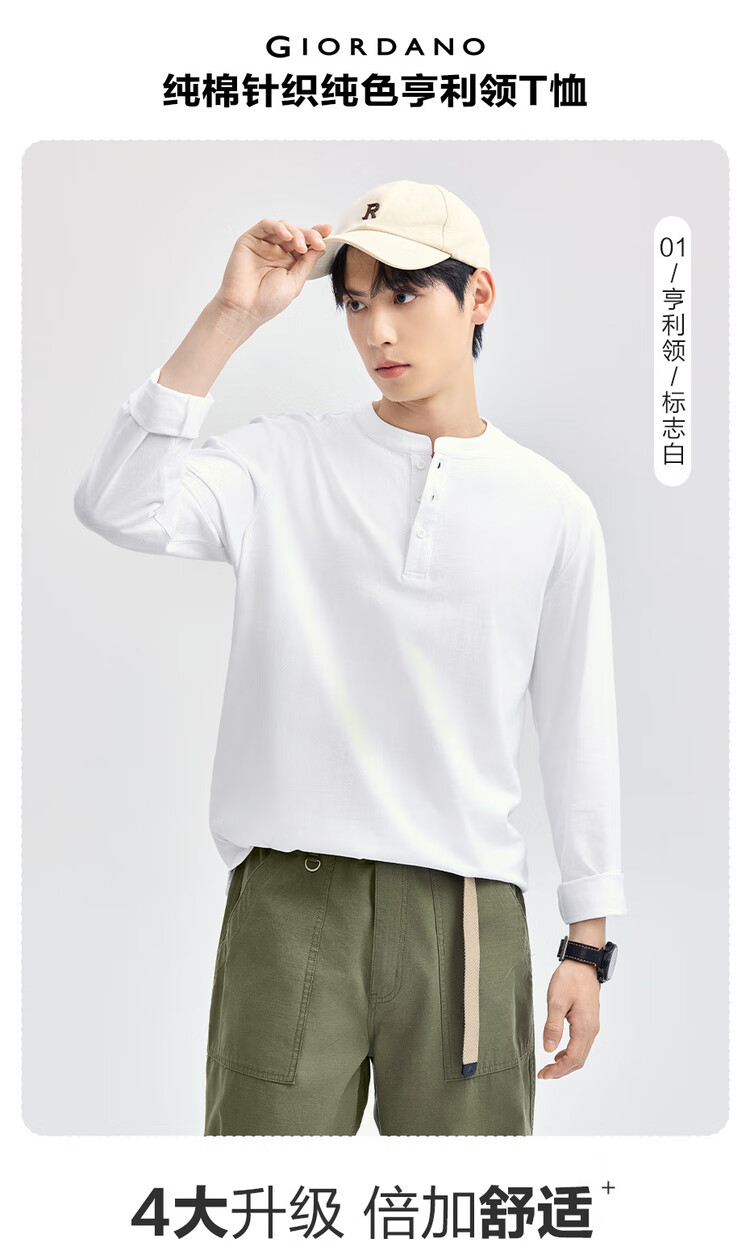 Giordano Henry shirt men's autumn and winter new pure cotton solid color bottoming shirt Henry collar long-sleeved T-shirt men 13025615