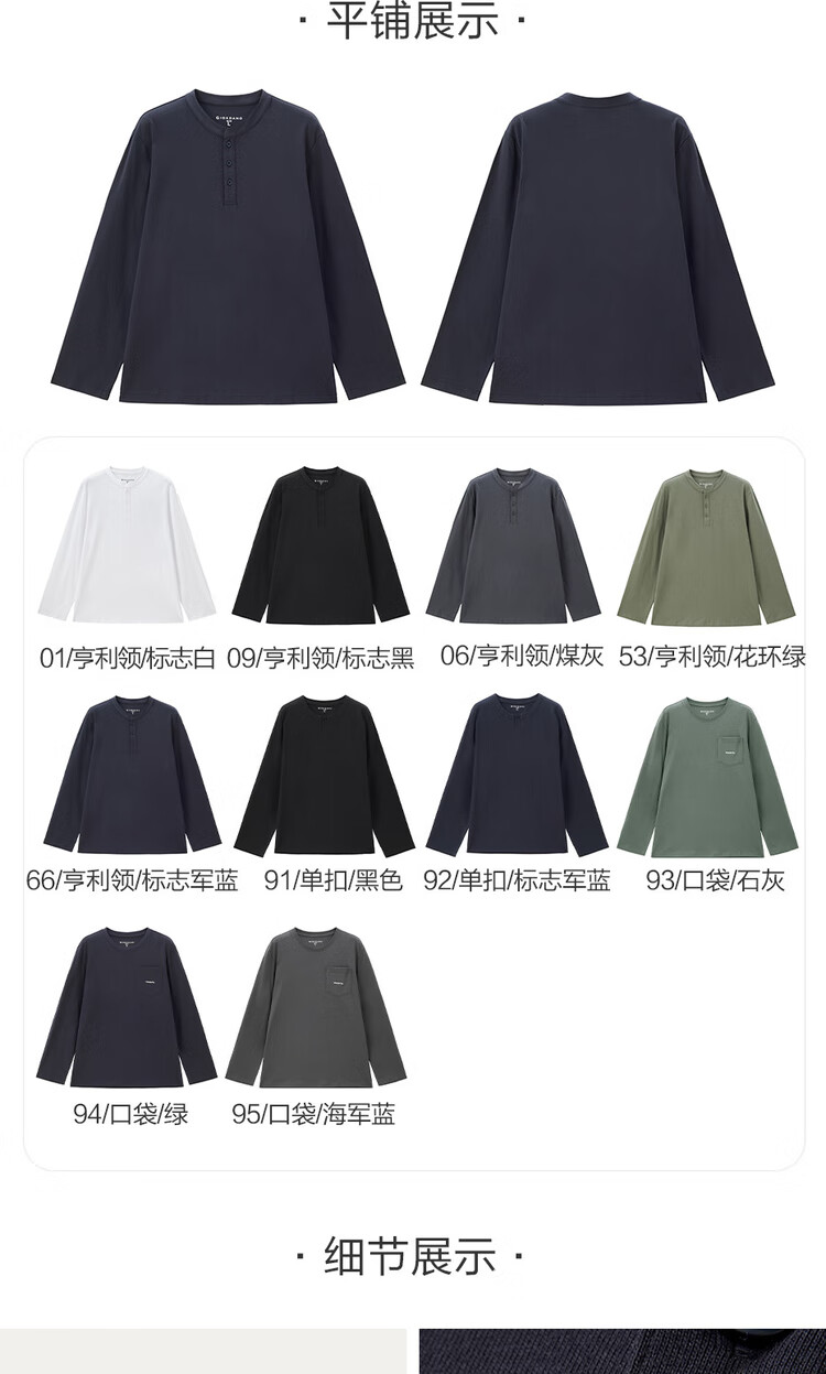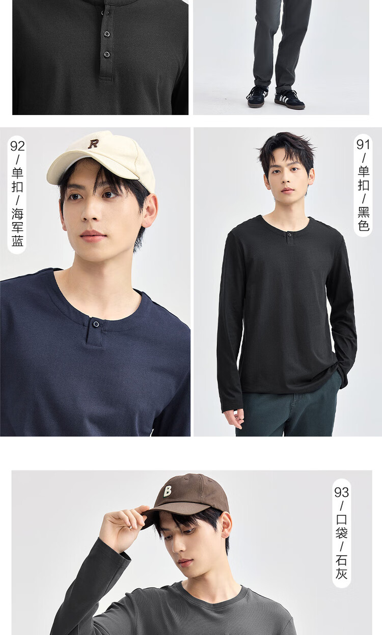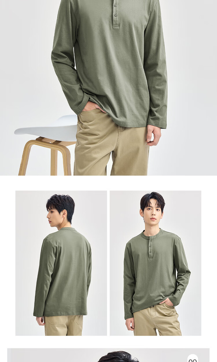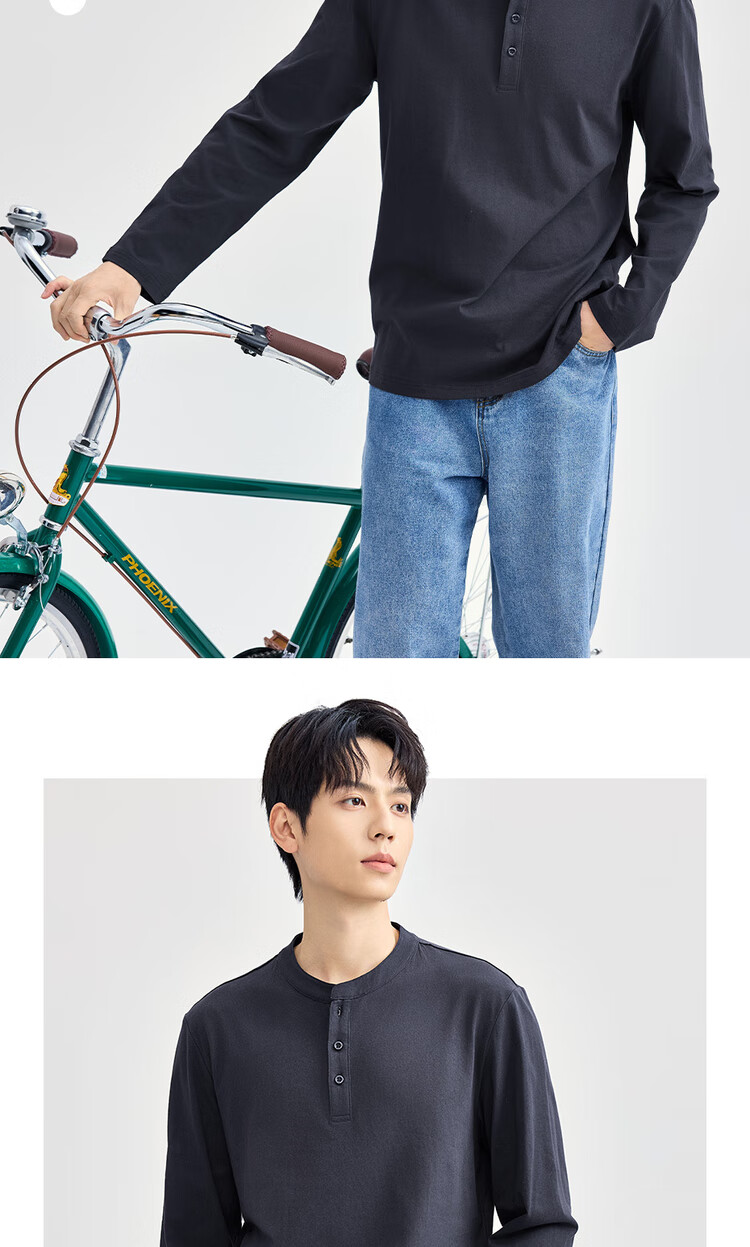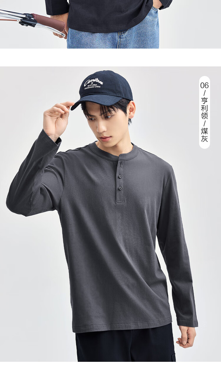 Giordano Henry shirt men's autumn and winter new pure cotton solid color bottoming shirt Henry collar long-sleeved T-shirt men 13025615